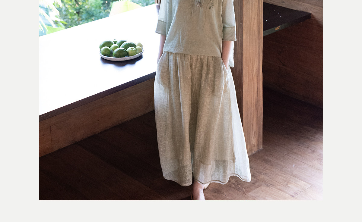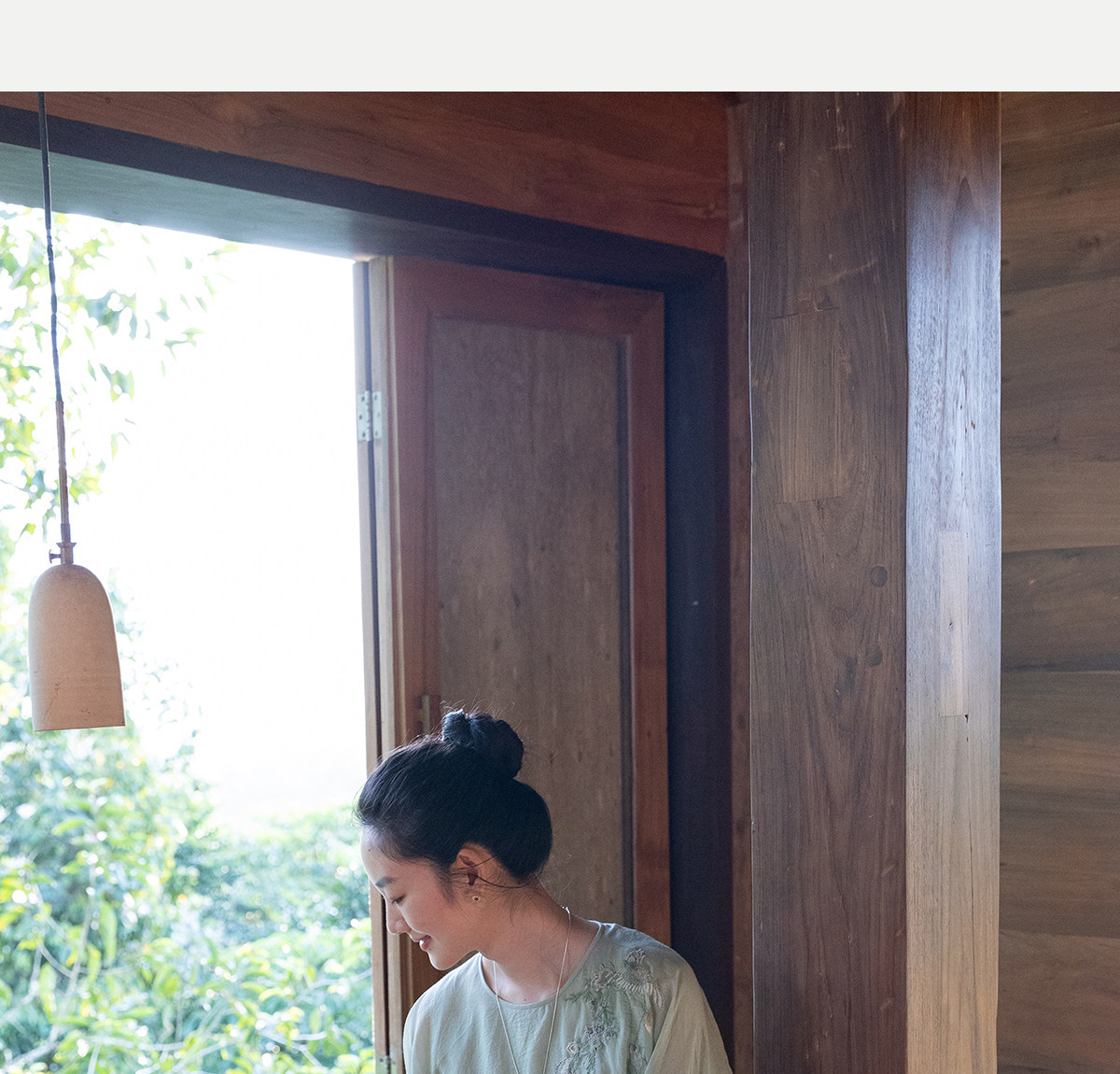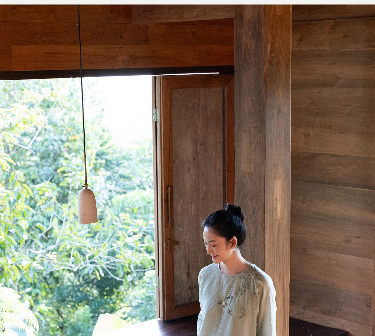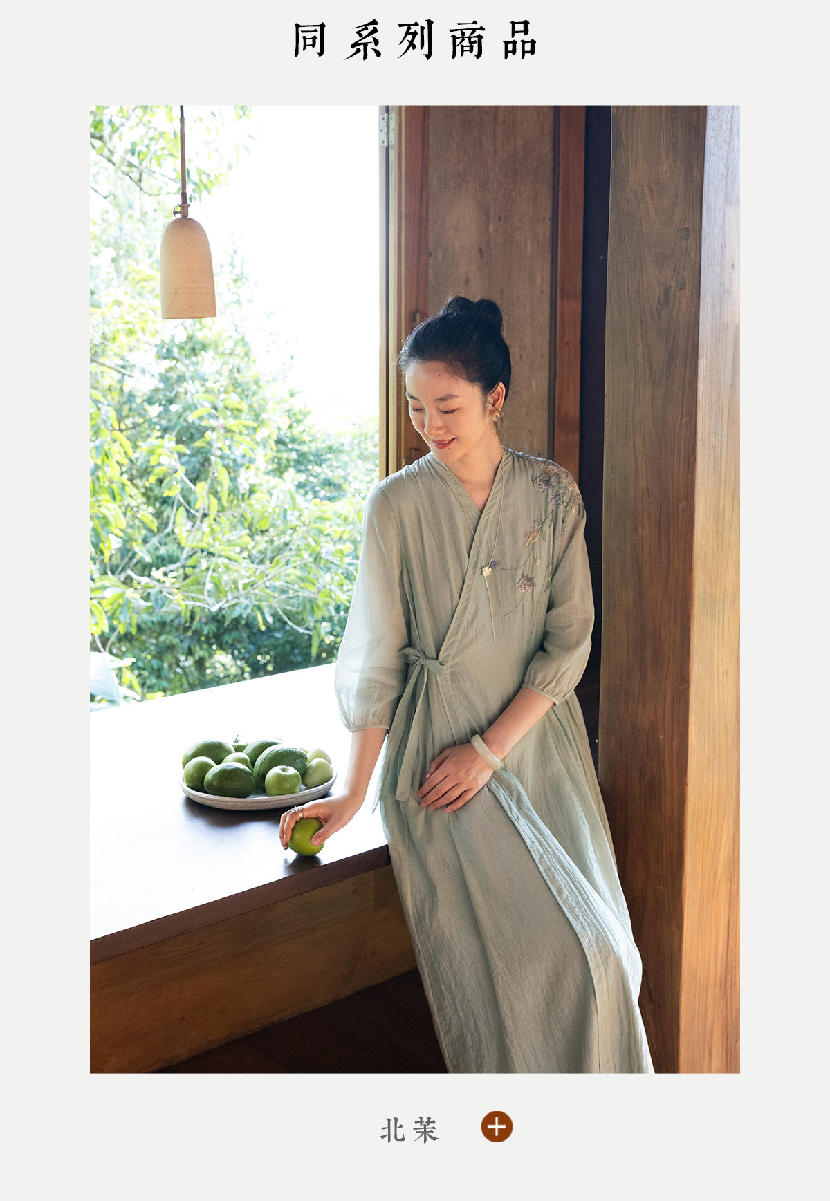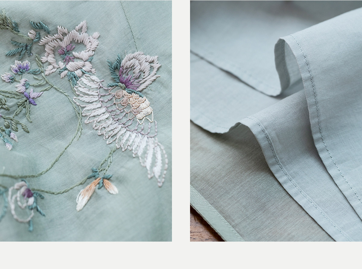 牧衣游原创 丝棉手工刺绣小衫女新款古朴禅意七分袖圆领上衣 素笺