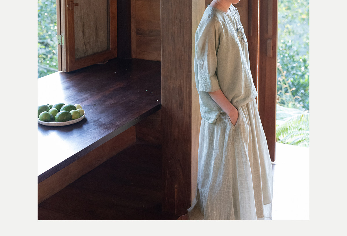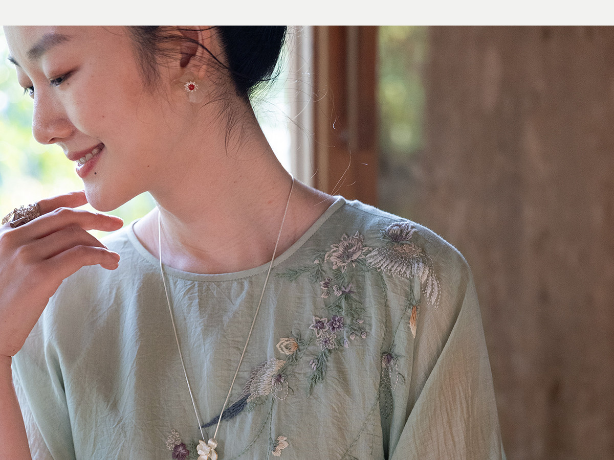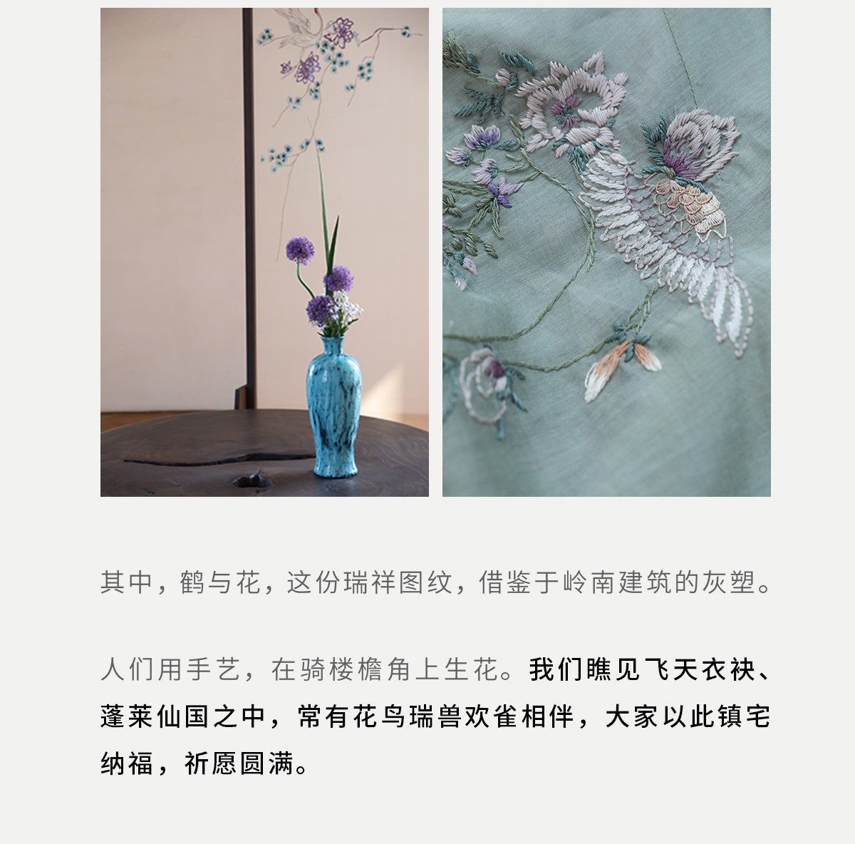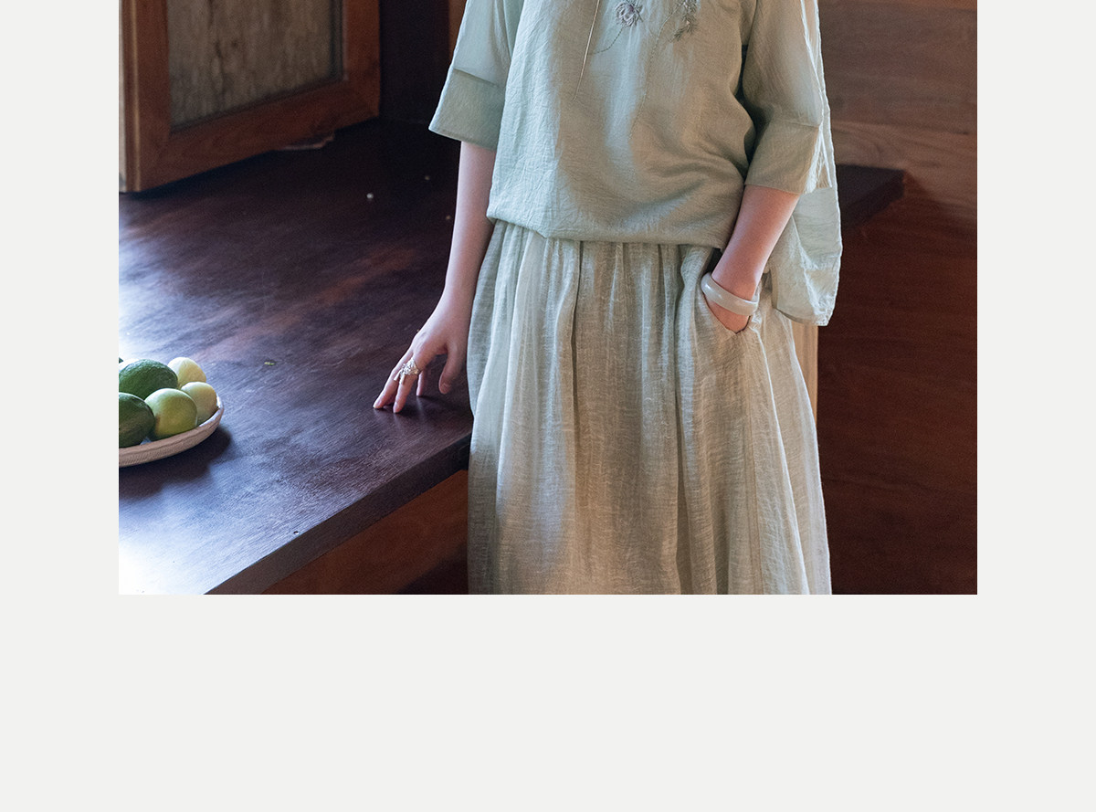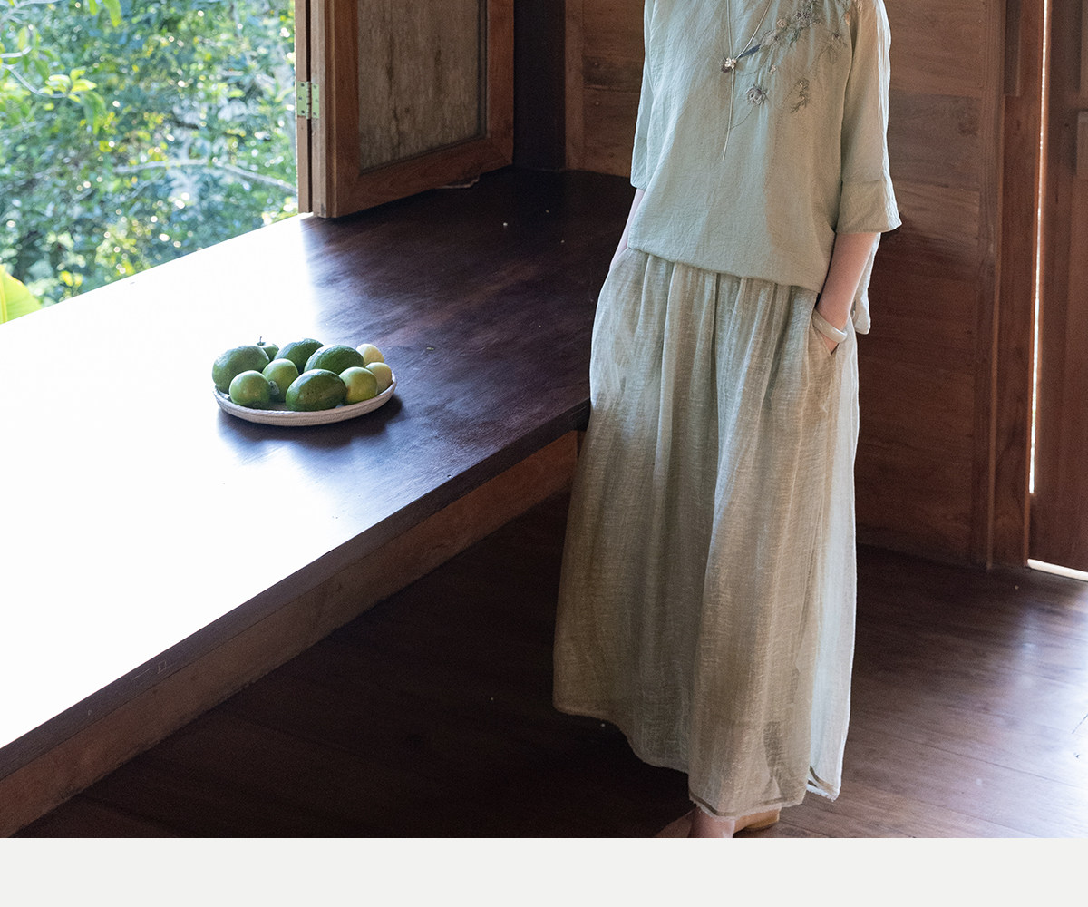牧衣游原创 丝棉手工刺绣小衫女新款古朴禅意七分袖圆领上衣 素笺