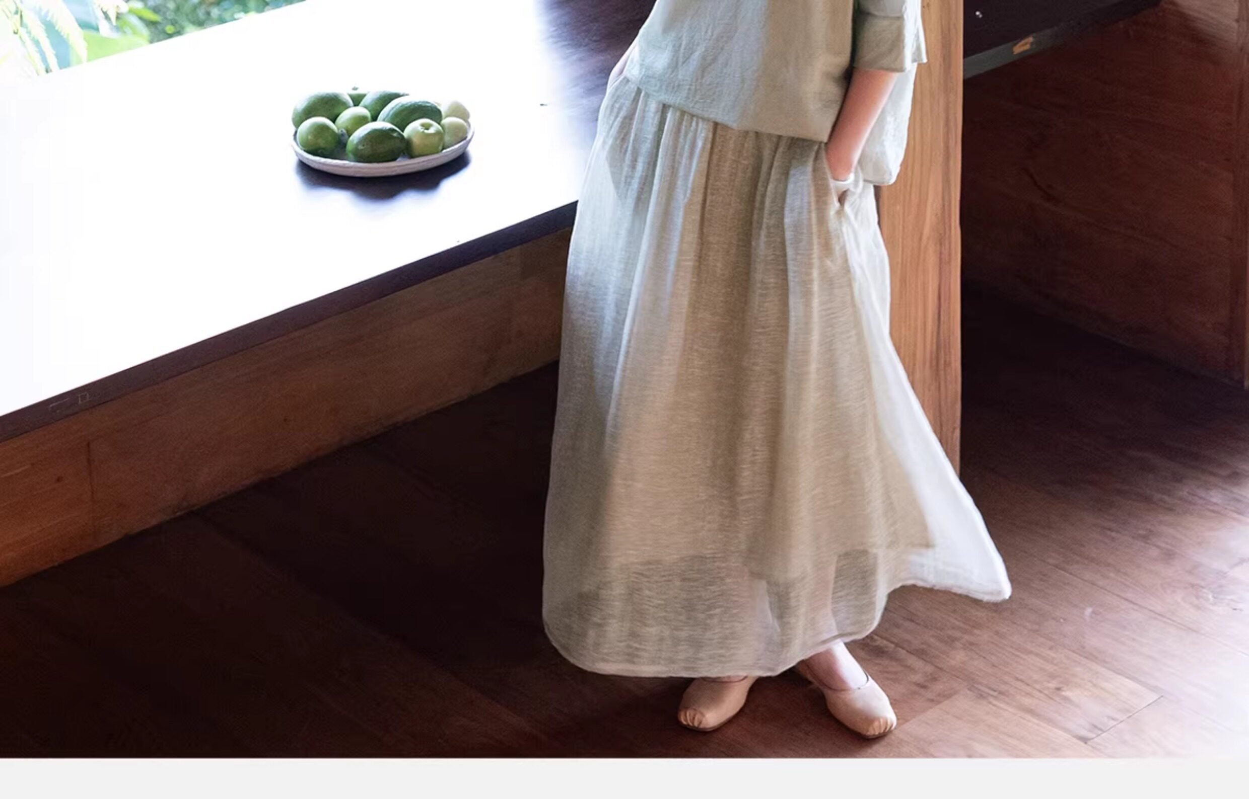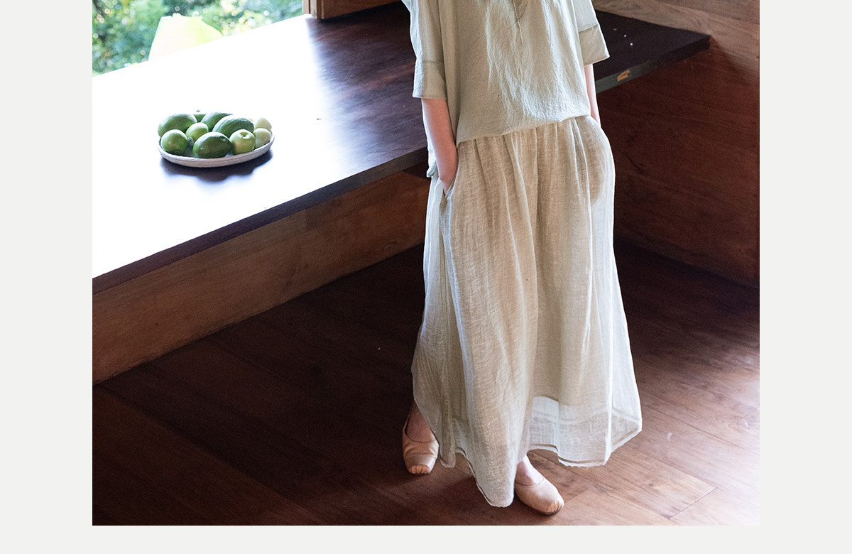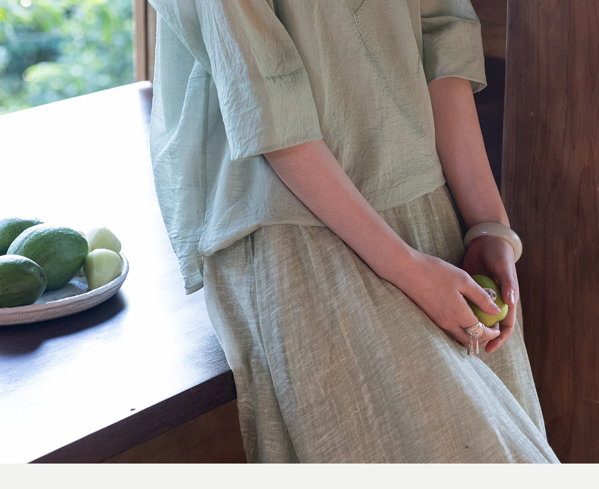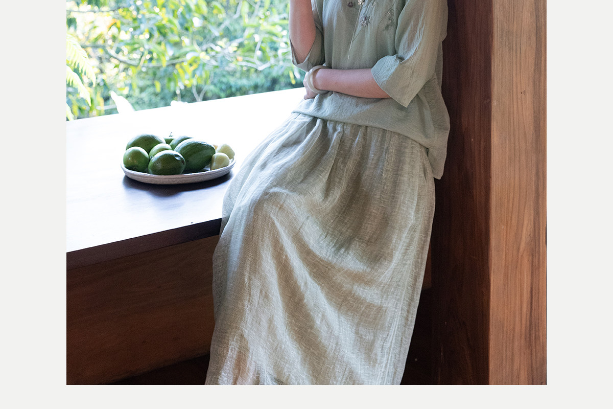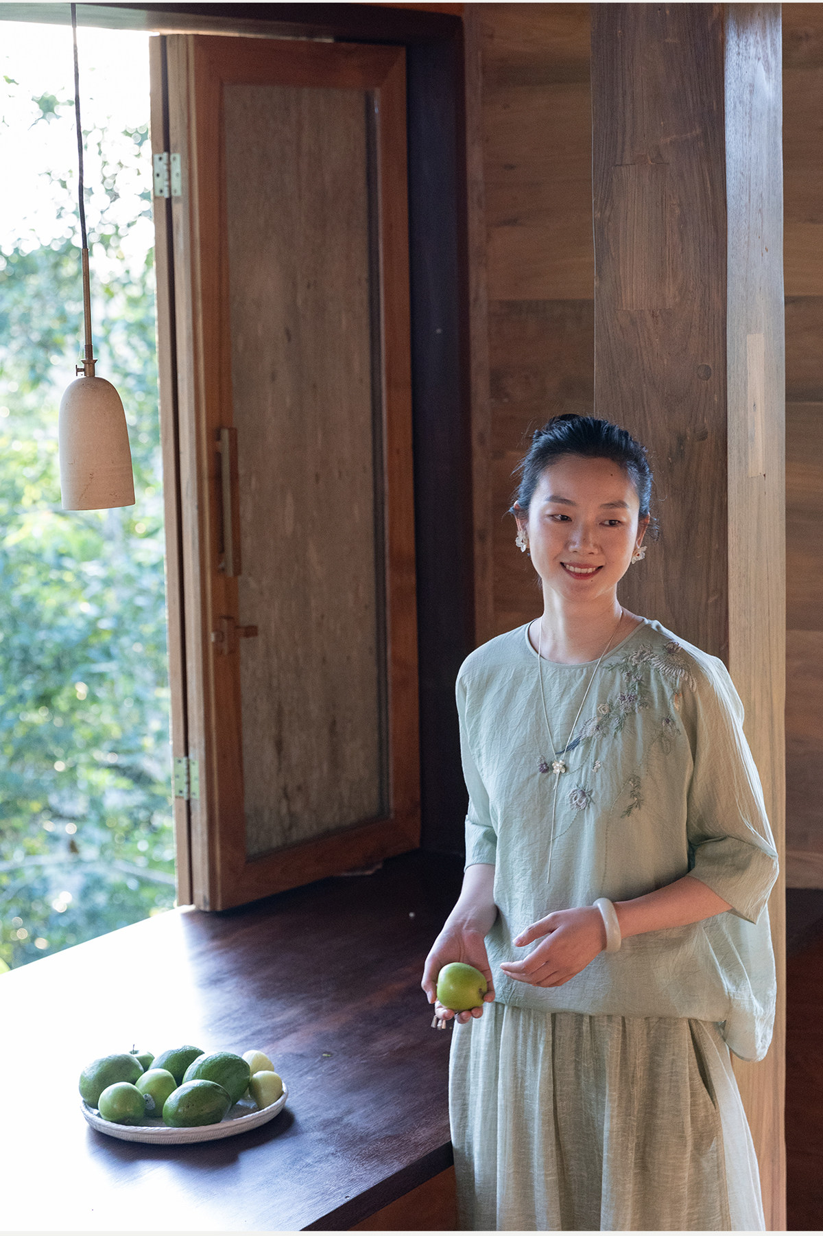 牧衣游原创 丝棉手工刺绣小衫女新款古朴禅意七分袖圆领上衣 素笺