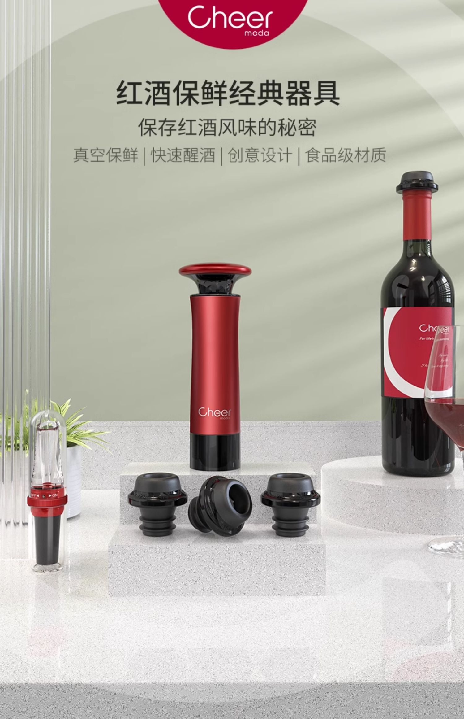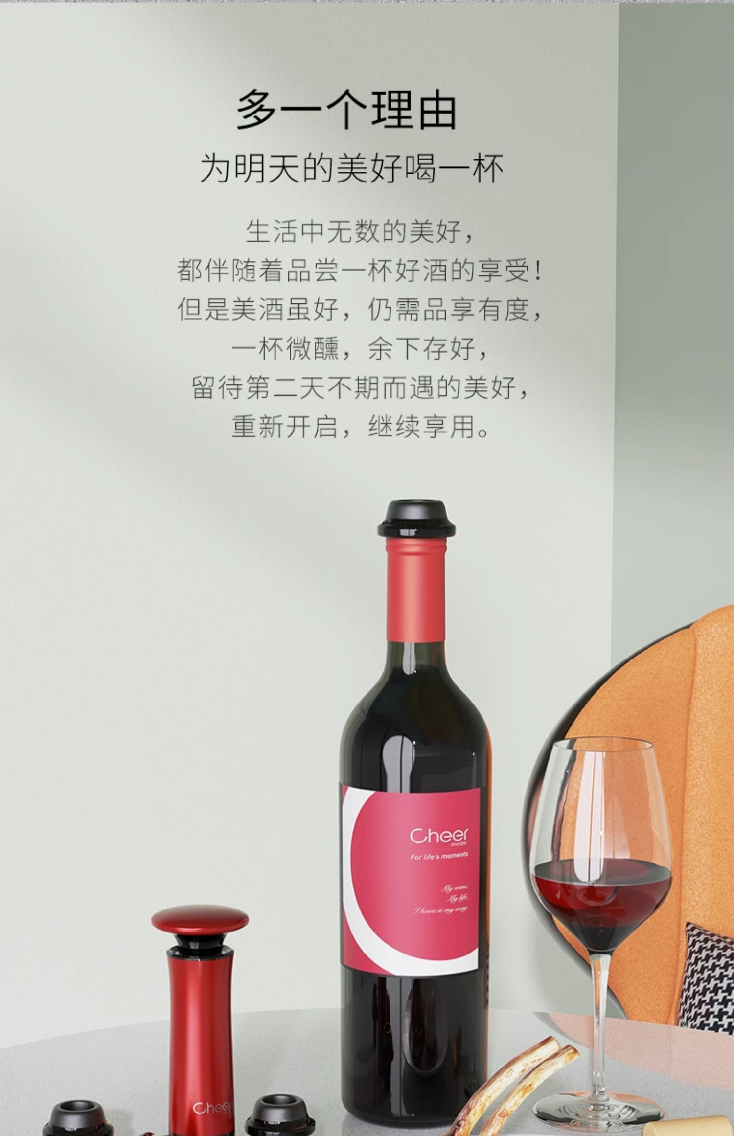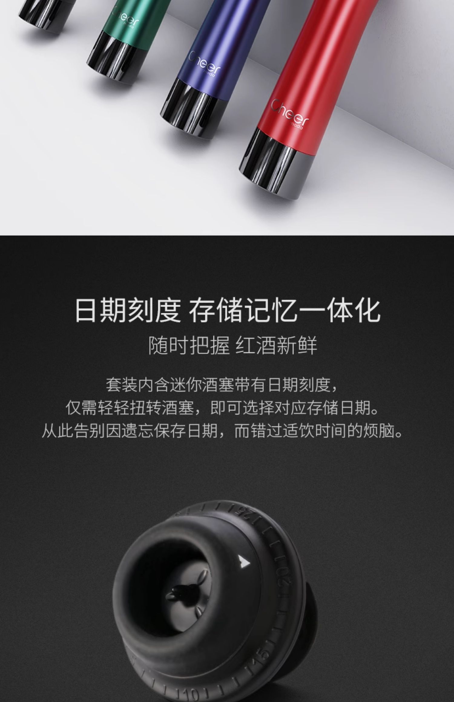 cheer启尔红酒瓶塞 真空保鲜瓶塞家用密封葡萄酒红酒塞子红酒塞红酒抽真空套装 (宝石蓝)