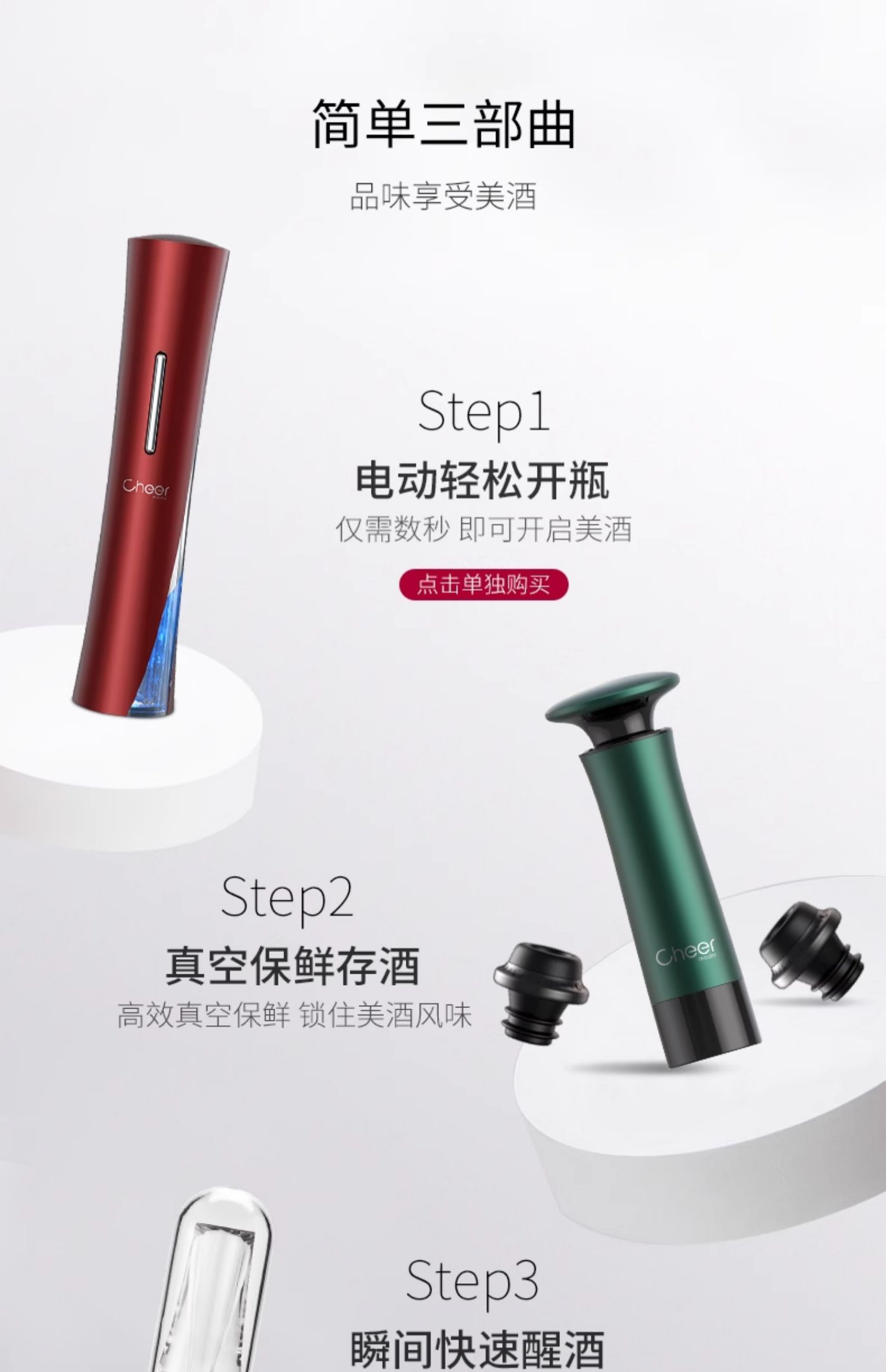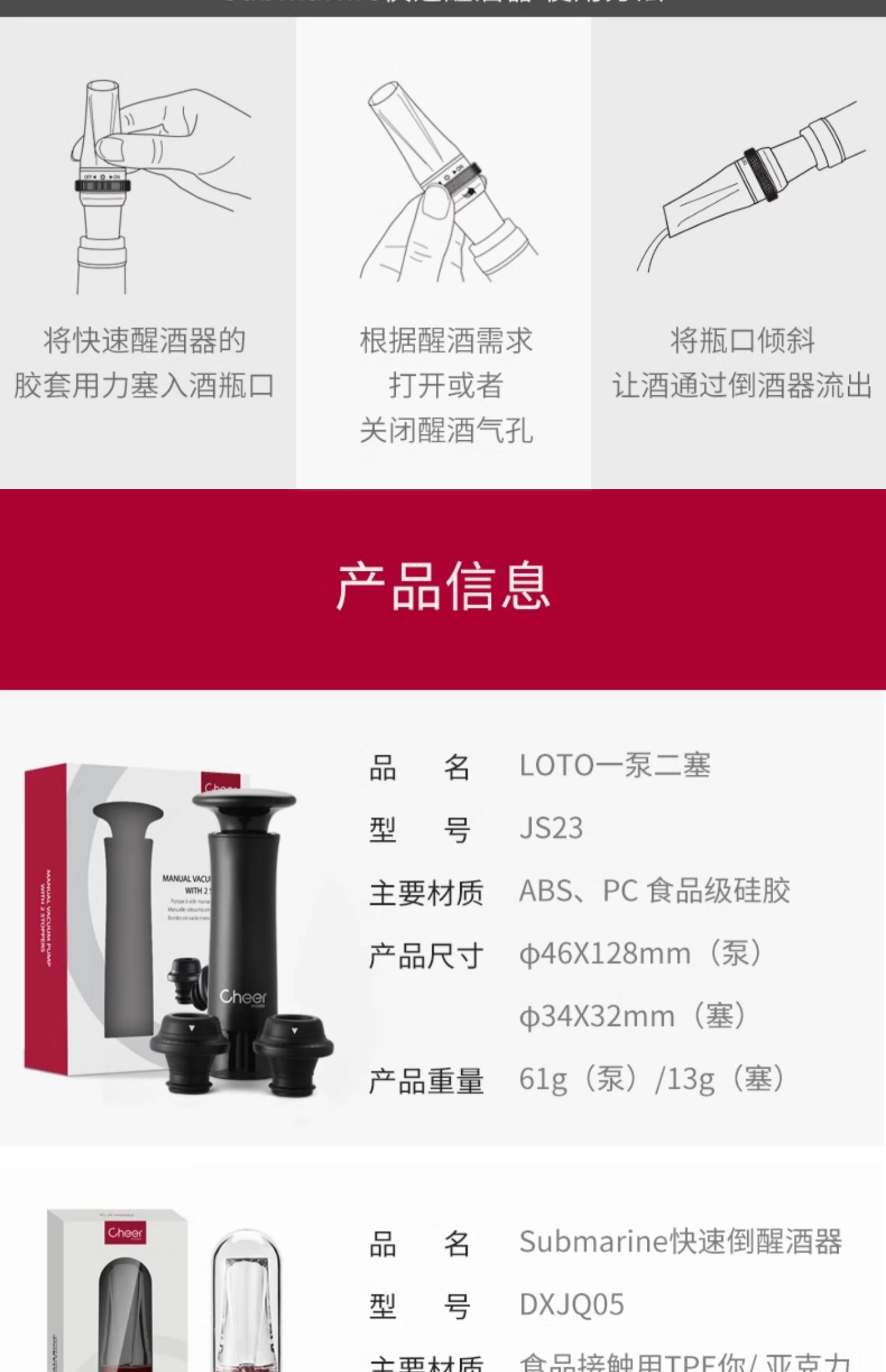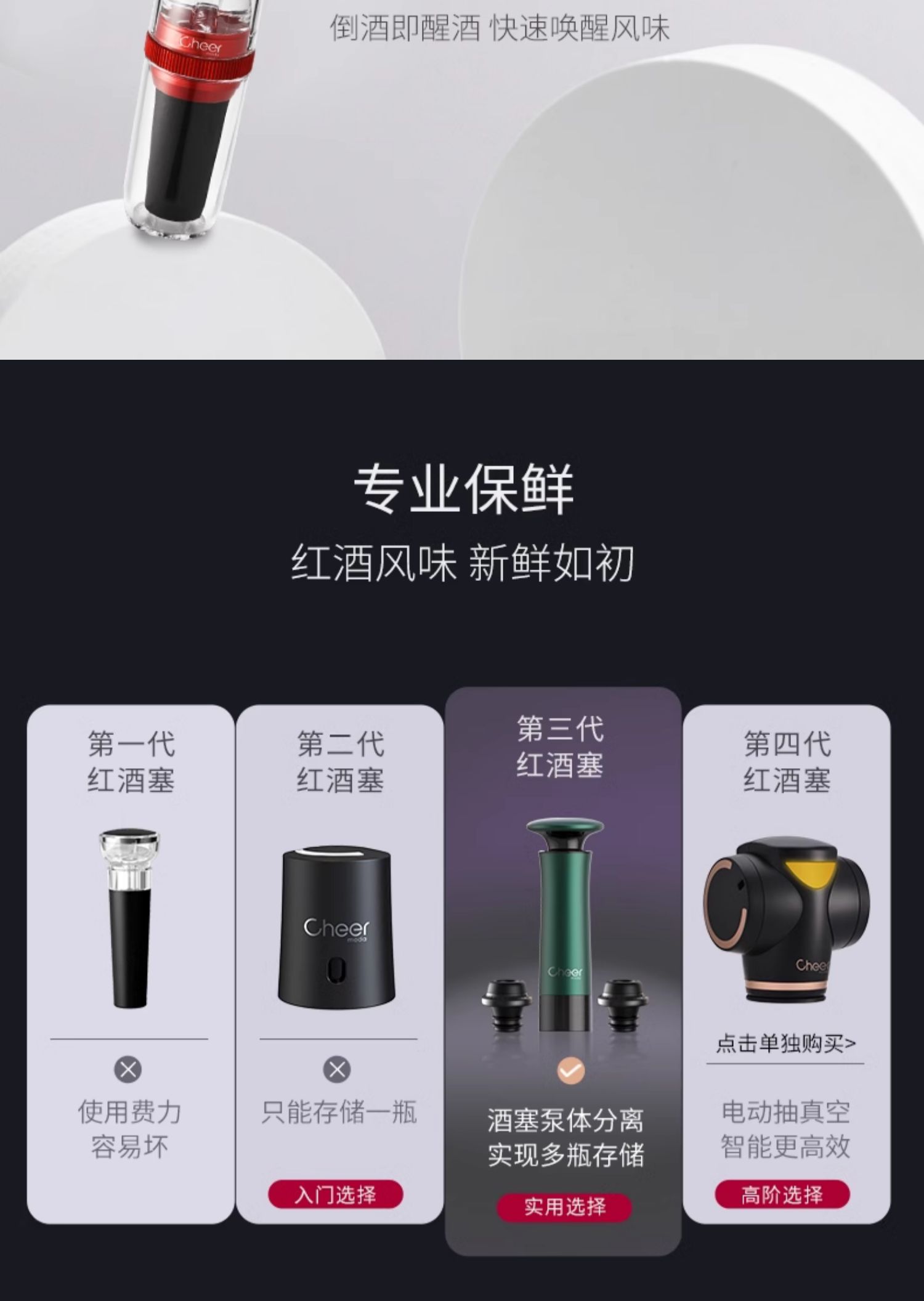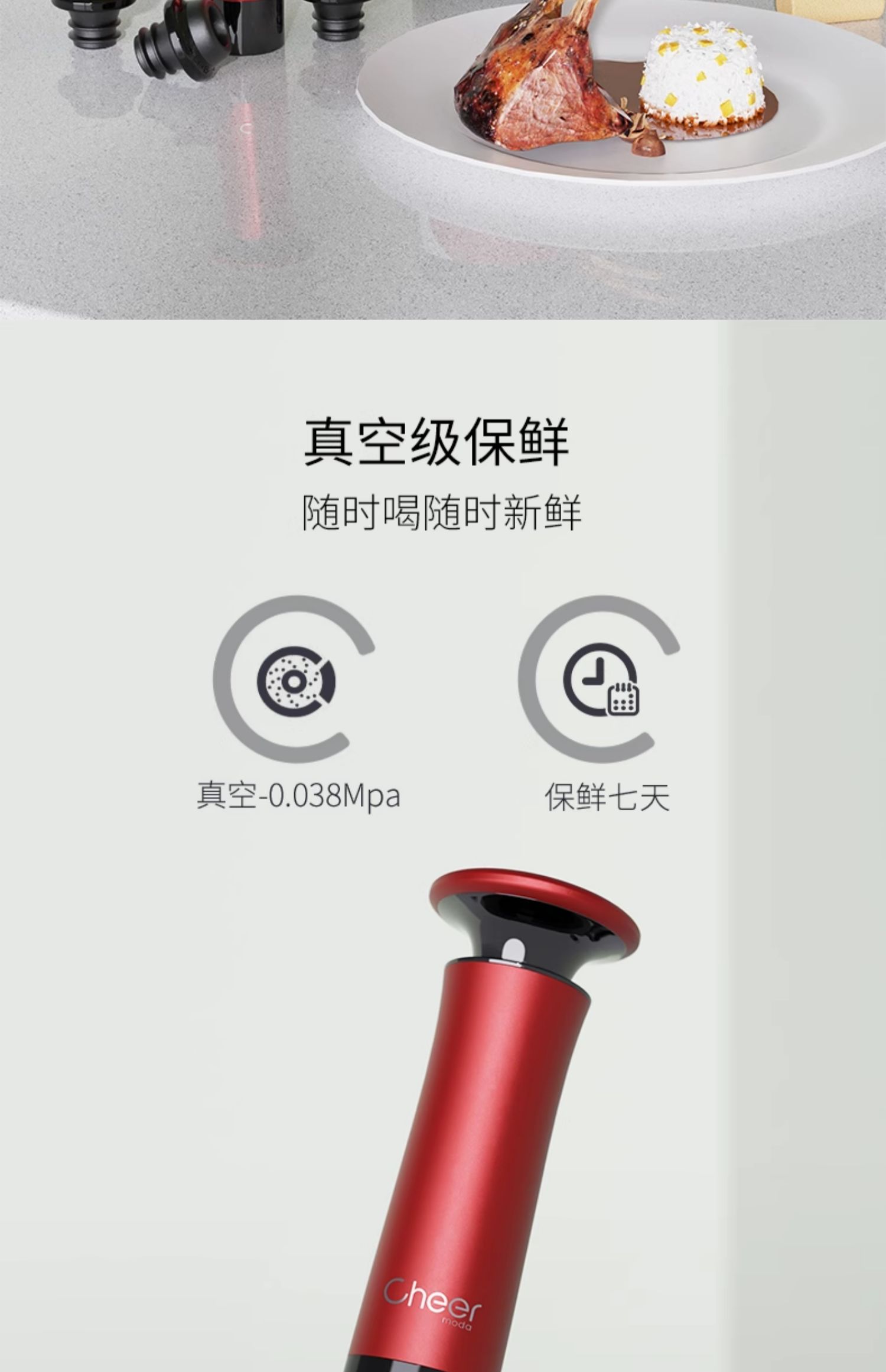 cheer启尔红酒瓶塞 真空保鲜瓶塞家用密封葡萄酒红酒塞子红酒塞红酒抽真空套装 (宝石蓝)