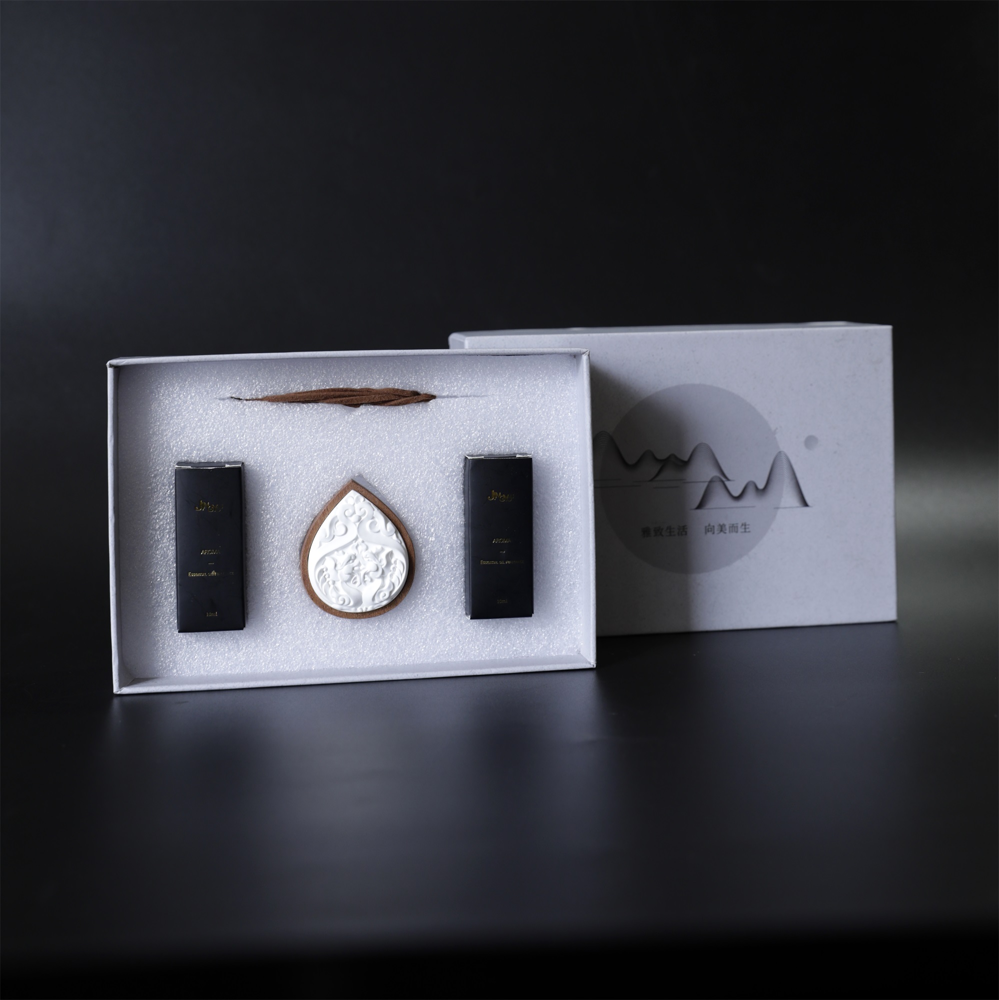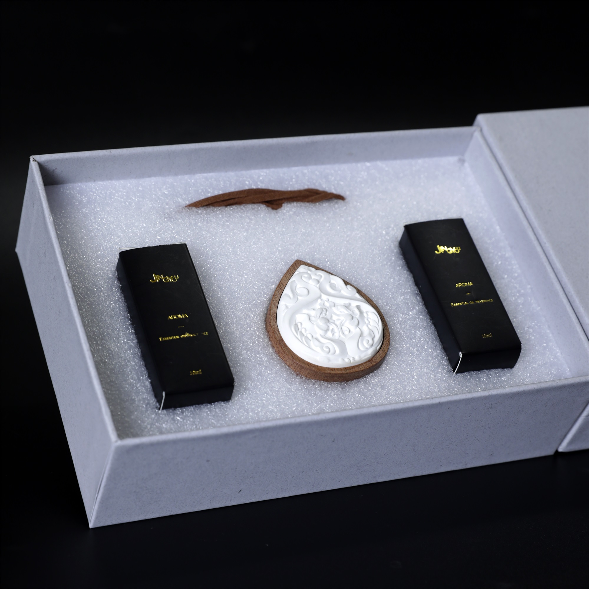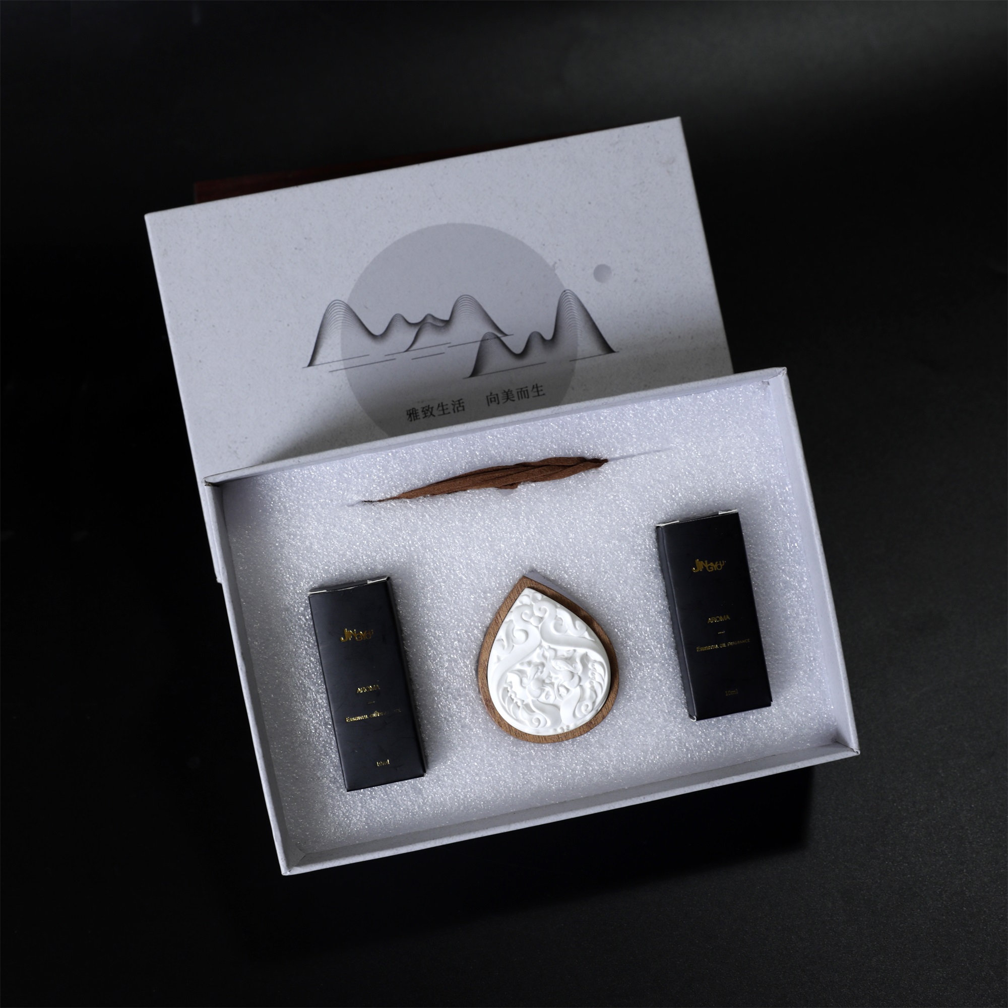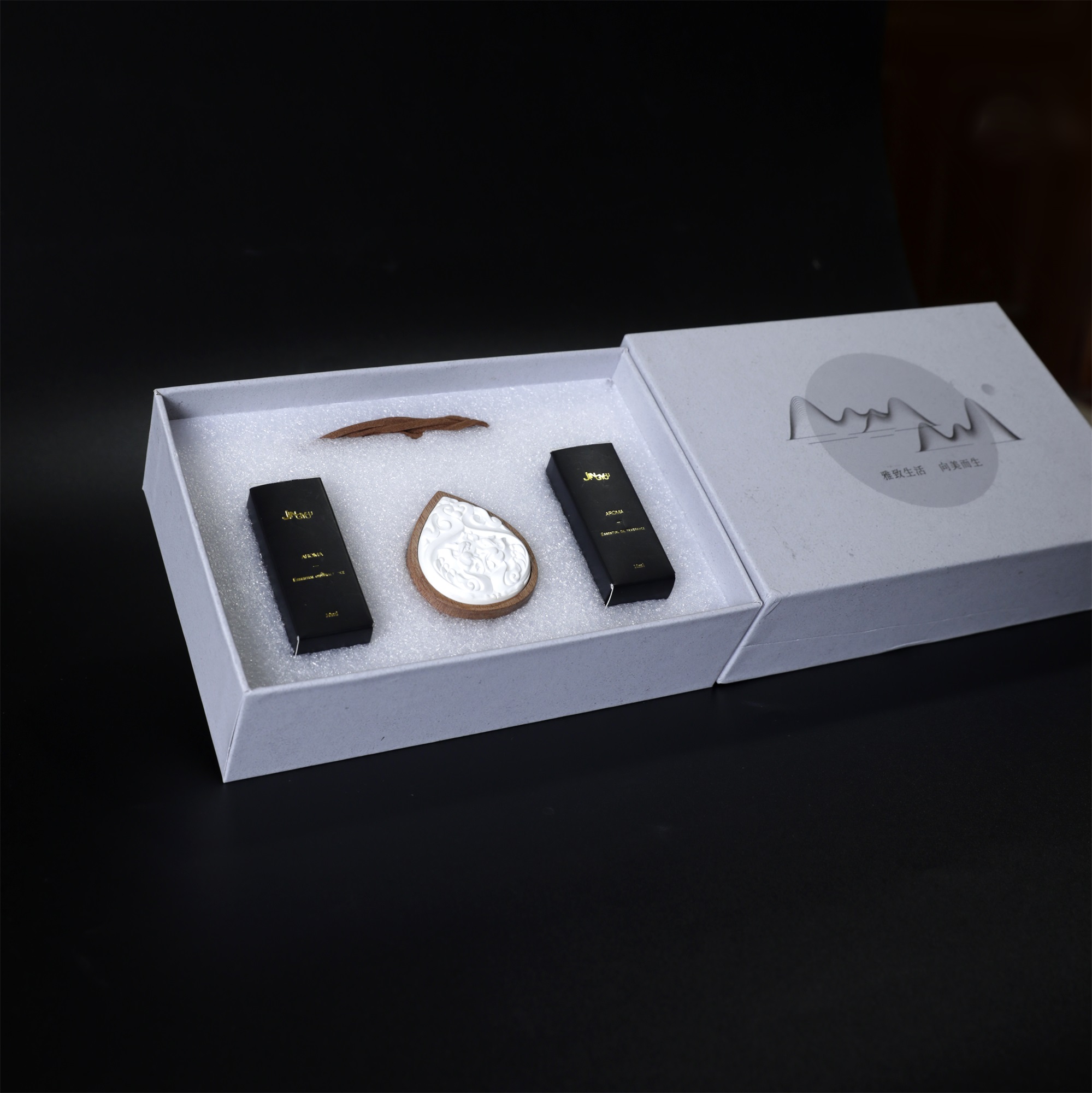 成分:特质石膏瓷粉、精油、实木