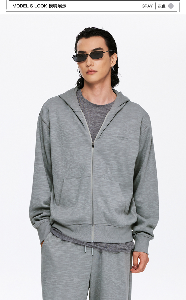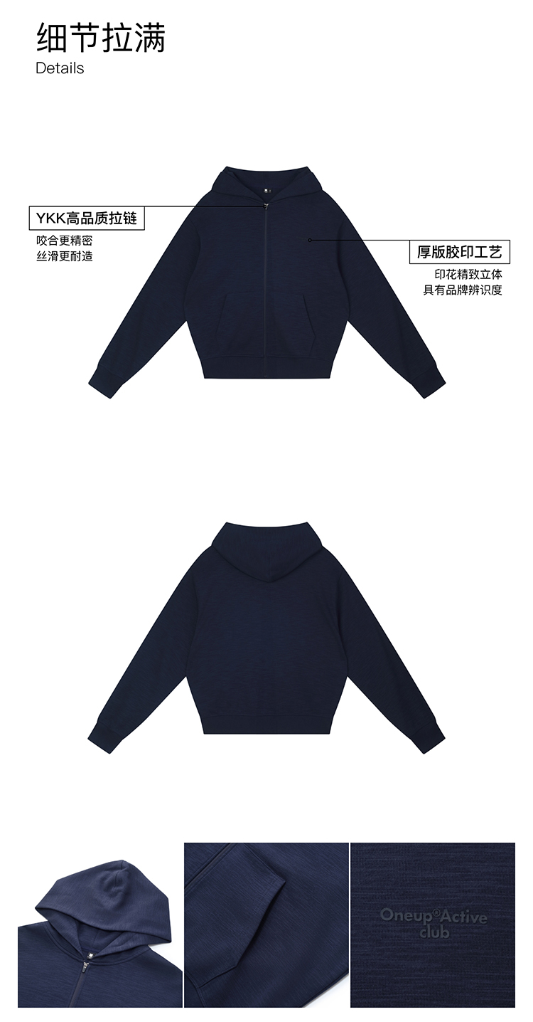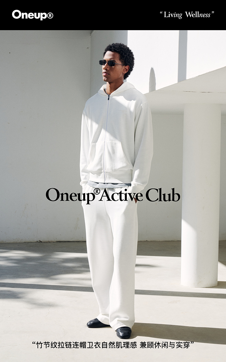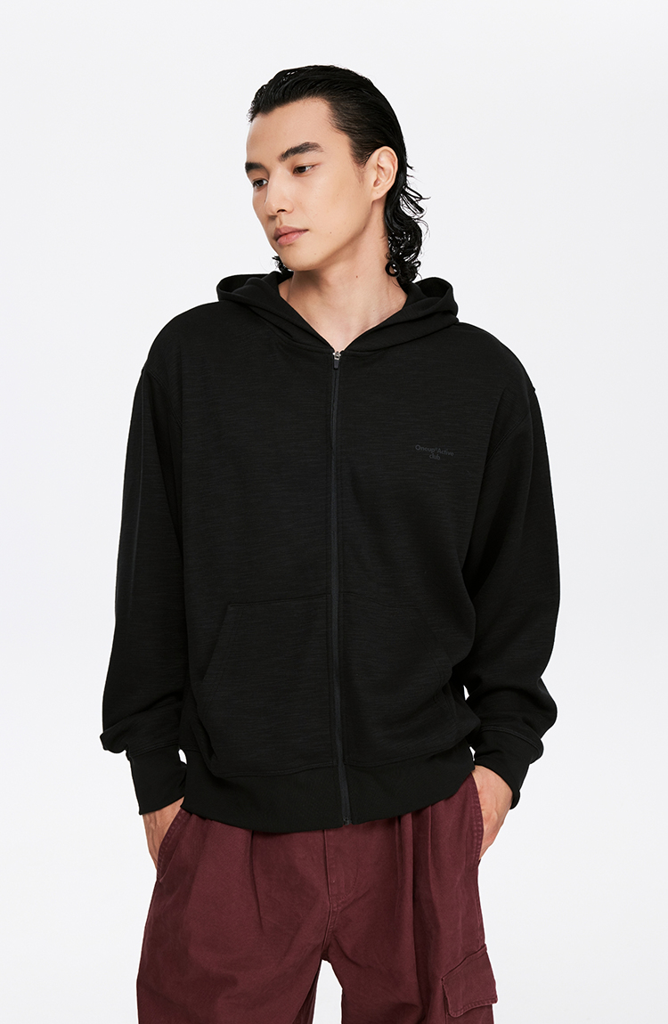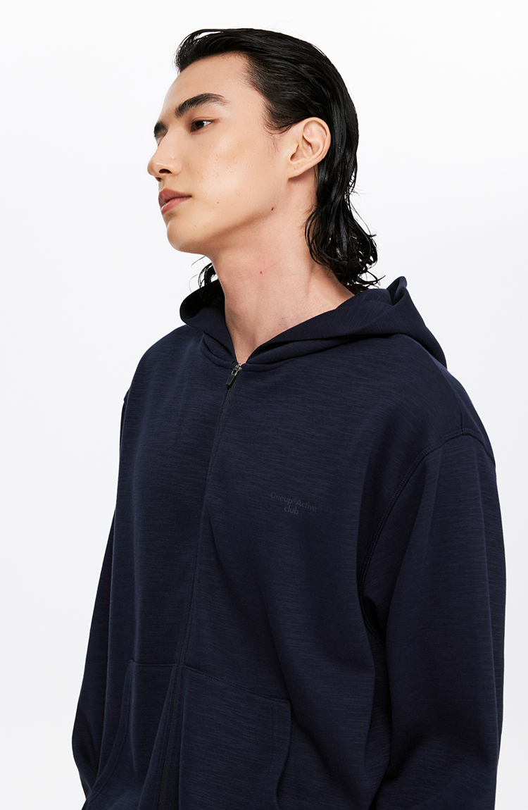 oneup竹节纹拉链连帽卫衣(男女同款)