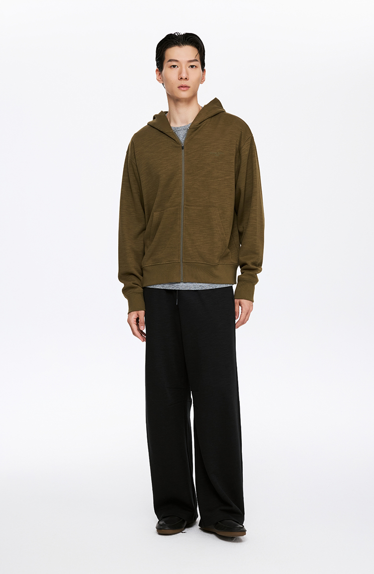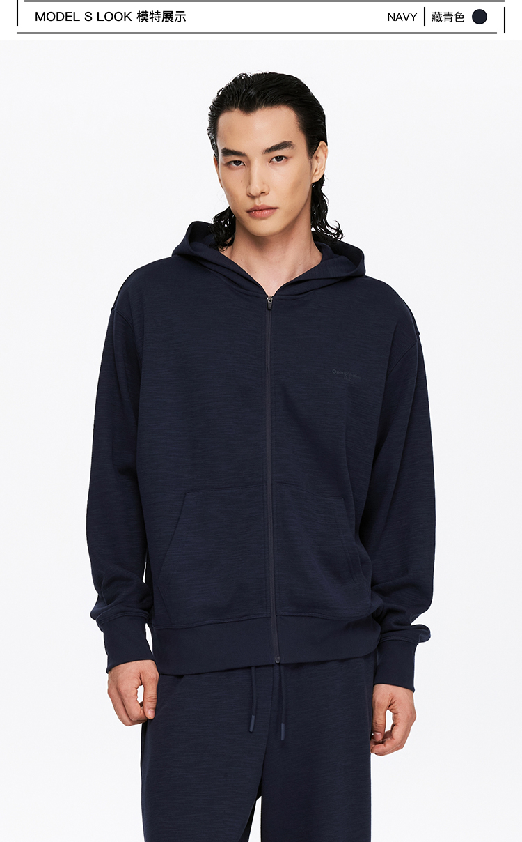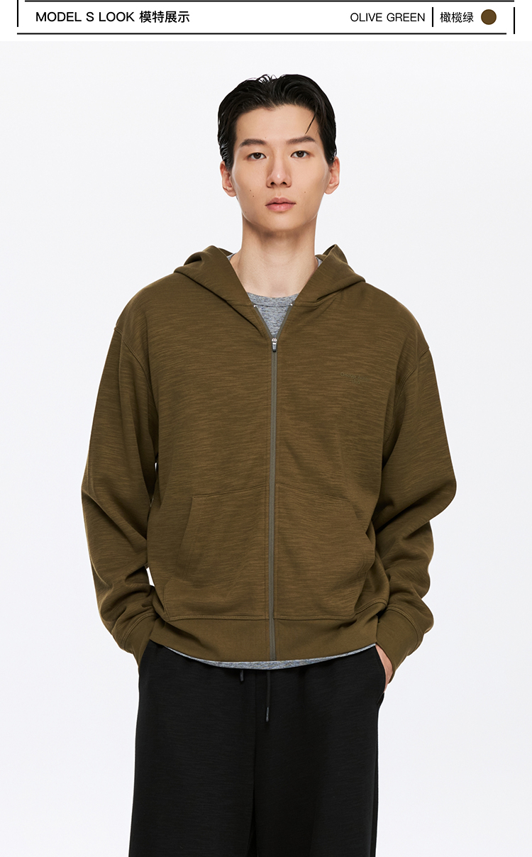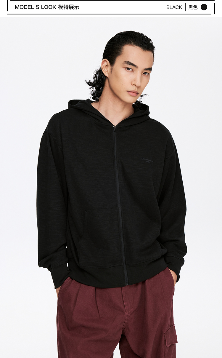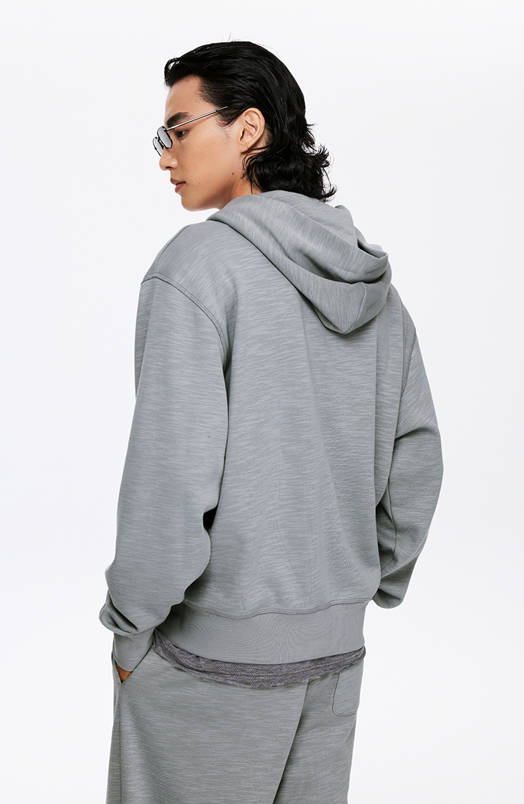 oneup竹节纹拉链连帽卫衣(男女同款)