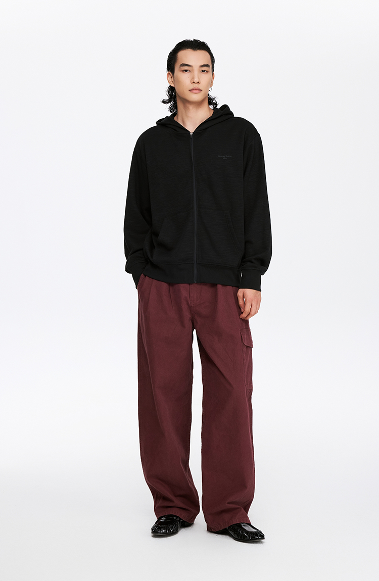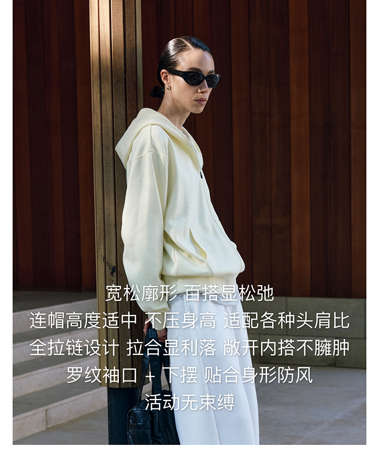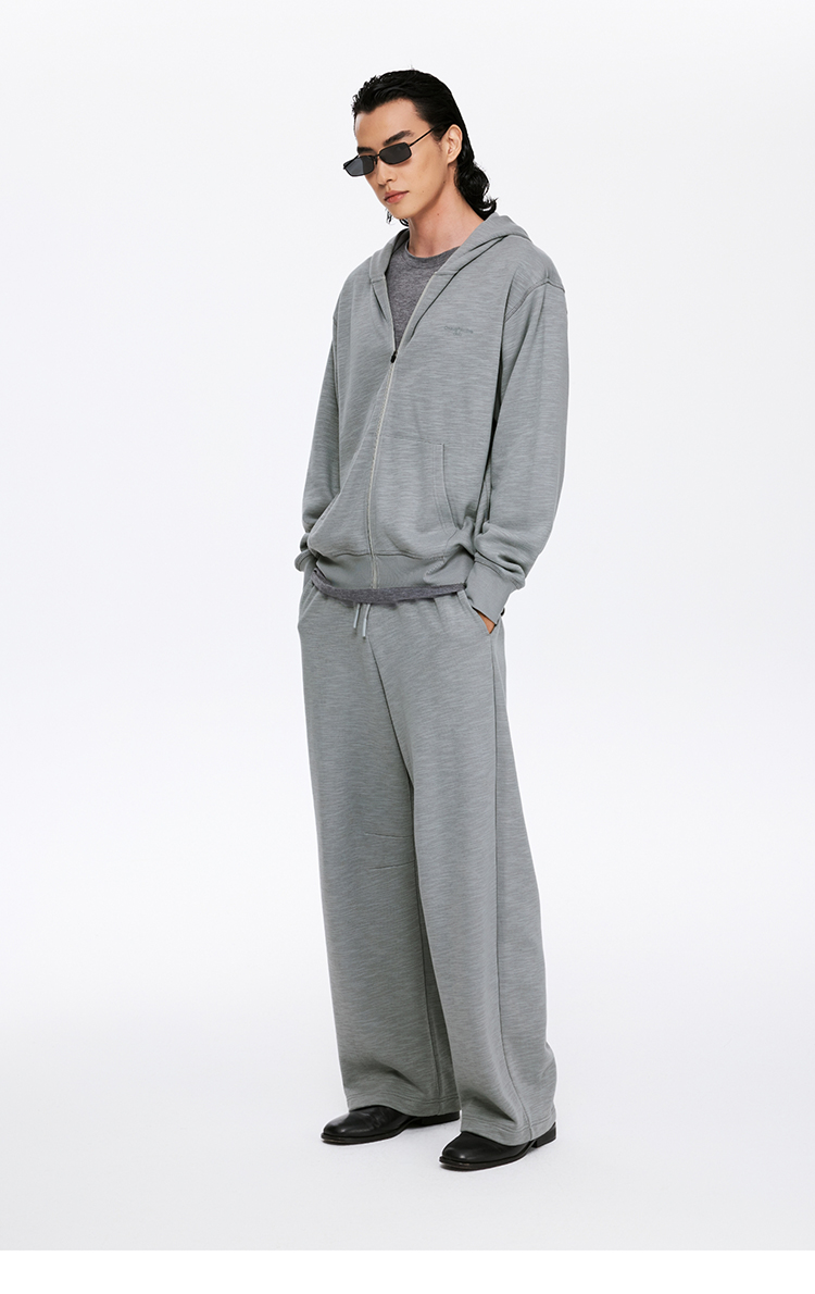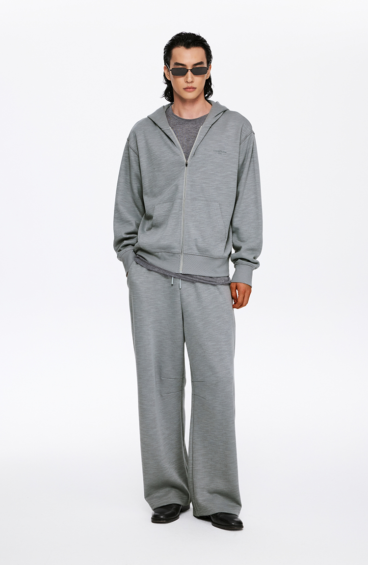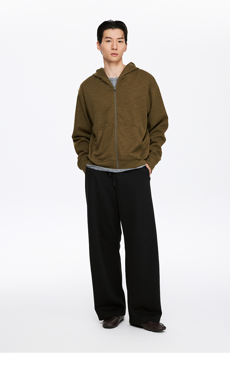 oneup竹节纹拉链连帽卫衣(男女同款)