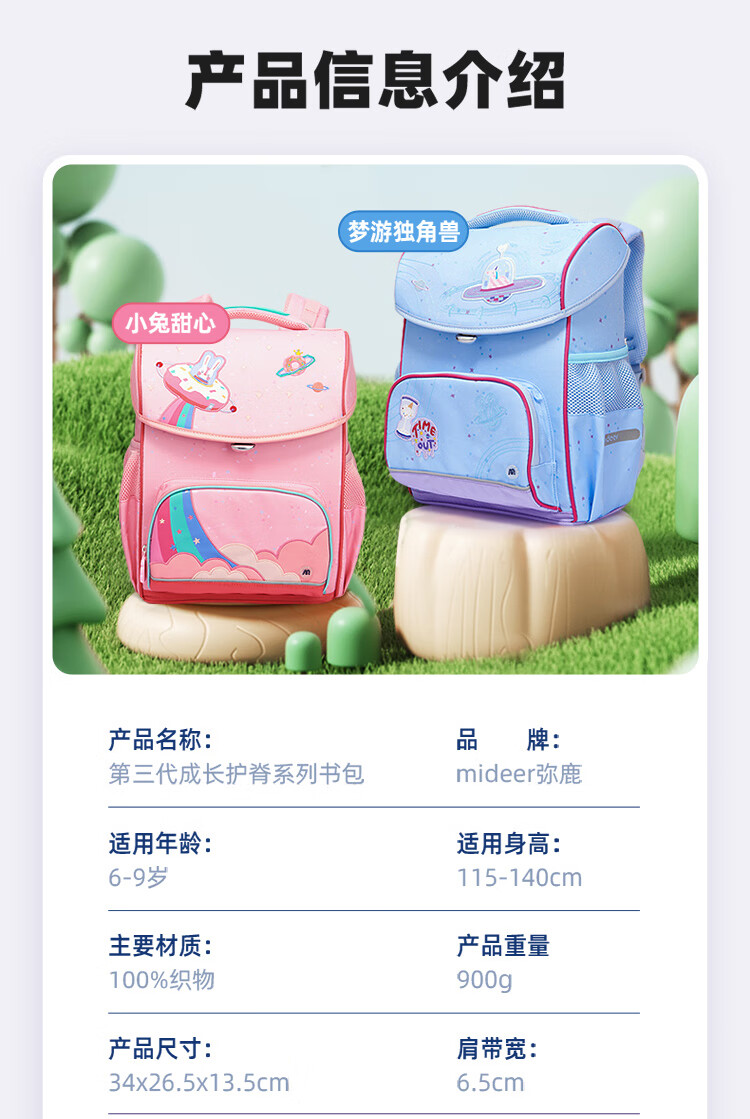 mideerMD1520成长调节减负书包-恐龙星球