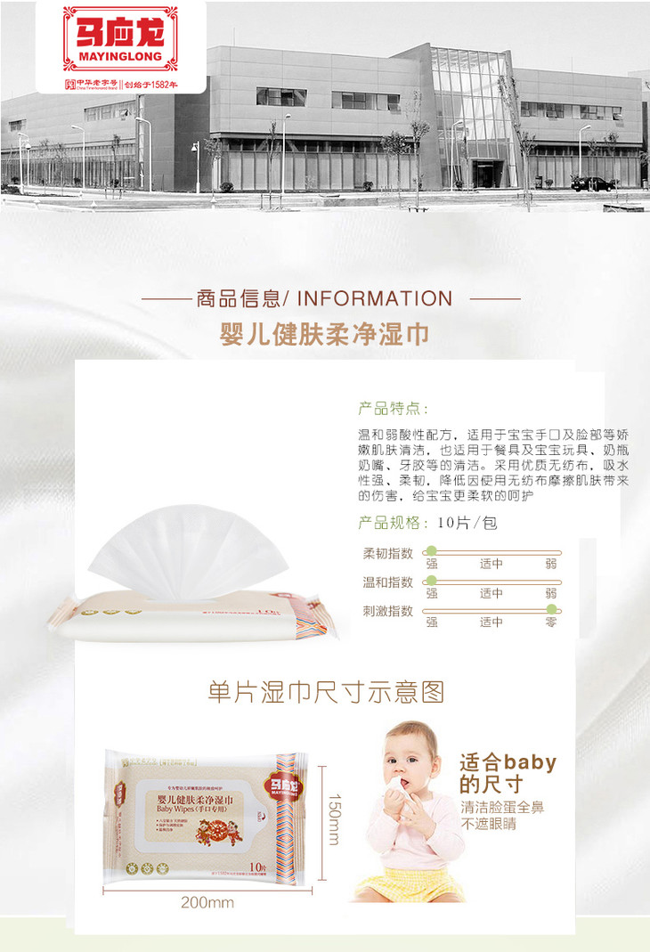 【马应龙】健肤柔净湿巾 婴儿可用 清洁手口 10片装