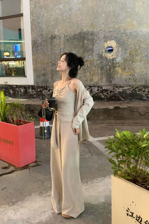 HAYES 慵懒风休闲褶皱吊带针织三件套套装 21556
