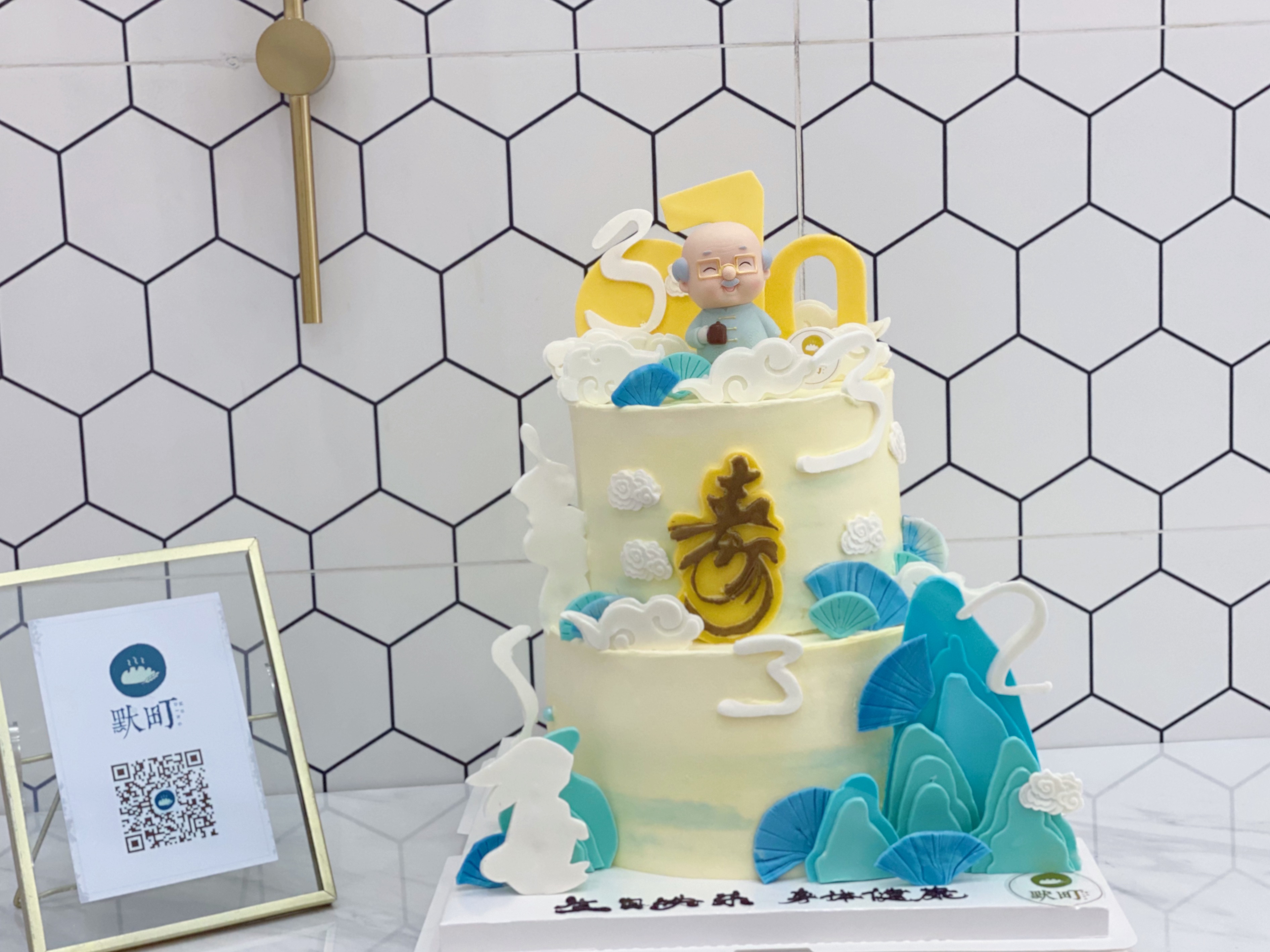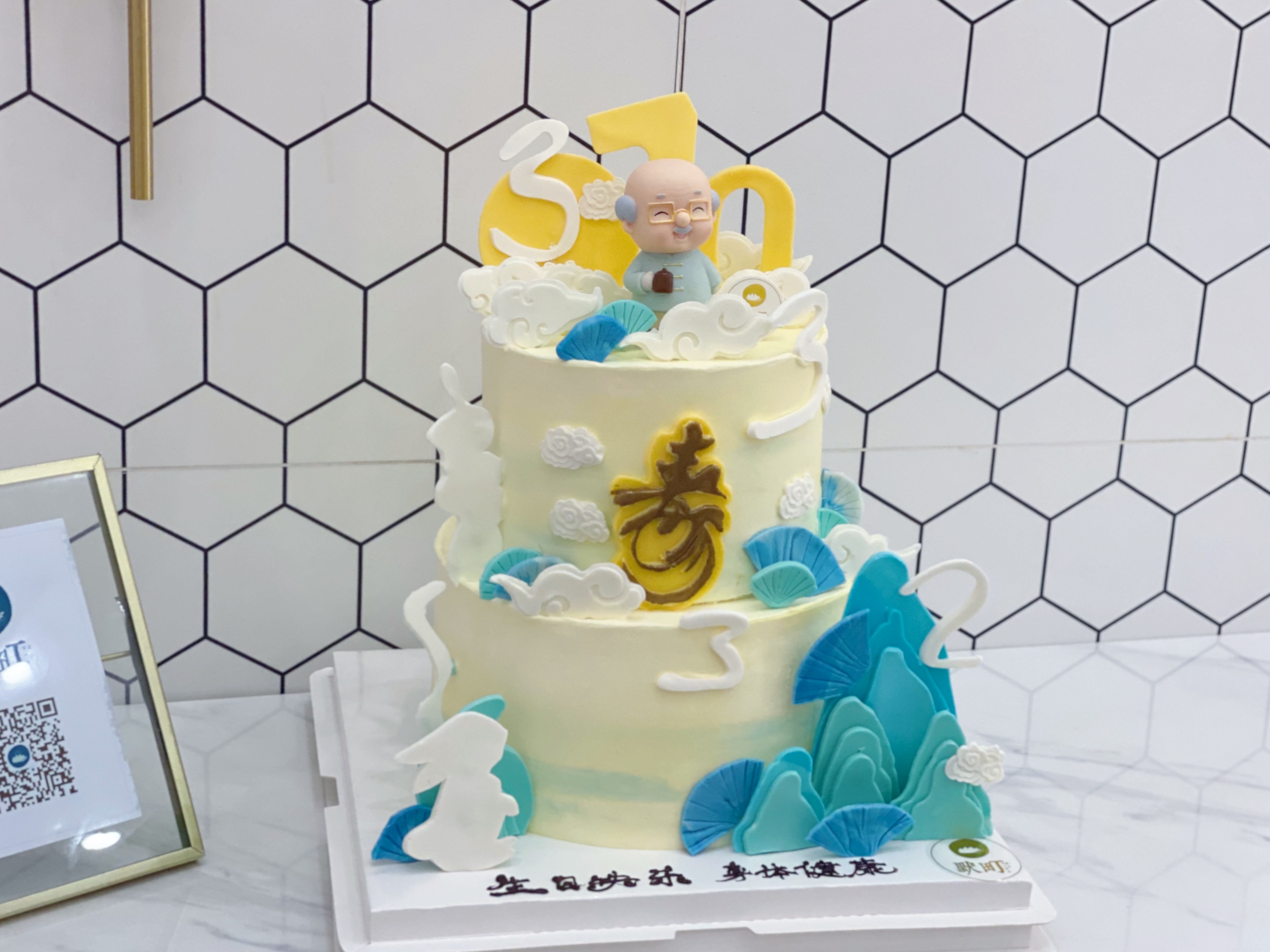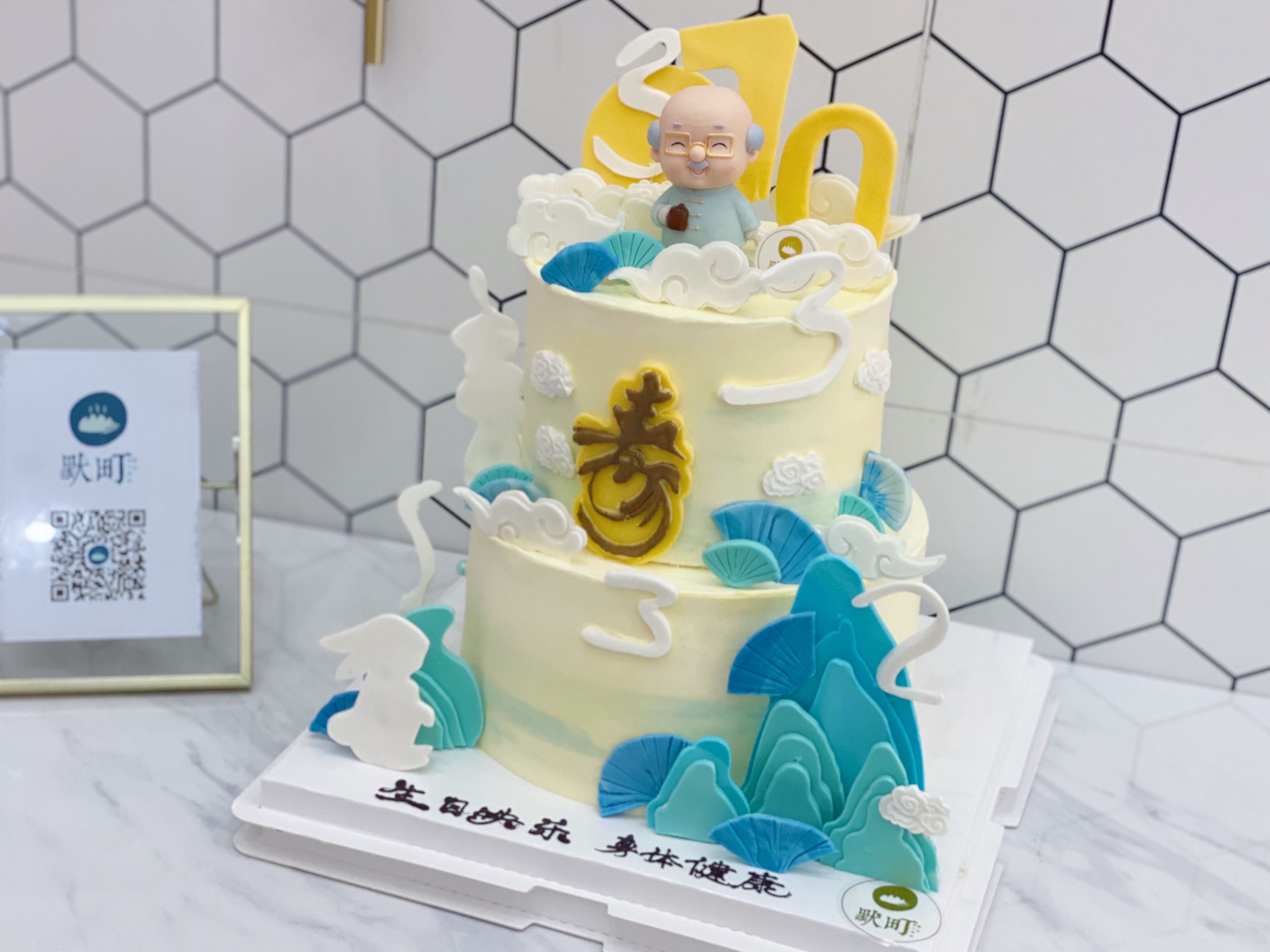 劲松长青&翠竹永节&健康长寿主题蛋糕(可以爷爷公仔换奶奶公仔)