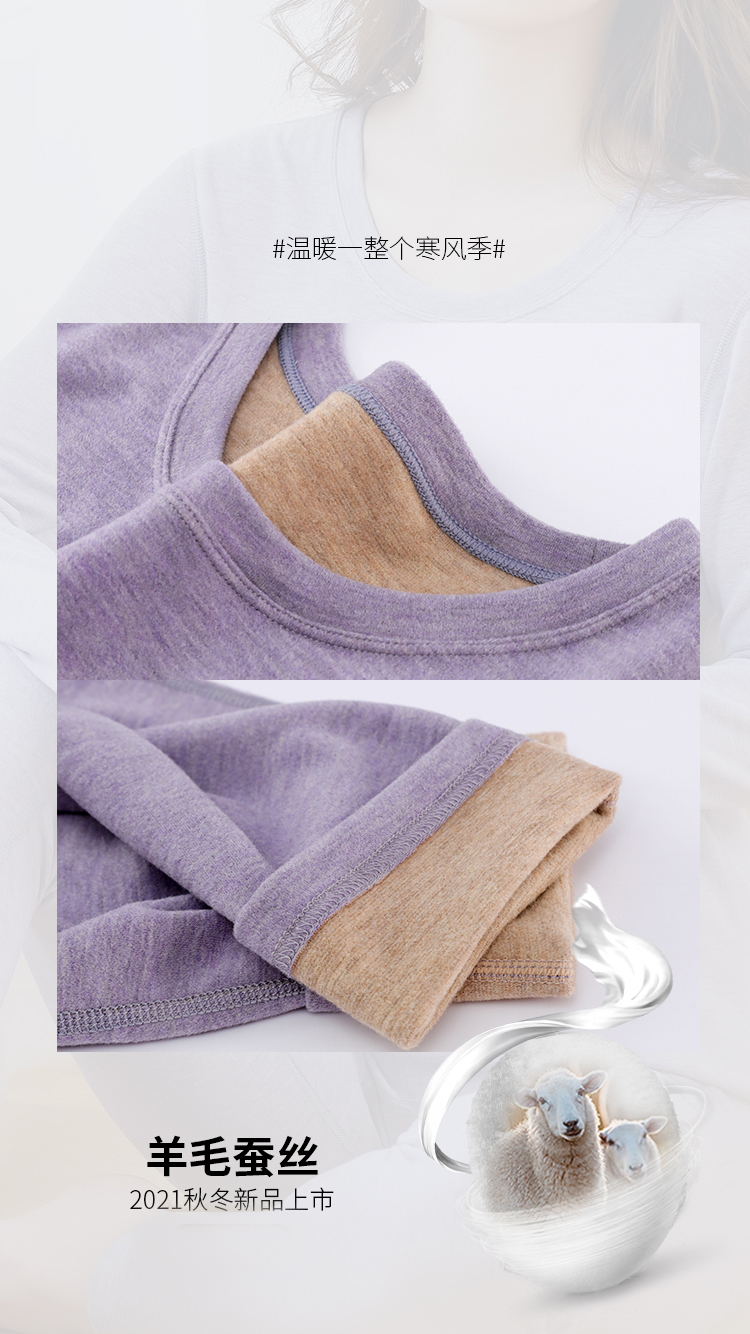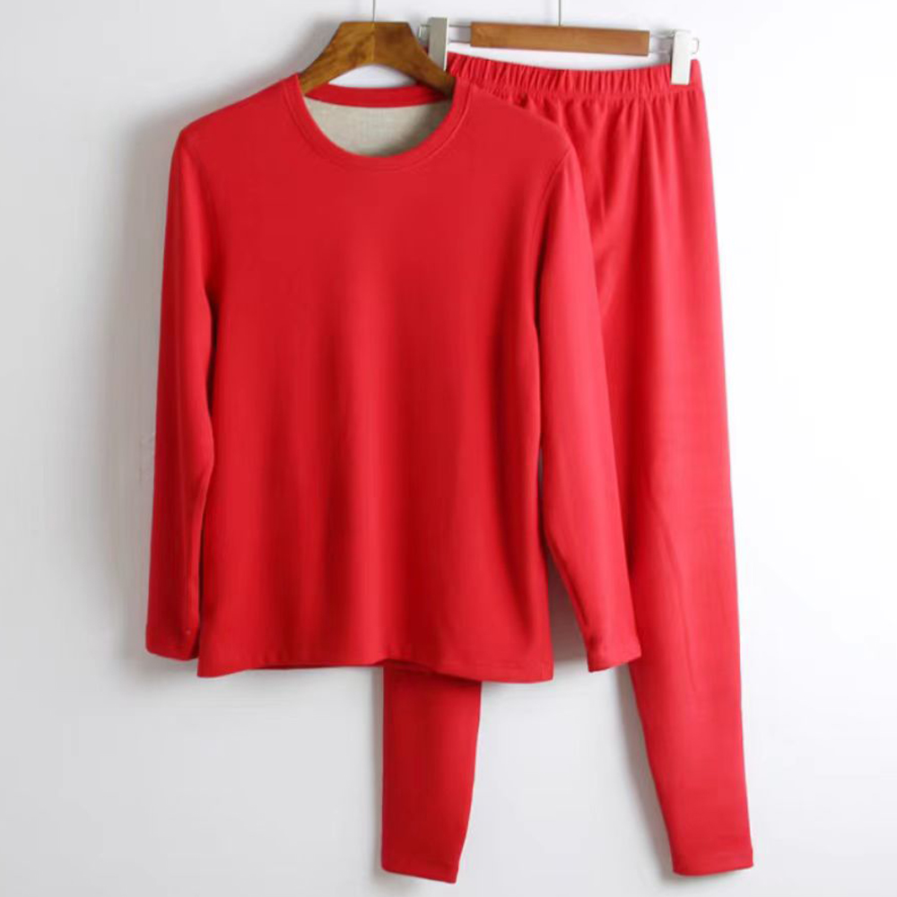 【大红套装】【女士羊毛蚕丝圆领保暖套装】女士新款保暖套装蚕丝套装保暖衣【FF25821】