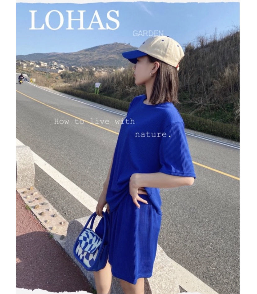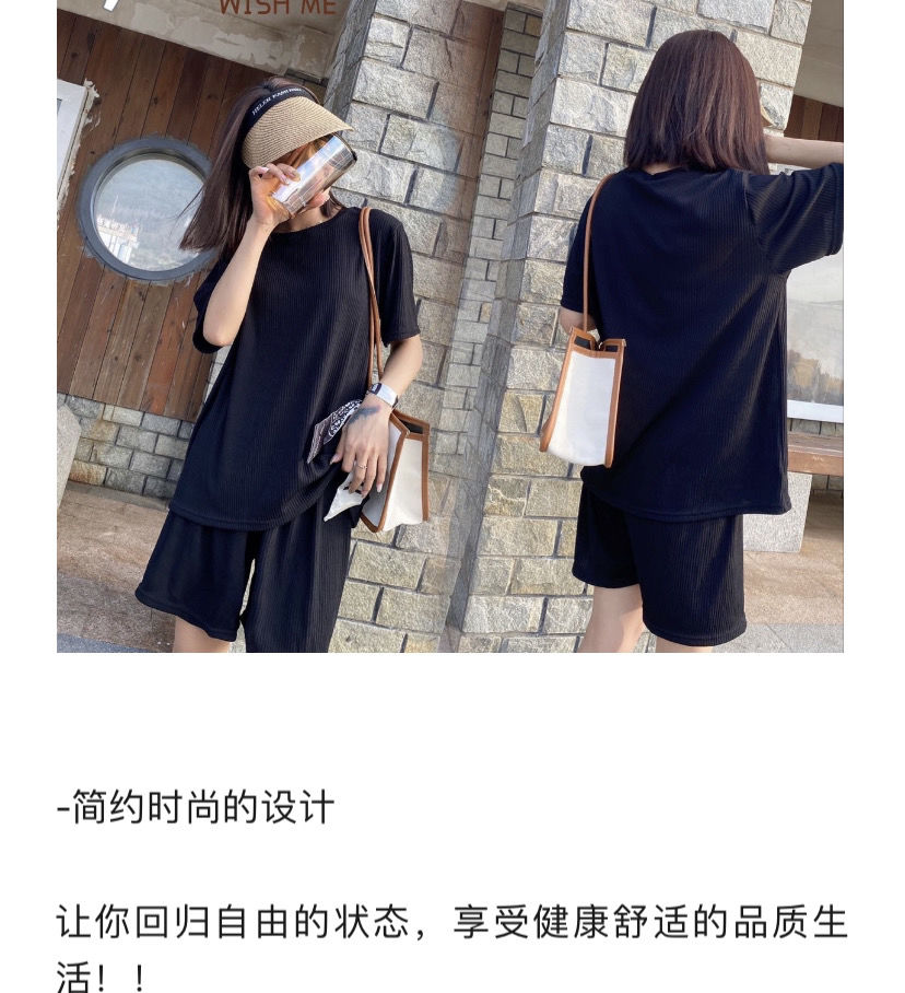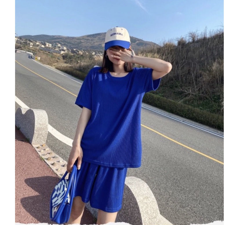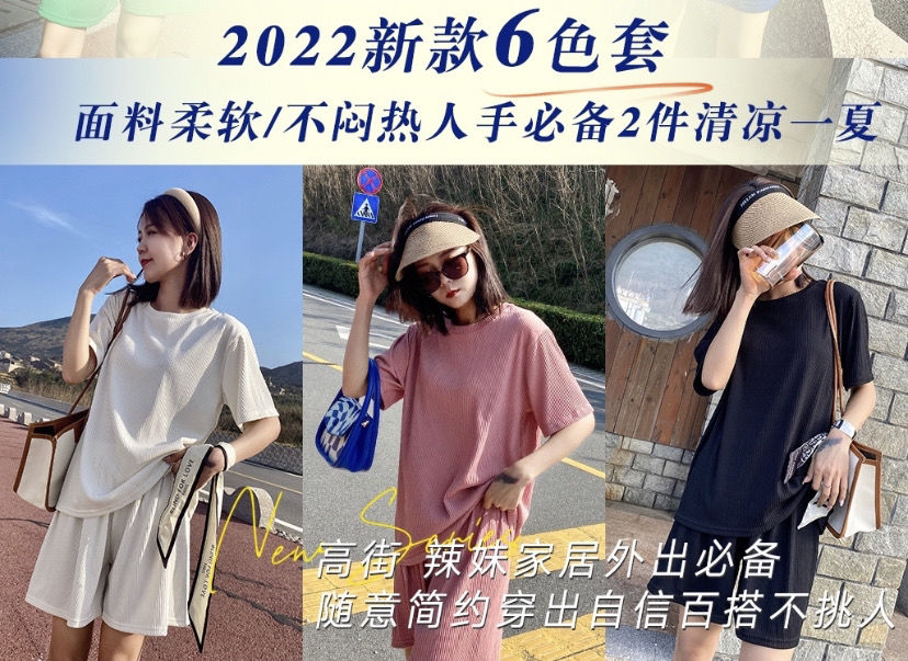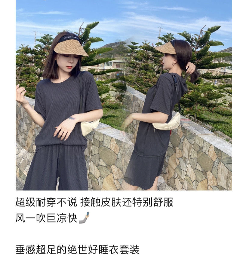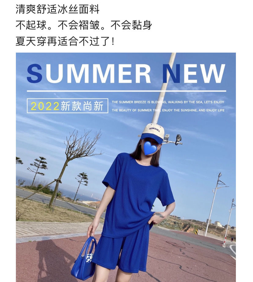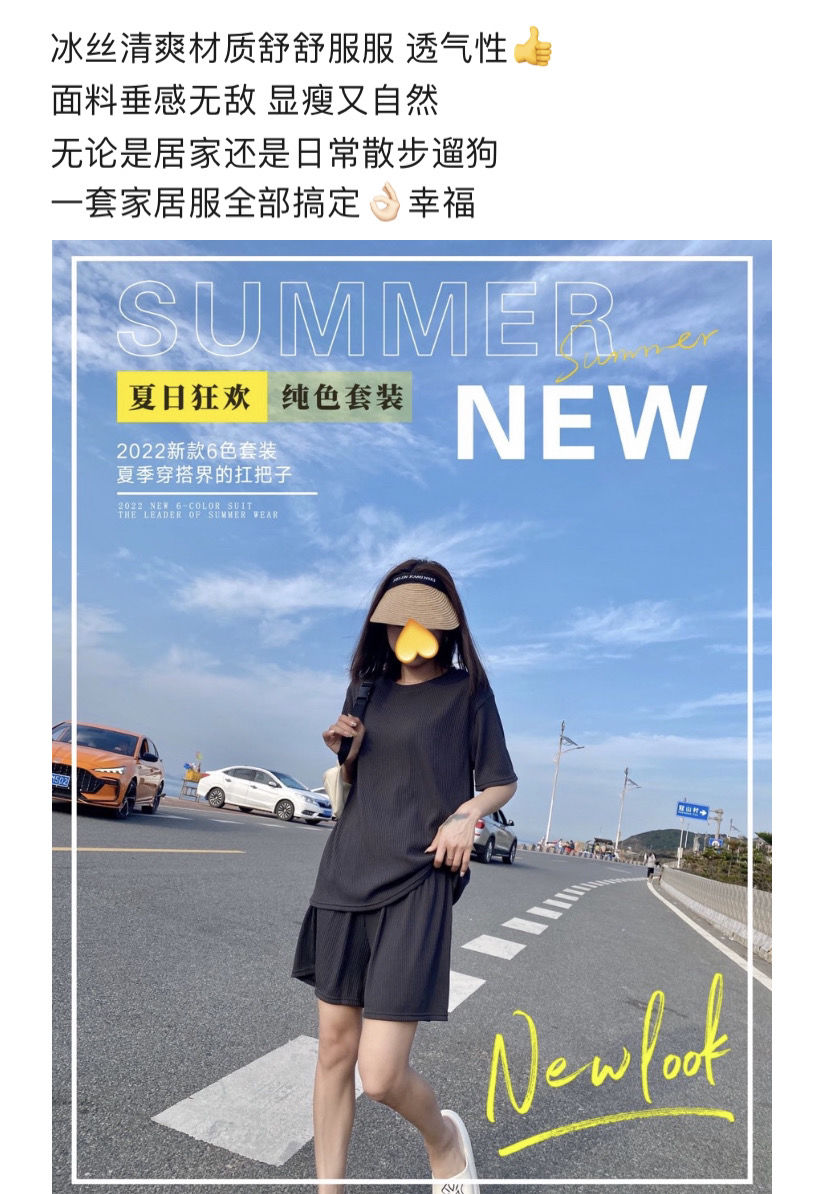【夏季必备~】新款百搭休闲时尚冰丝凉凉休闲套装女宽松显瘦懒人居家外出短裤女短袖套装胖mm大码
