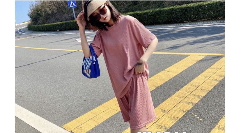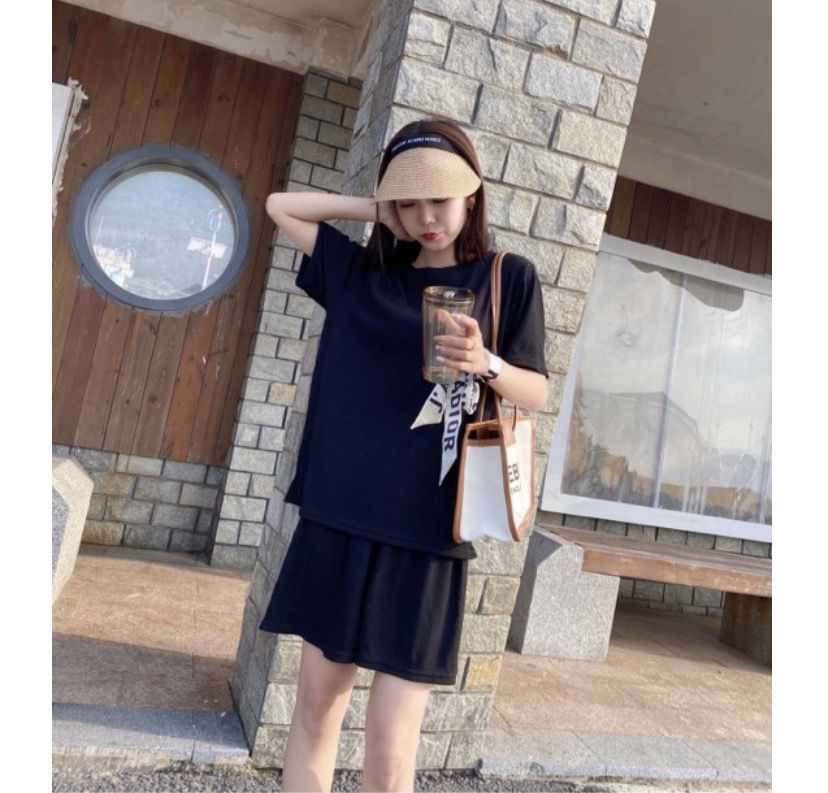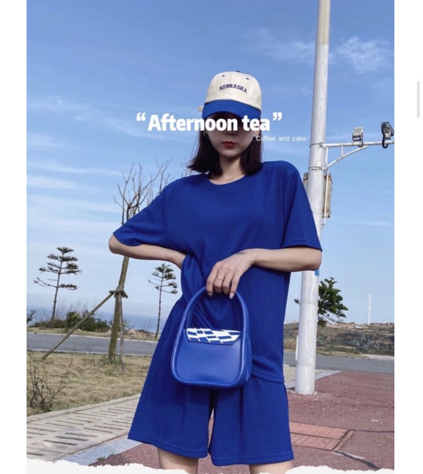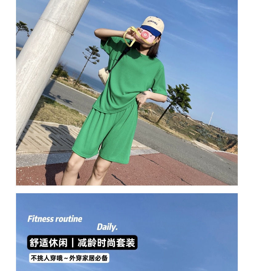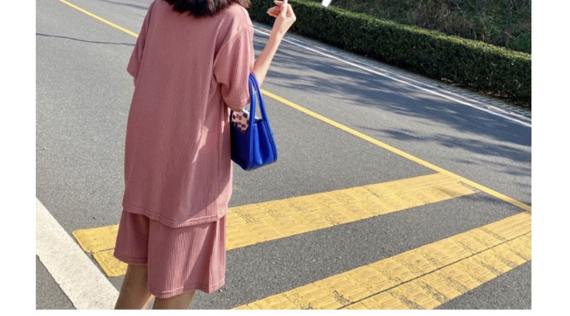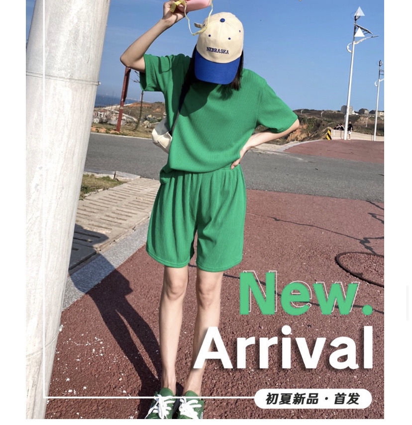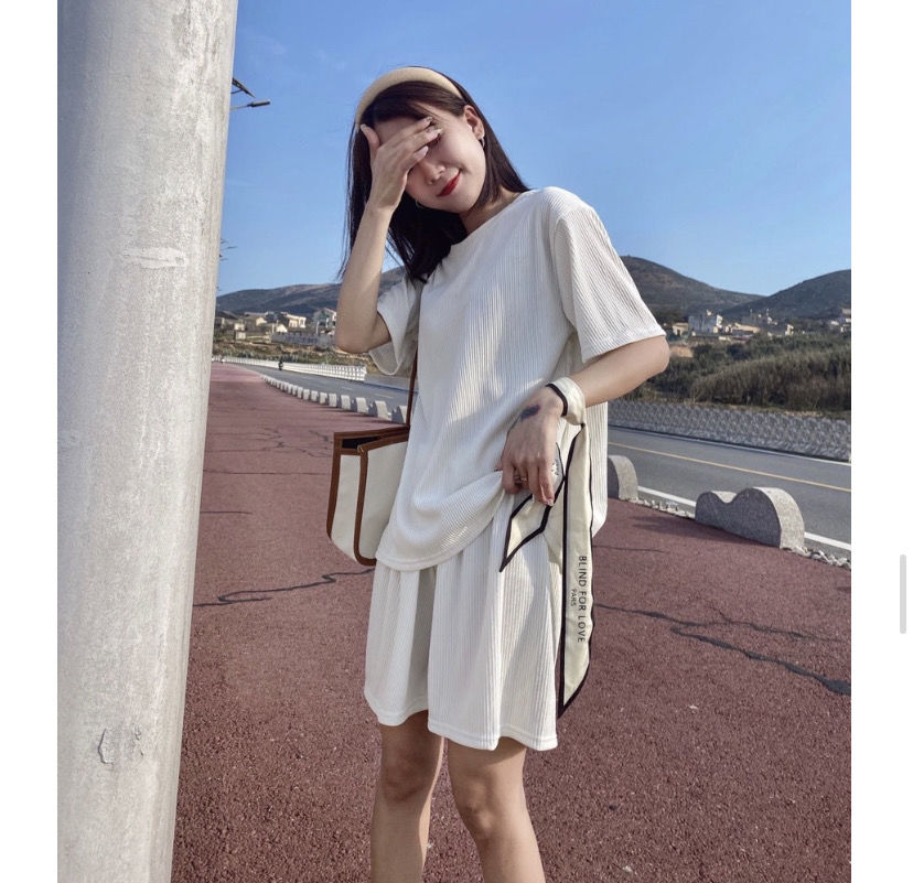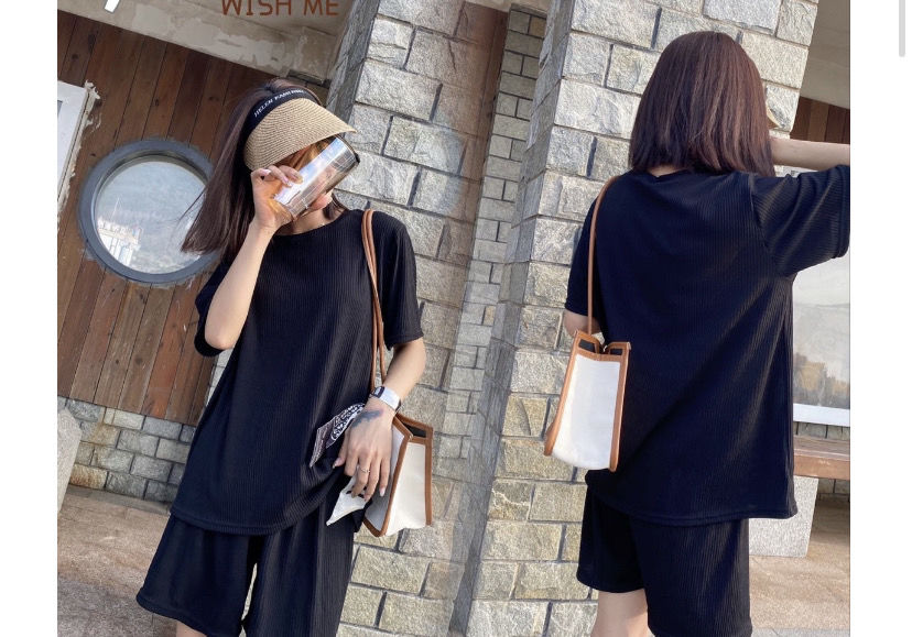 【夏季必备~】新款百搭休闲时尚冰丝凉凉休闲套装女宽松显瘦懒人居家外出短裤女短袖套装胖mm大码