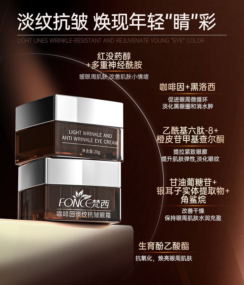 【梵西新品 119元任选3件】梵西咖啡因眼霜淡化细纹黑眼圈眼袋提拉抗皱紧致去除神器女男官方 20g/瓶