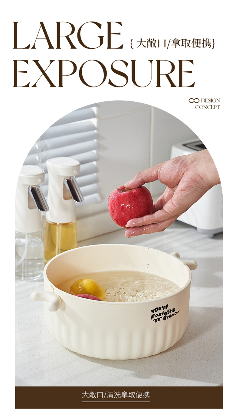 【果蔬沥水,分层不混】圆形双层果蔬篮,大容量,精抛沥水,大敞口,防滑底部,收纳整洁,厨房好帮手!