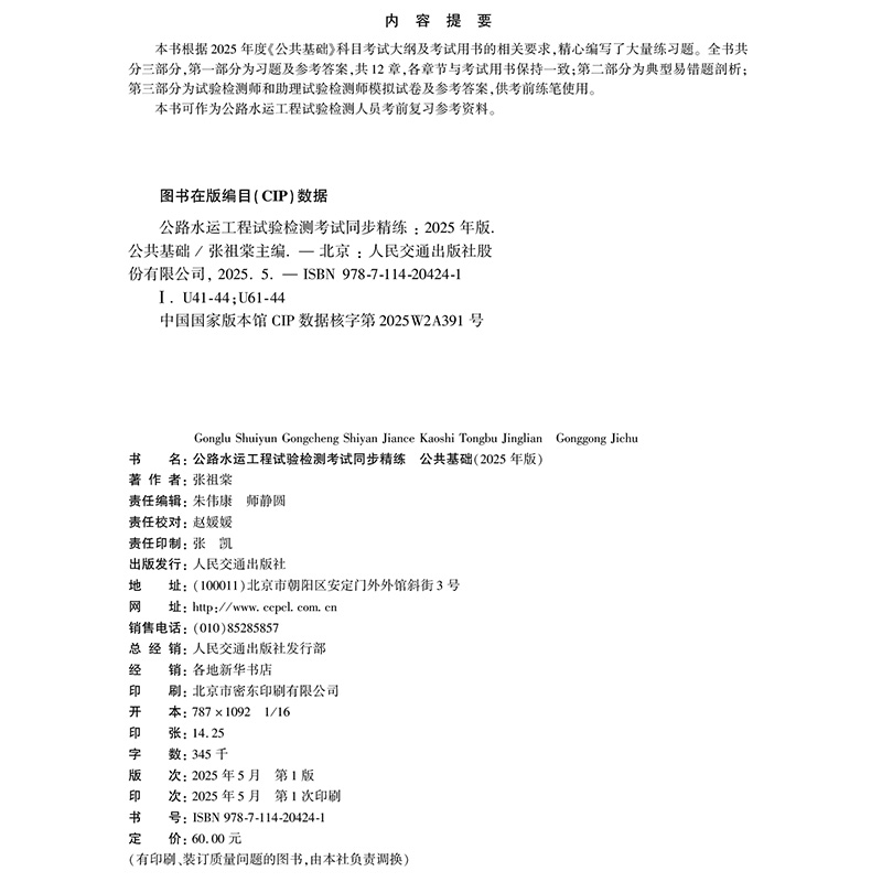 书名:公路水运工程试验检测考试同步精练 公共基础(2025年版)