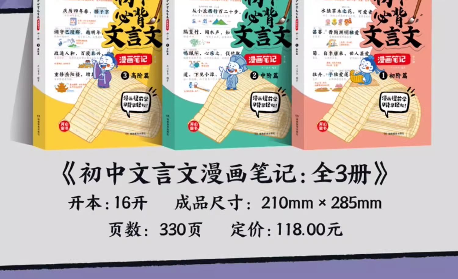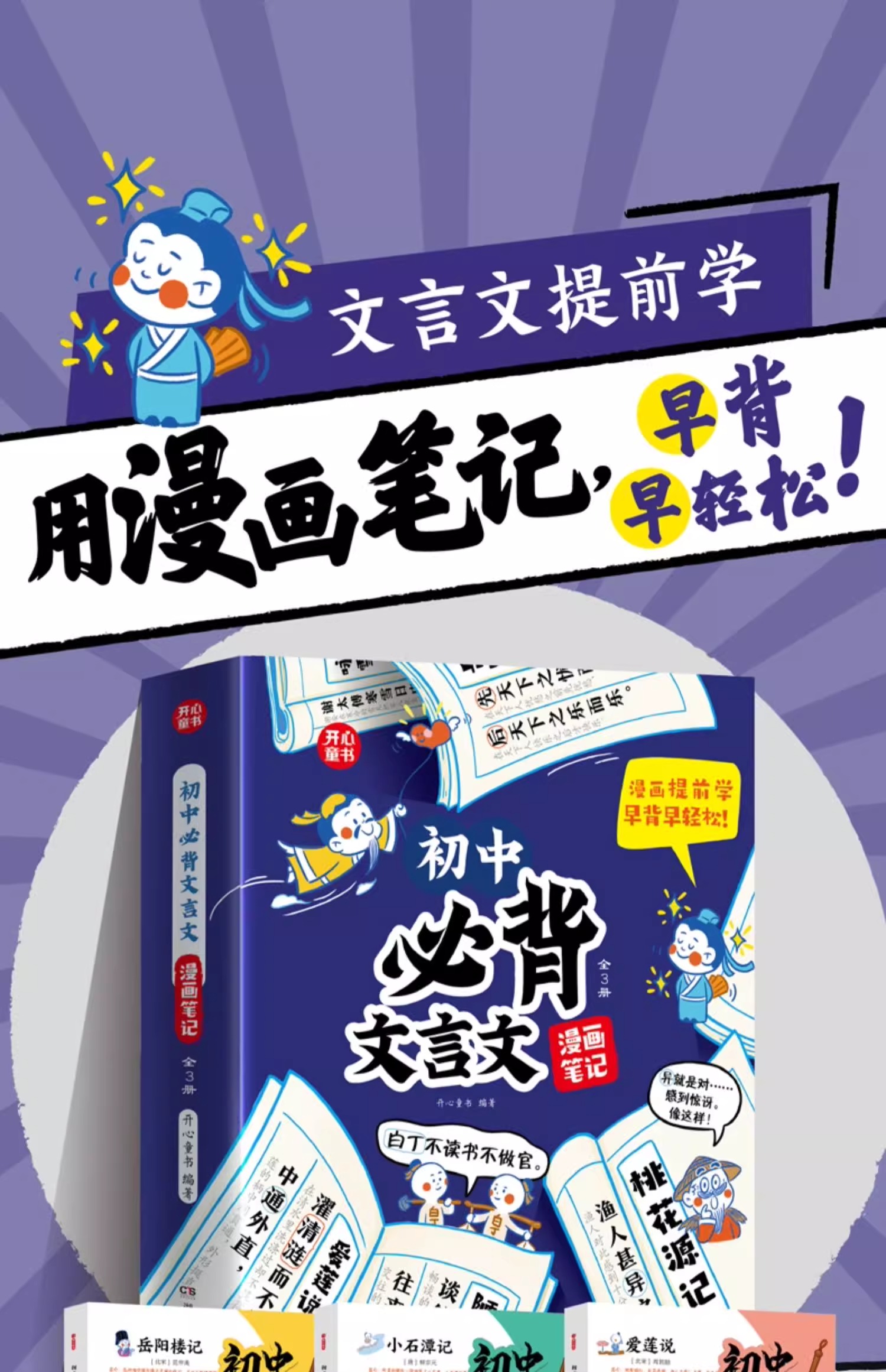 开心·初中必背文言文漫画笔记:全3册