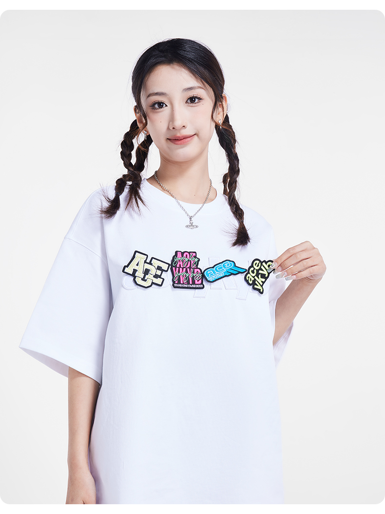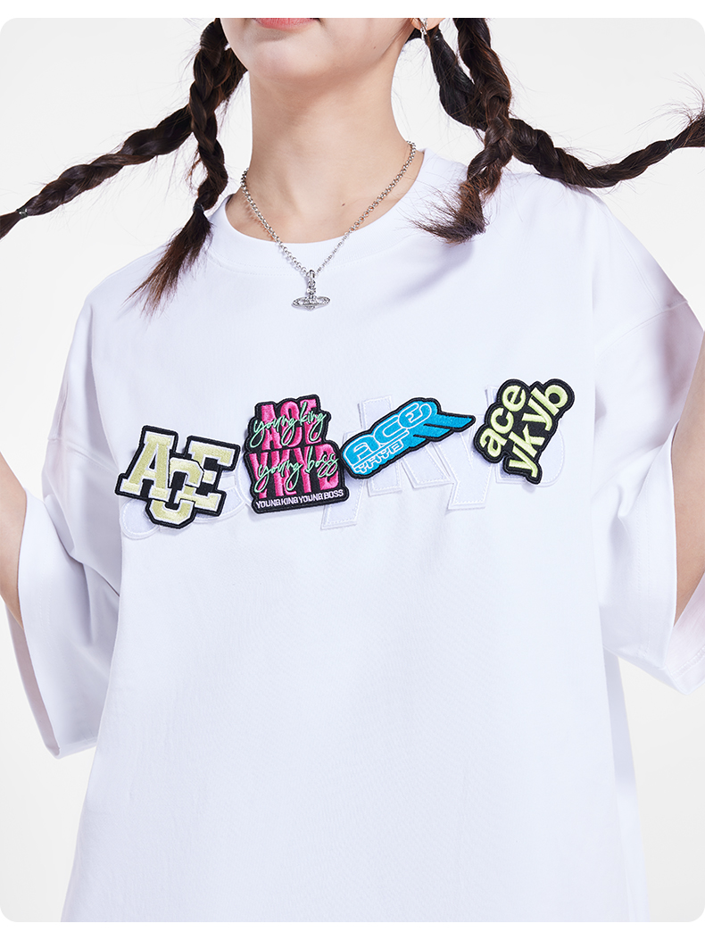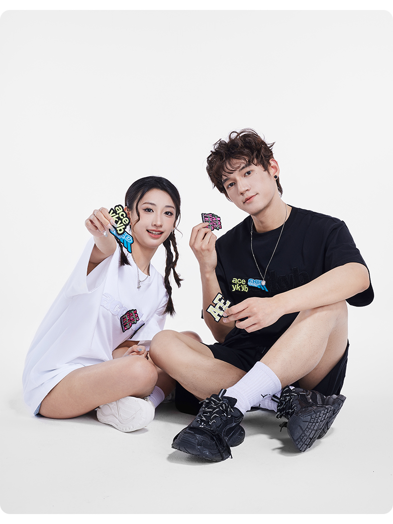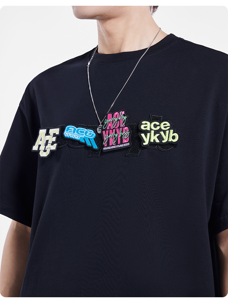 [199买一送一]YKYB趣味魔术贴T恤潮流中性2025夏季新款字母贴布组合短袖上衣女