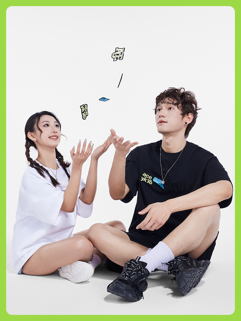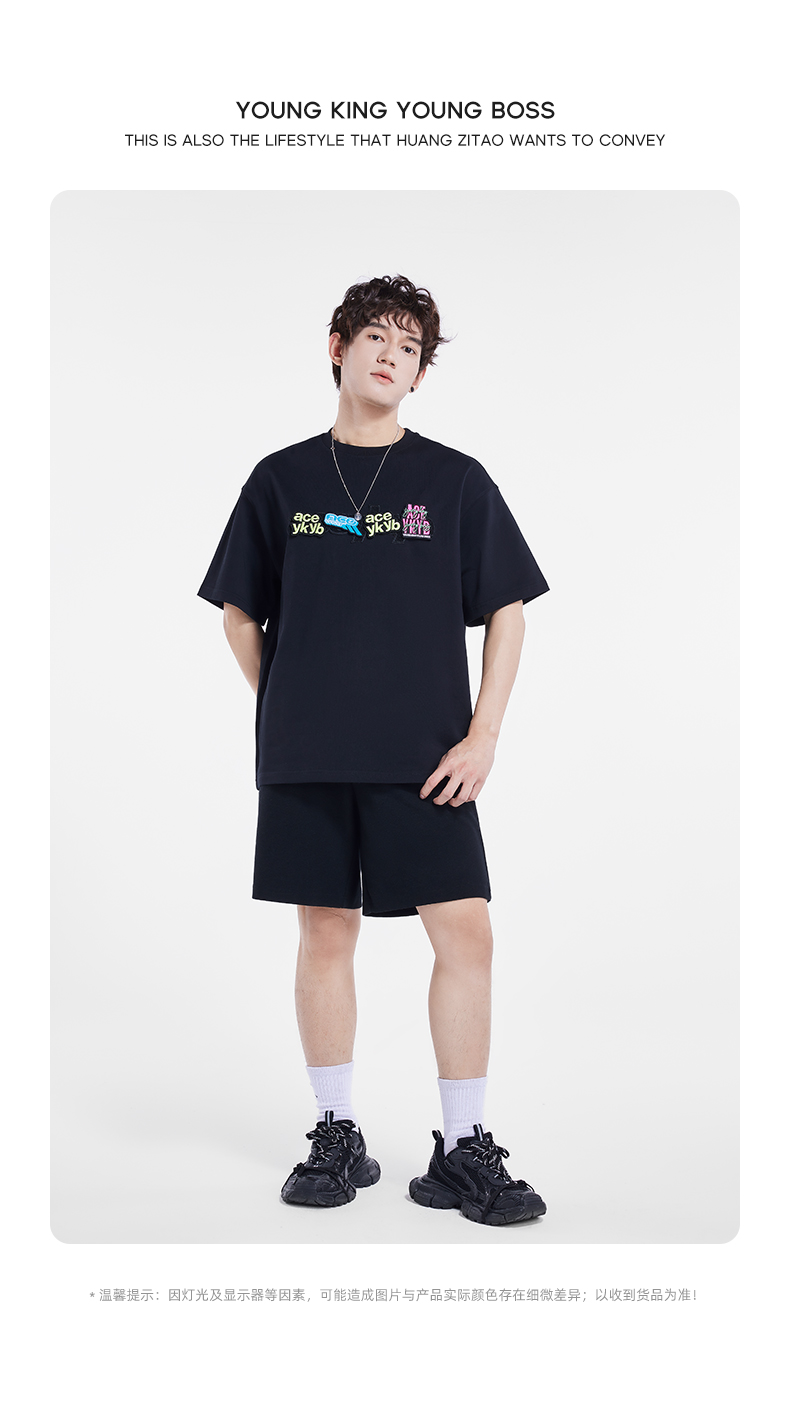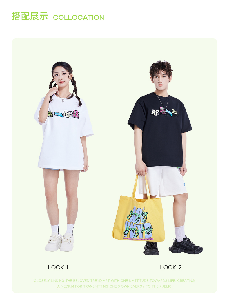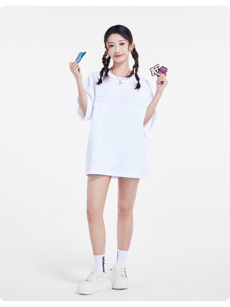[199买一送一]YKYB趣味魔术贴T恤潮流中性2025夏季新款字母贴布组合短袖上衣女