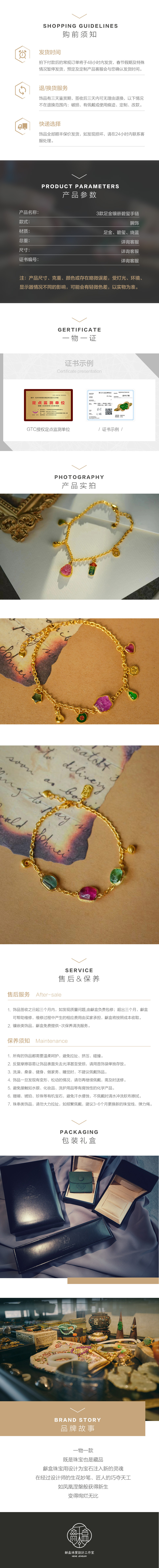 龢盒原创 三款足金镶嵌天然碧玺手链