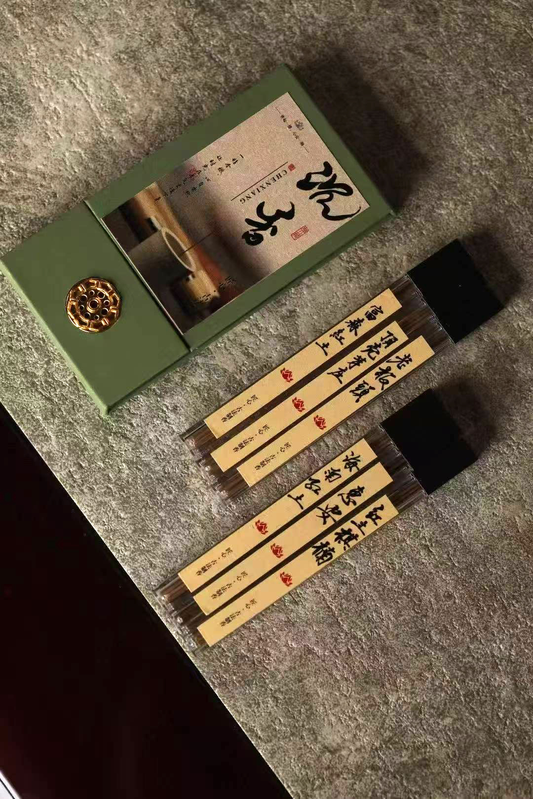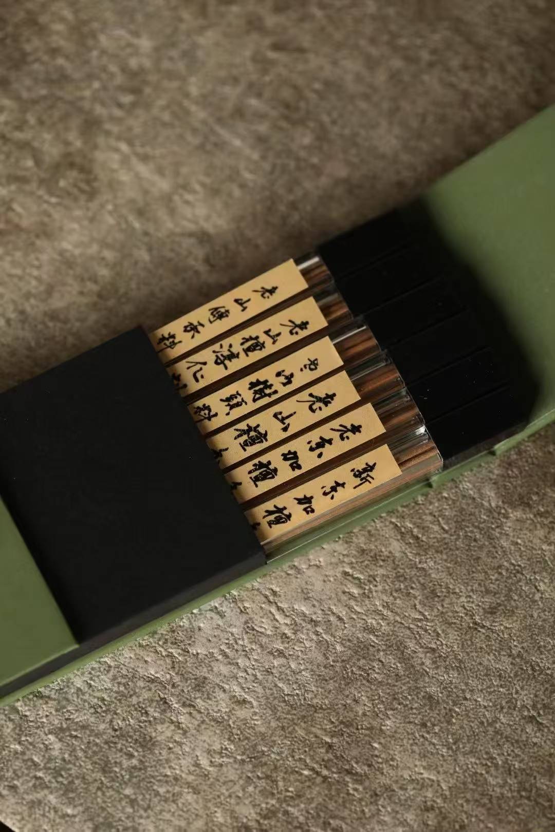 檀香礼盒六管装:老山檀传承料、老山淳化料、老山檀香、老山树头料、老东加檀香、新东加檀香。