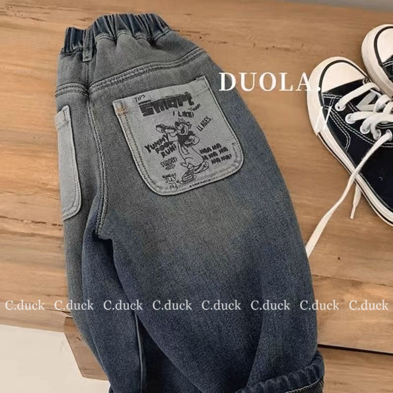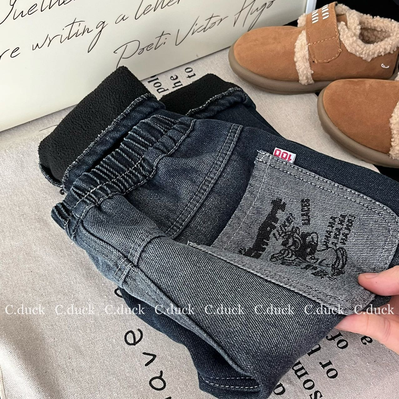 80-140【🐻男童冬日抗寒神裤!刺绣萌化啦!】这条加绒牛仔裤也太会了吧!❤️内里加绒保暖层🔥 保暖力直接拉满! ✅ 后口袋藏着刺绣细节满分! ✅ 加厚牛仔面料 抗磨耐脏 妈妈省心~ ✅ 搭配羽绒服/棉服都超有型👦 宝宝穿上就是冬日最靓的崽!🚀 快戳下方⬇️马上拥有! #加绒牛仔裤 #男童冬季穿搭 #闭眼入单品