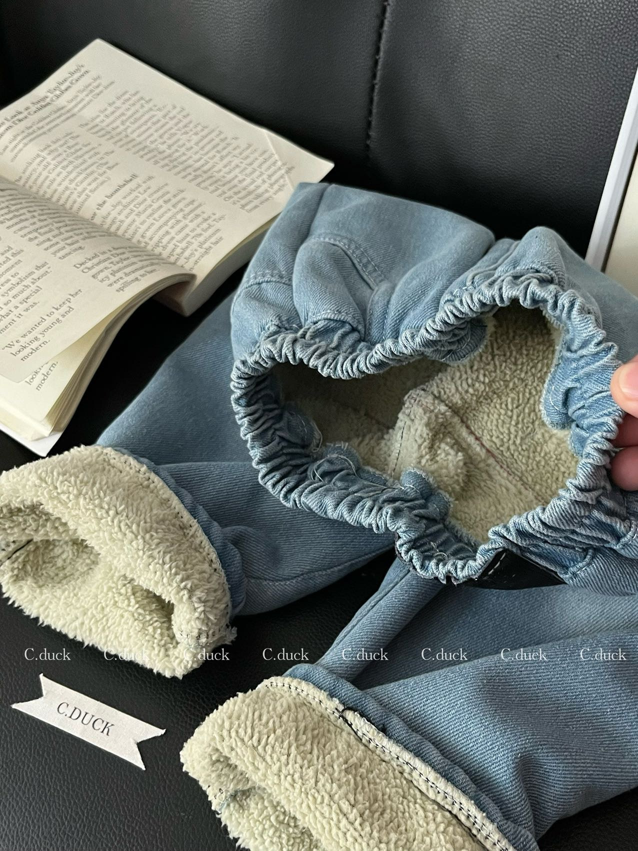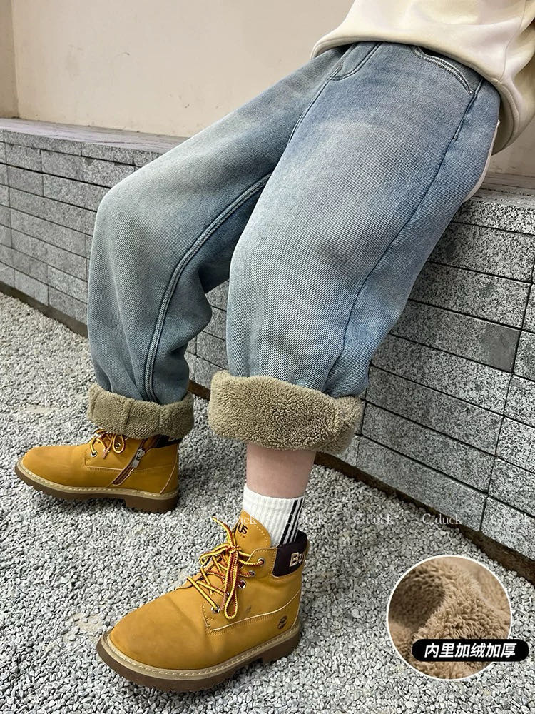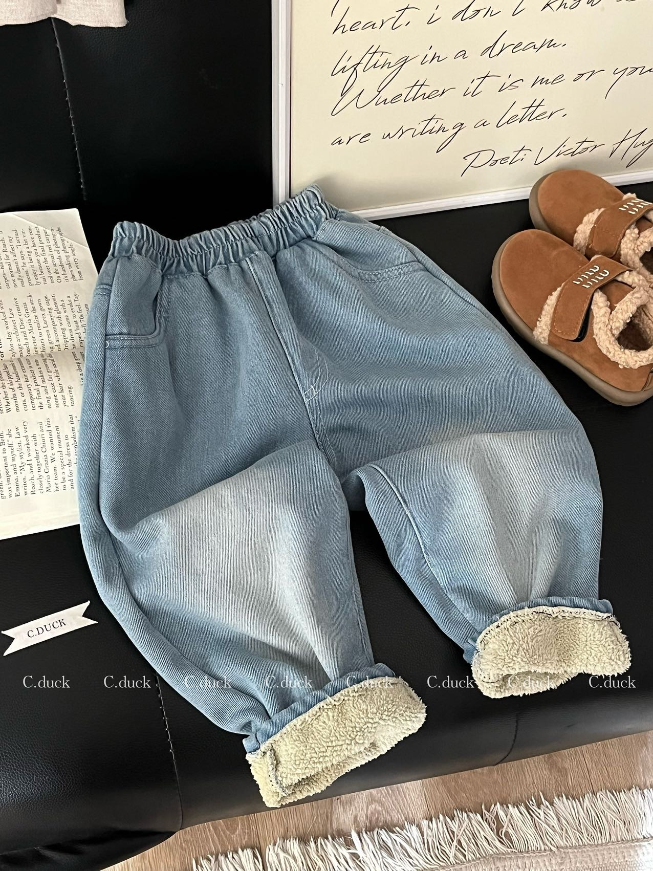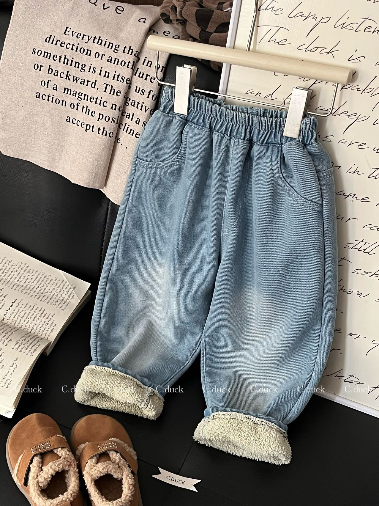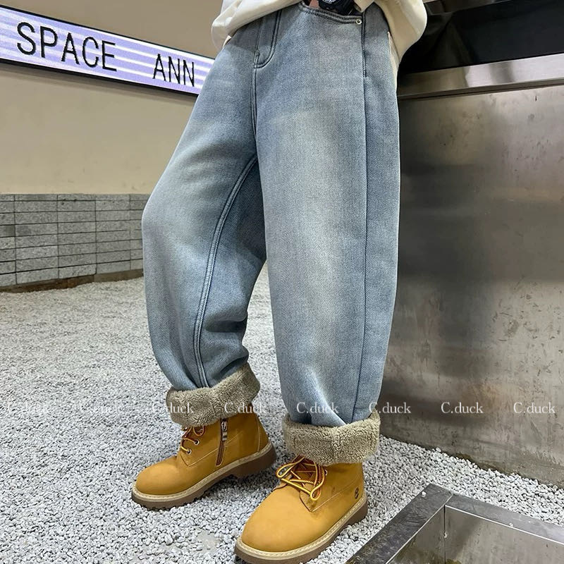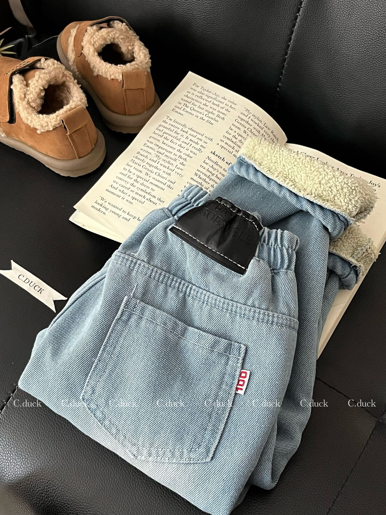 【🔥冬季必囤·软fufu羊羔绒牛仔裤】90-140尺码💥超高颜值又暖到犯规!❄️ 宝妈必看!这款儿童加绒牛仔裤真的绝了✨ 内里一体加厚羊羔绒,像裹着云朵般柔软☁️ 宝宝穿上就不肯脱! 👉加厚锁温不臃肿,上身暖呼呼💨 👉微宽松版型超能藏肉,跑跳无束缚 👉后腰字母黑标设计,潮宝出街必备 🎯幼儿园穿搭TOP1!从初冬穿到深冬超省心~ 💥限时团价超惊喜!给娃抢一条“会呼吸的保暖裤”