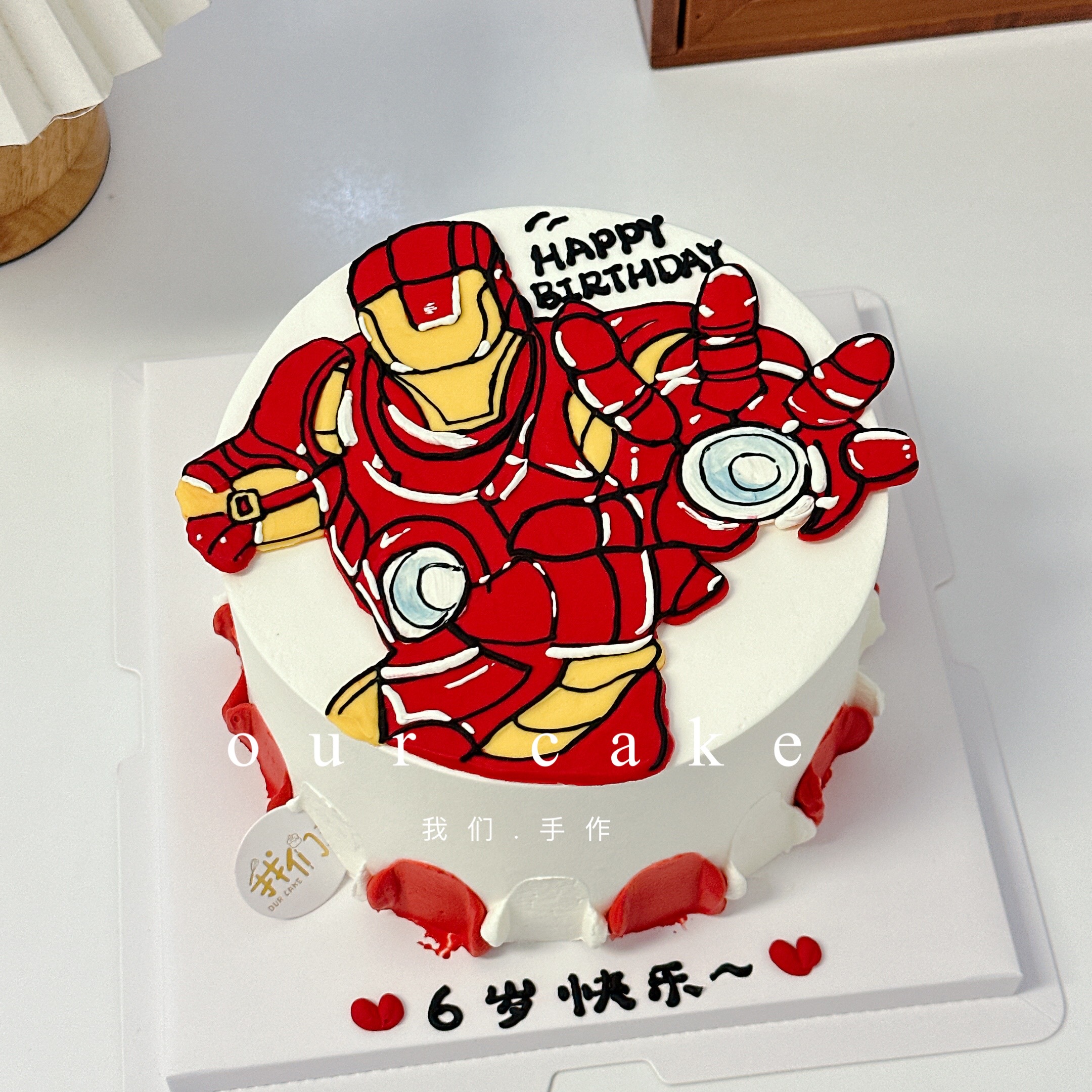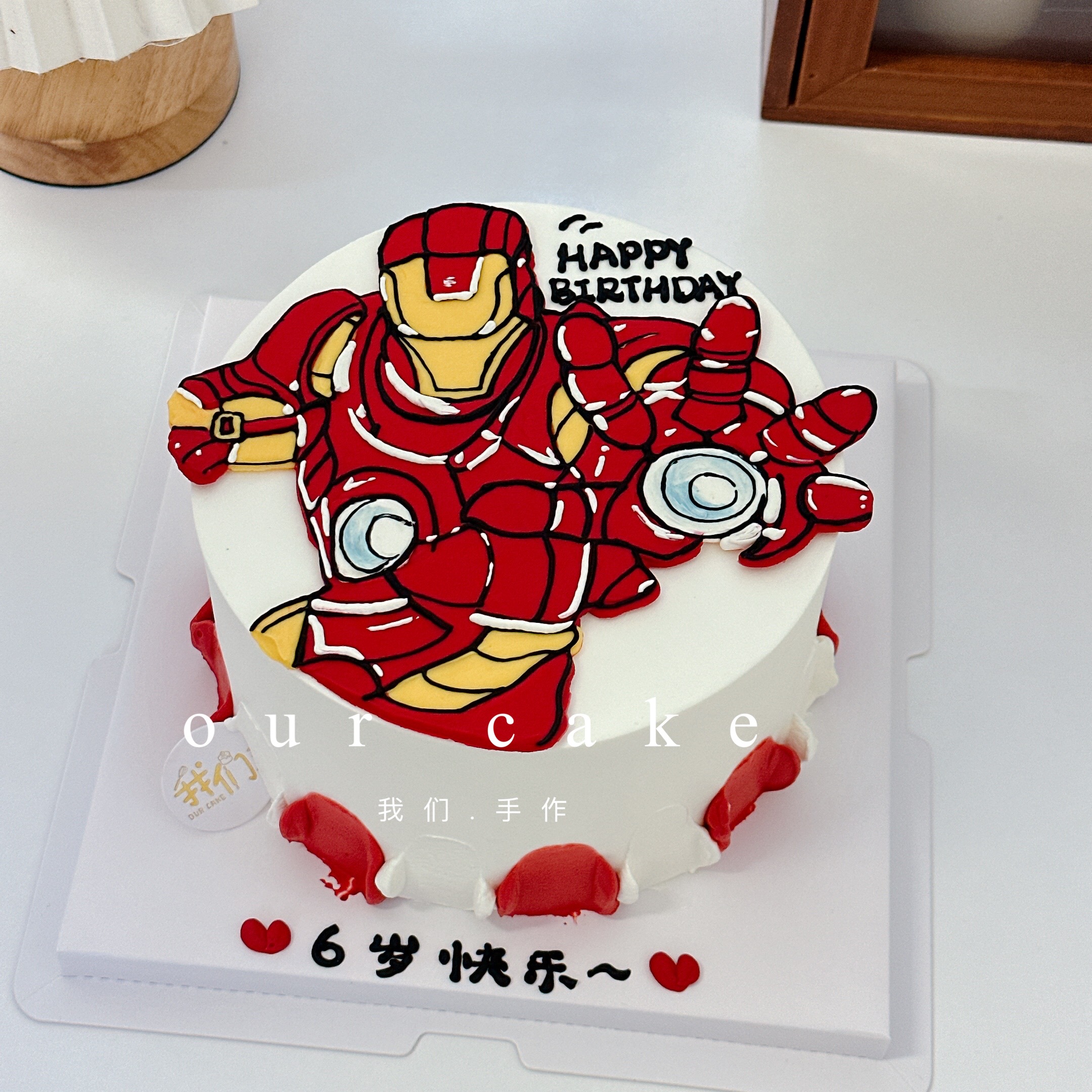 钢铁侠男生男孩卡通手绘蛋糕-低糖处理无添加