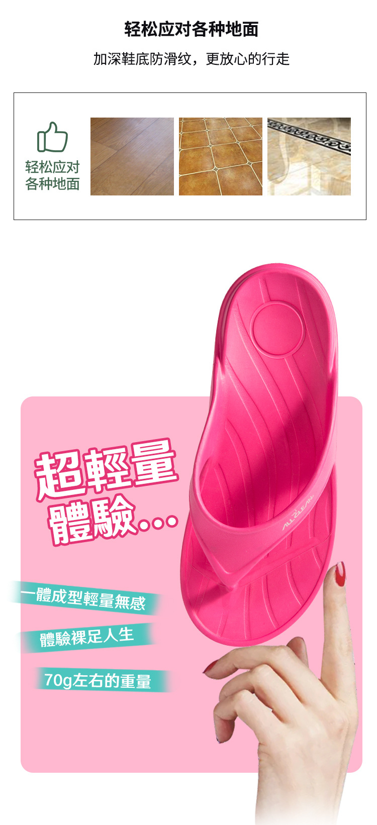 【多样屋专柜】台湾户外舒适夹脚拖玫红色