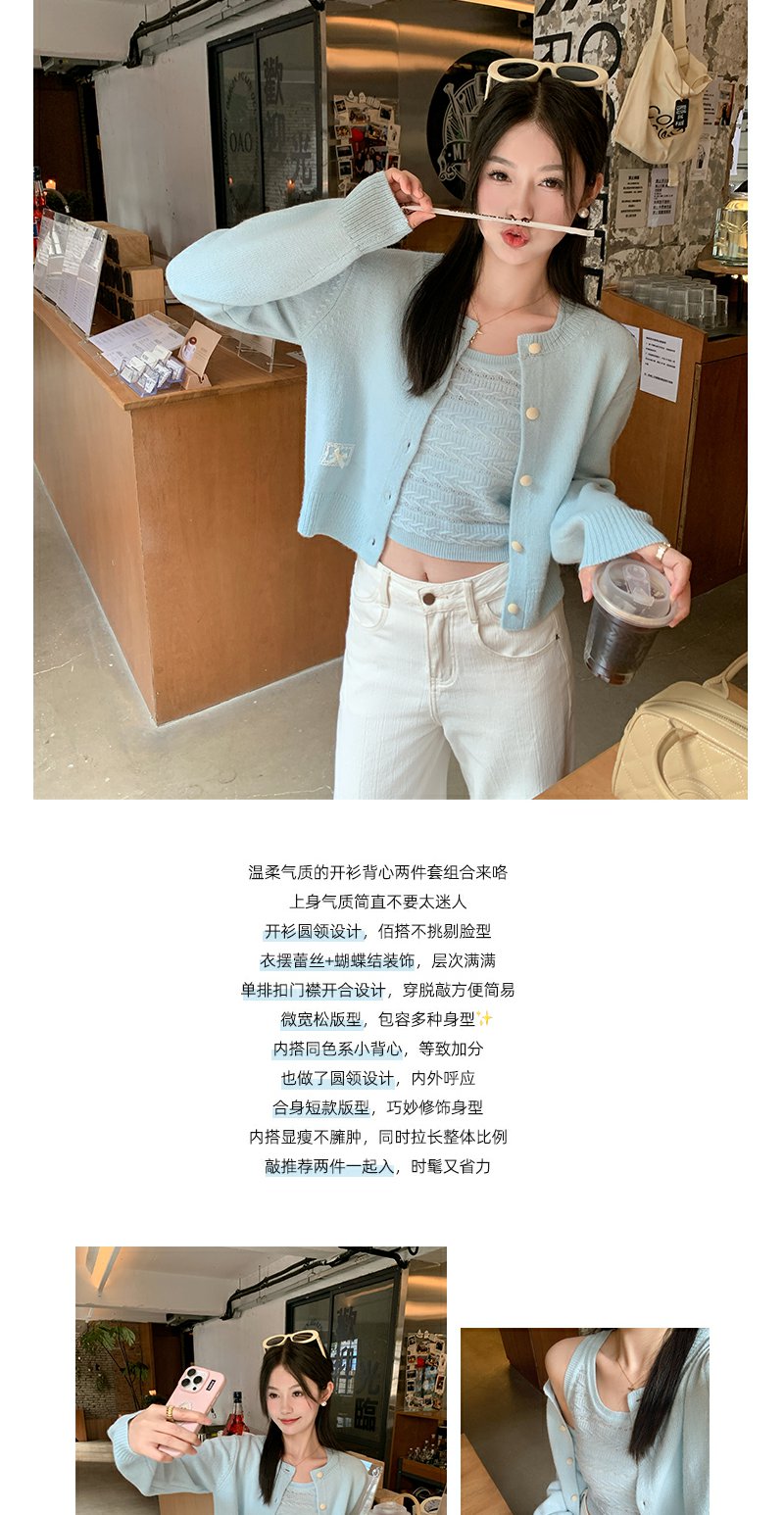 <曾小咸推荐>【4/15-4/17一件88折拍2件8折】蕾丝V领背心休闲裤两件套【预售7-15天发货】