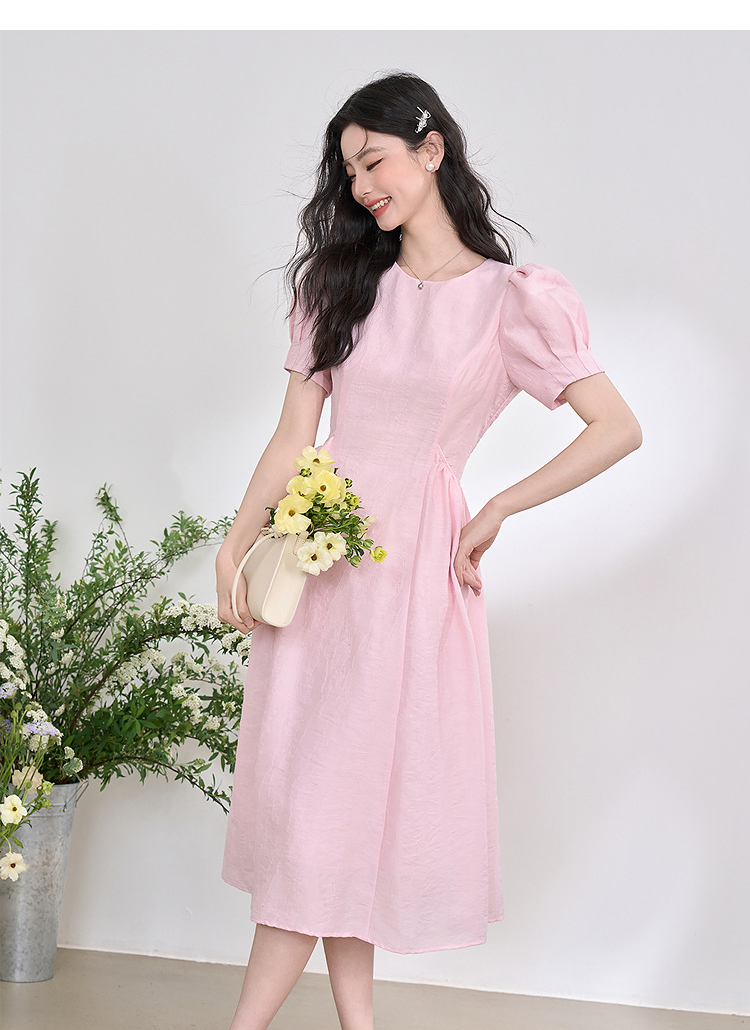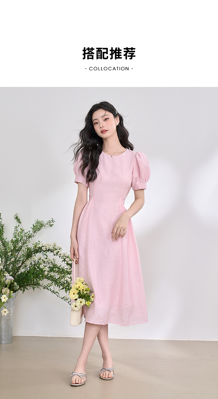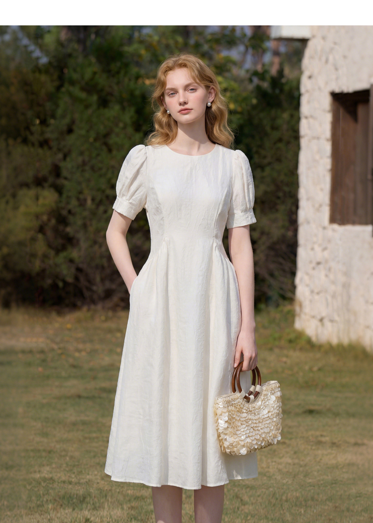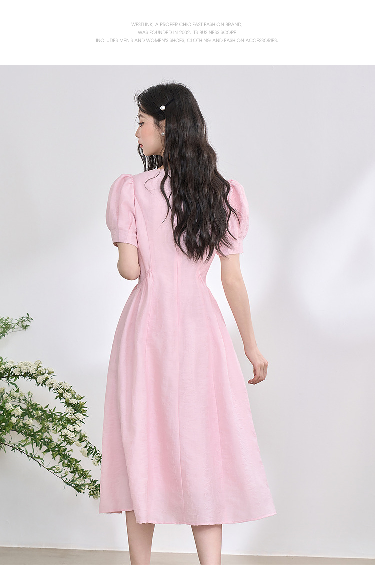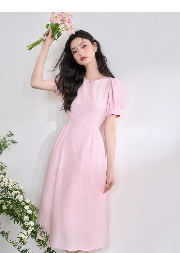 法式浪漫气质肌理感泡泡袖连衣裙女夏季宫廷风收腰长裙V0050567