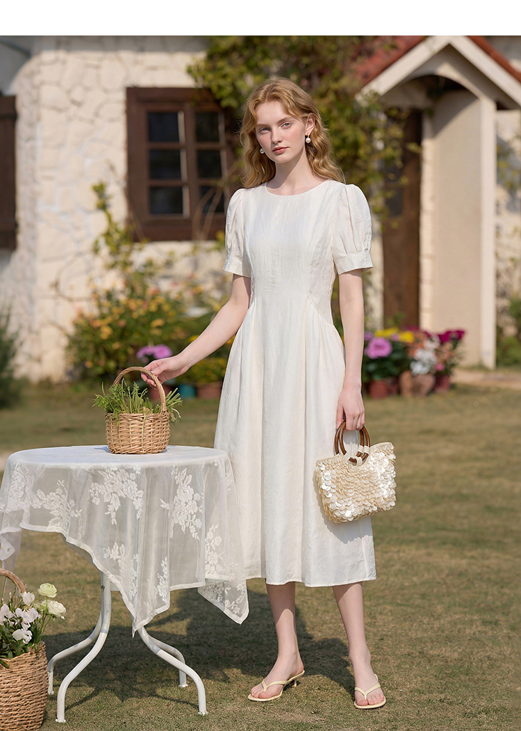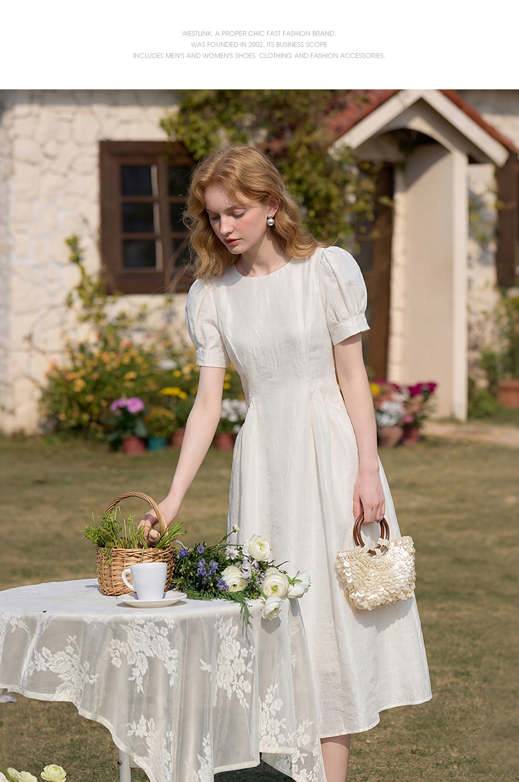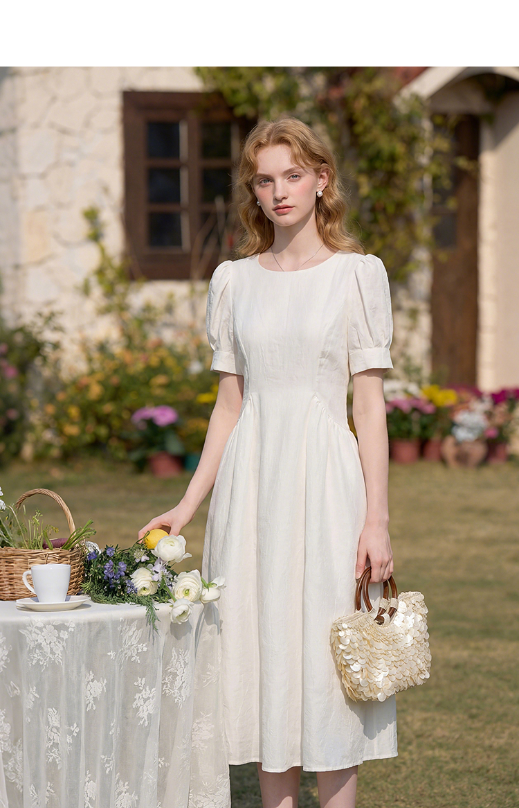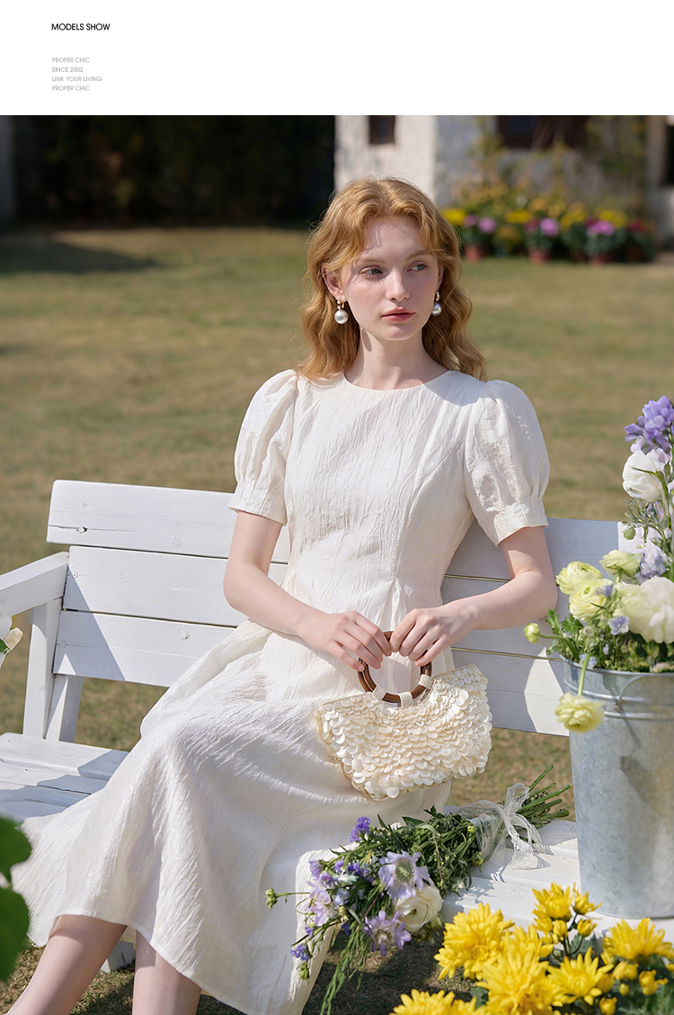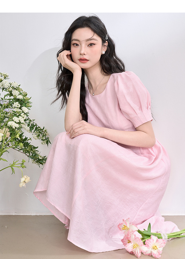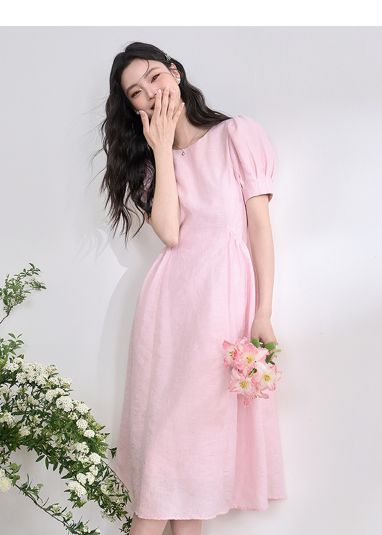 法式浪漫气质肌理感泡泡袖连衣裙女夏季宫廷风收腰长裙V0050567