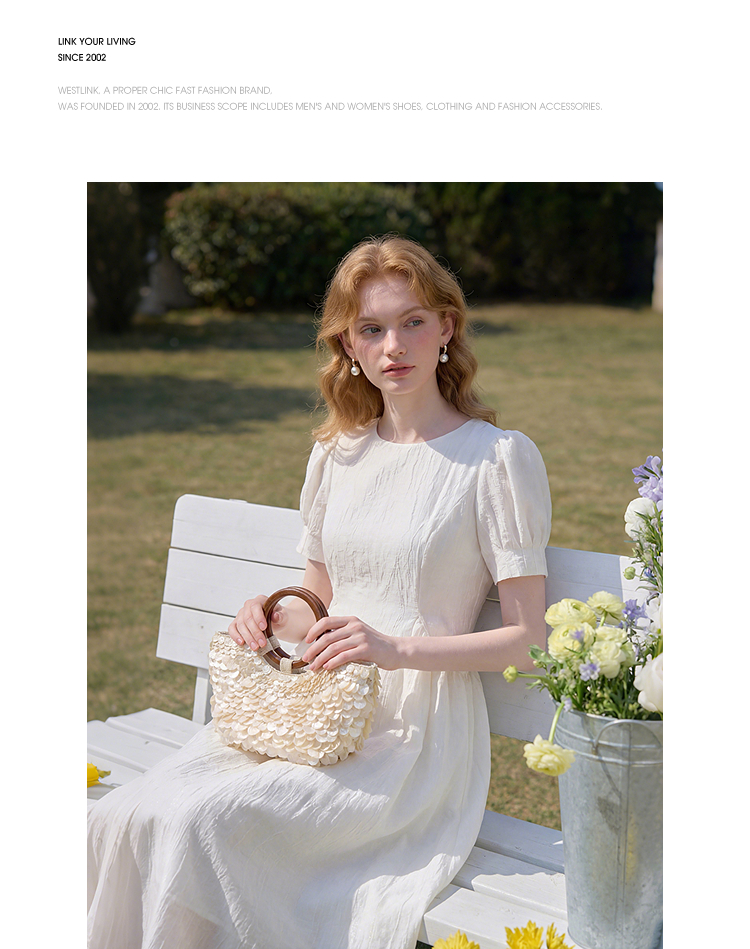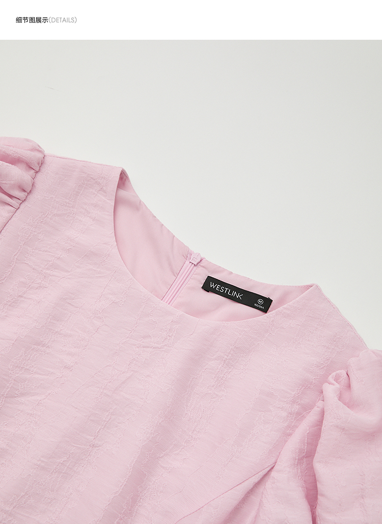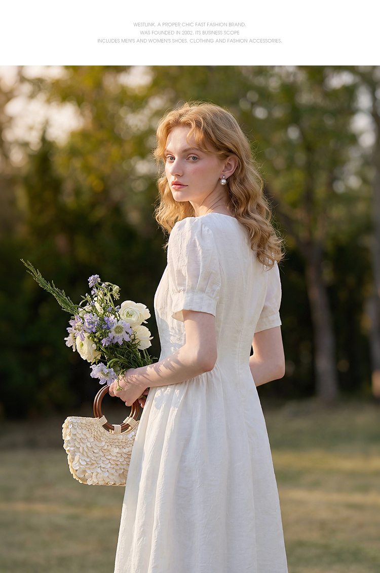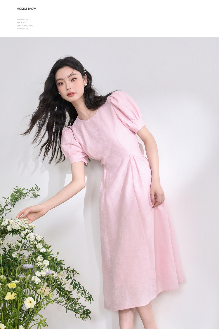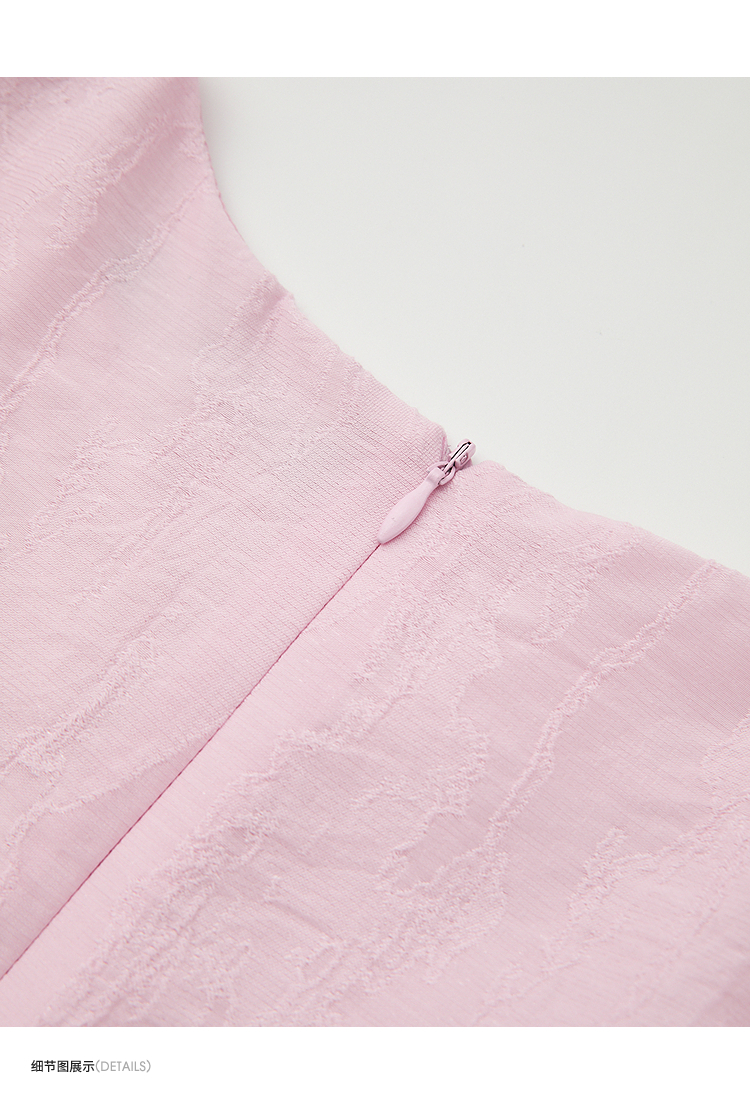 法式浪漫气质肌理感泡泡袖连衣裙女夏季宫廷风收腰长裙V0050567