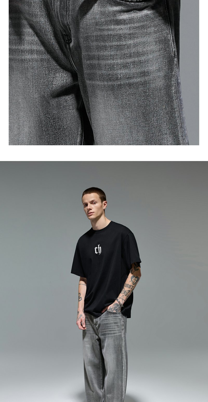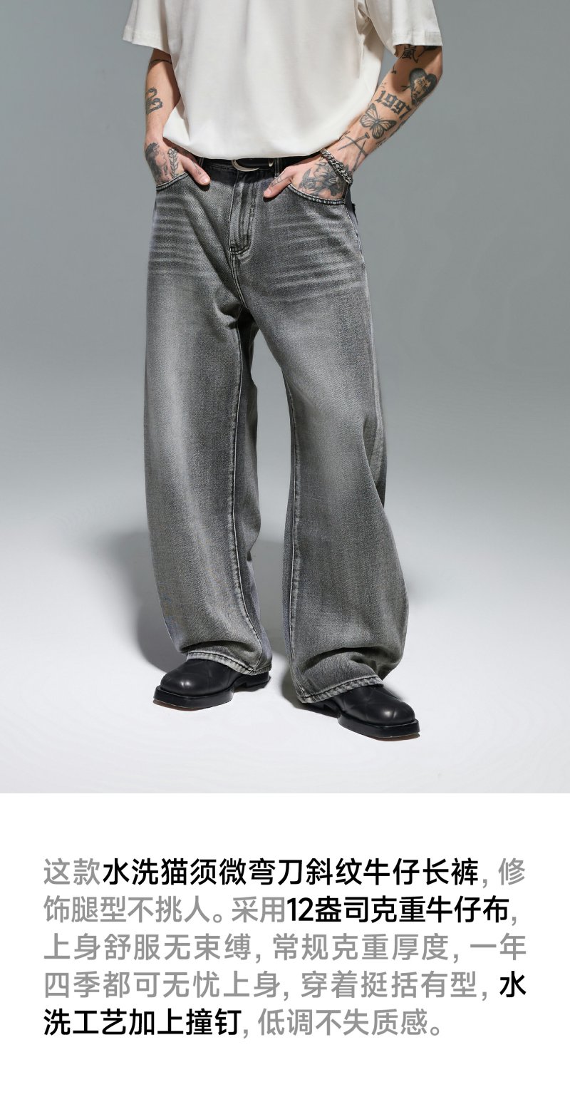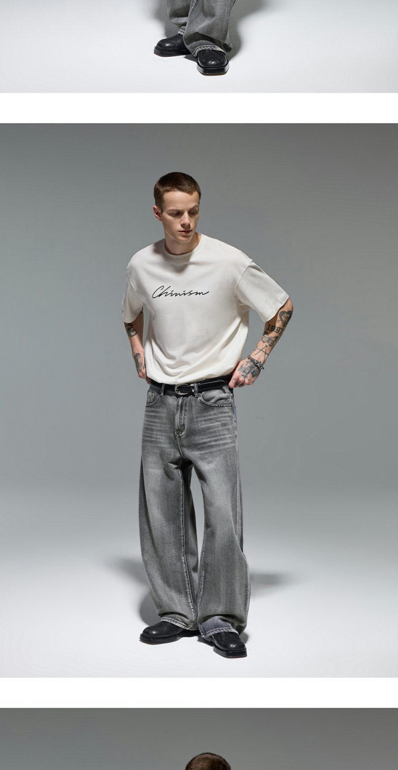 CHINISM赤尘 12盎司微弯刀牛仔裤男2025夏季水洗猫须撞钉男士裤子