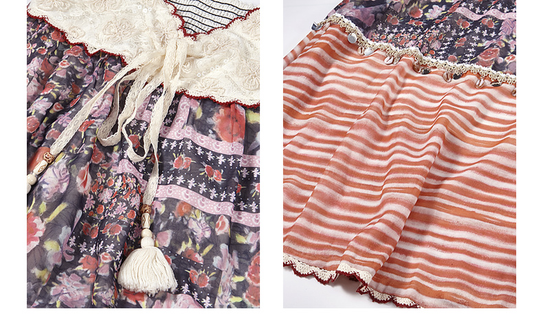 两三事梵高文艺春日序言2025春季新款蕾丝拼接荷叶边领绑带上衣女S25CLS342