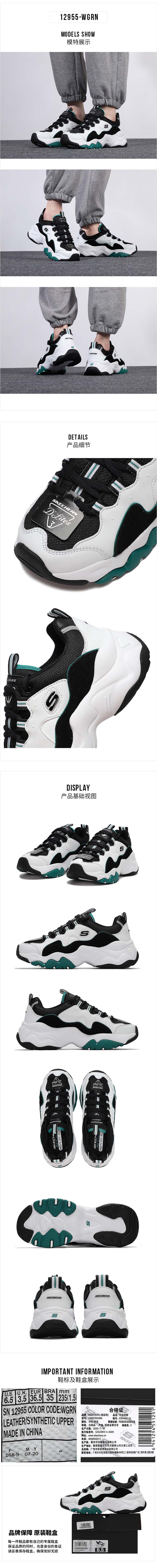 斯凯奇(Skechers)熊猫鞋女 时尚潮流缓震舒适透气低帮运动休闲鞋 12955-WGRN