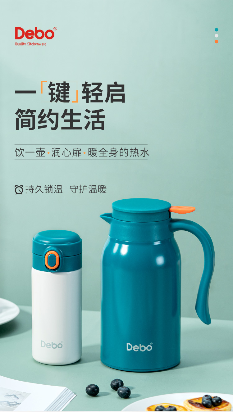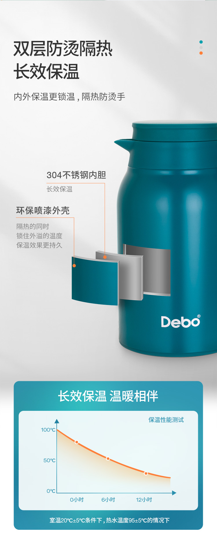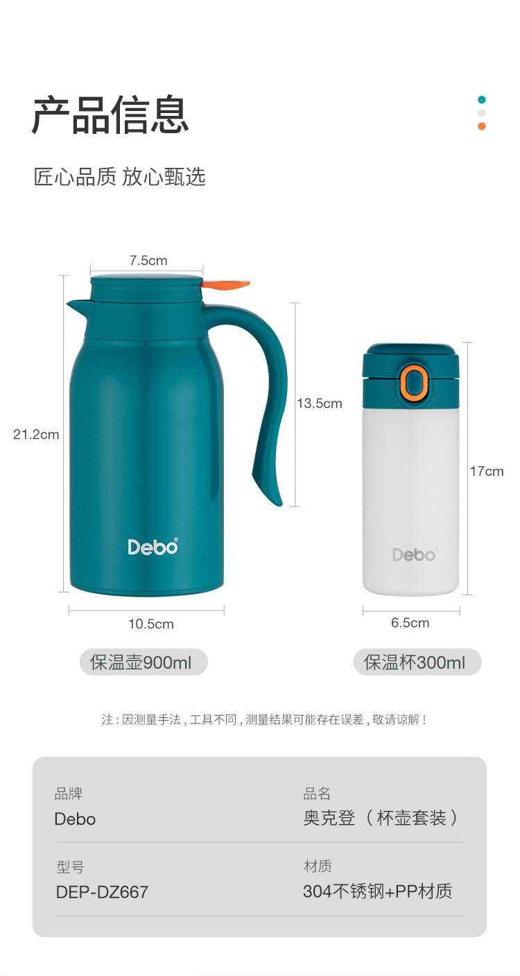 Debo德铂奥克登杯壶套装304不锈钢暖壶保温杯家用壶套装300+900毫升礼盒装