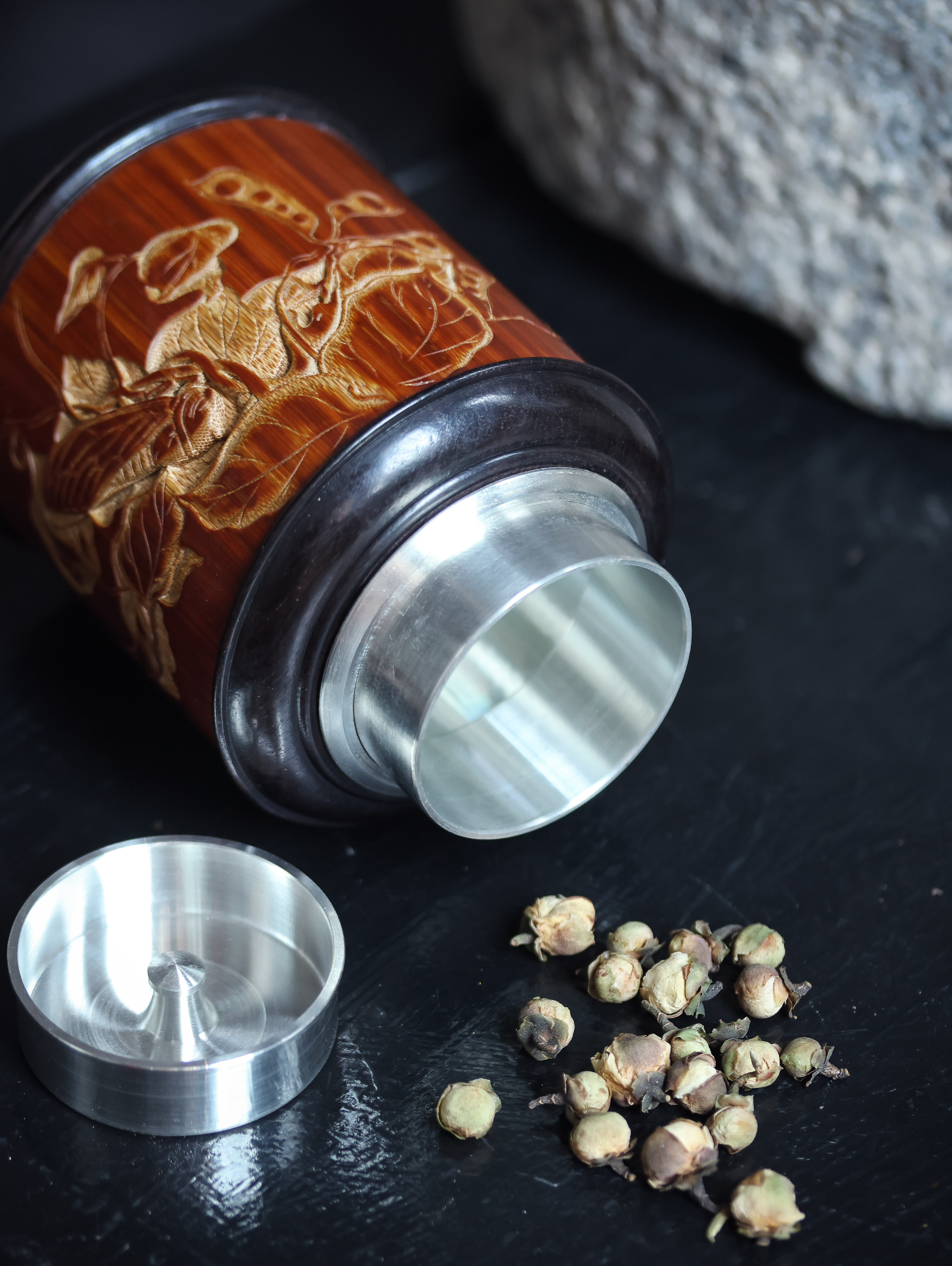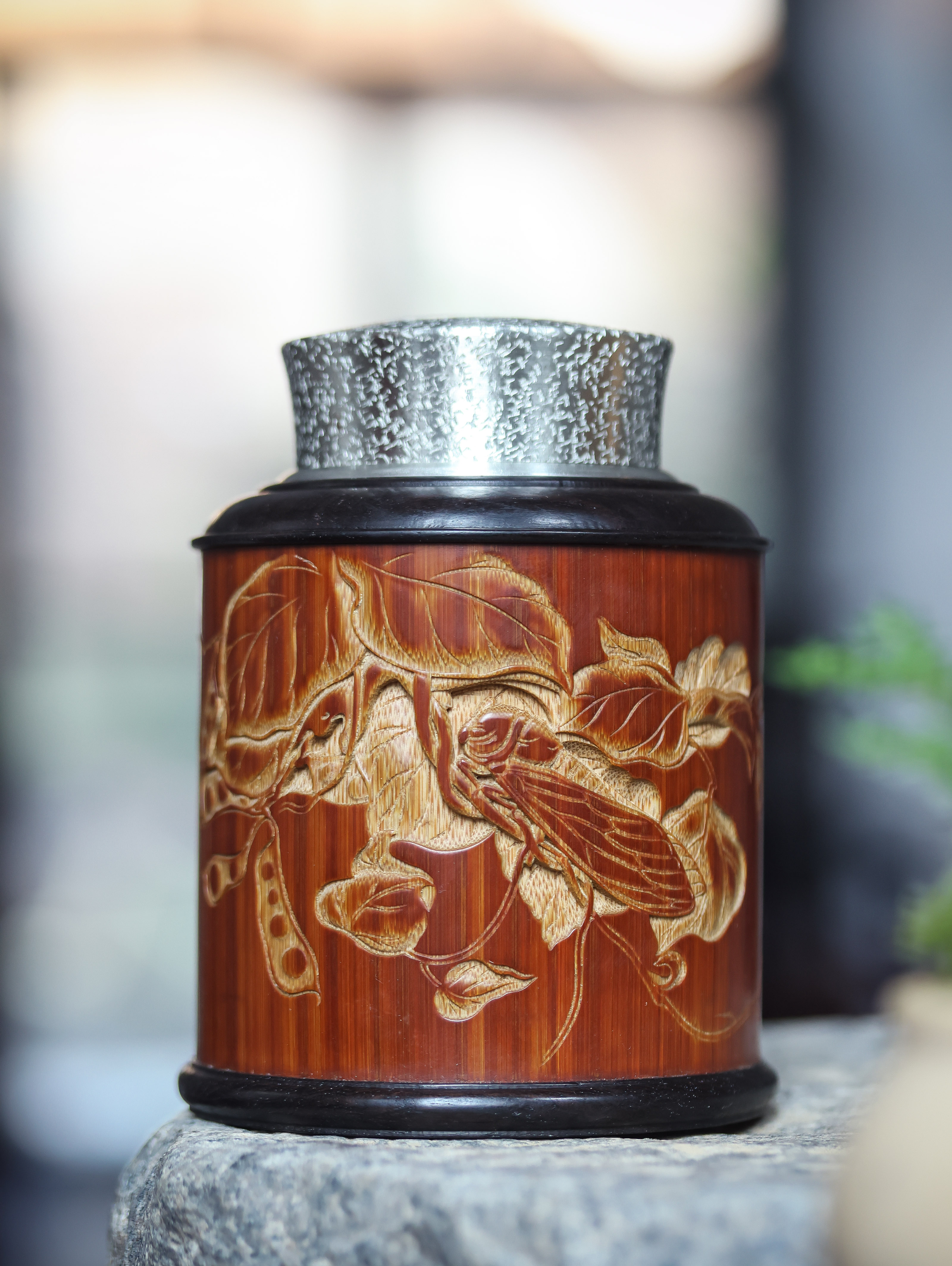 秋园虫趣图(知了豌豆荚)°锡胆茶叶罐