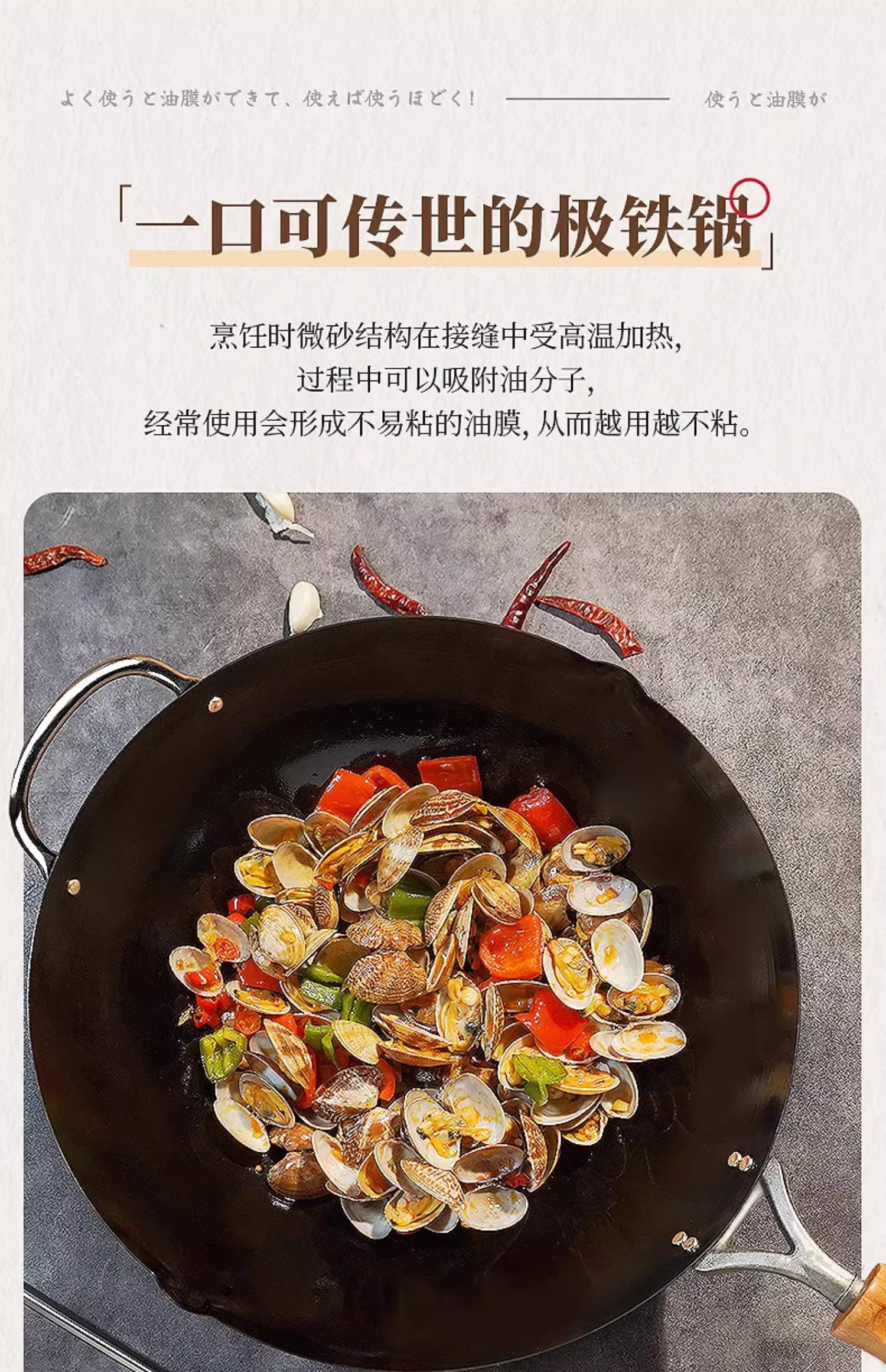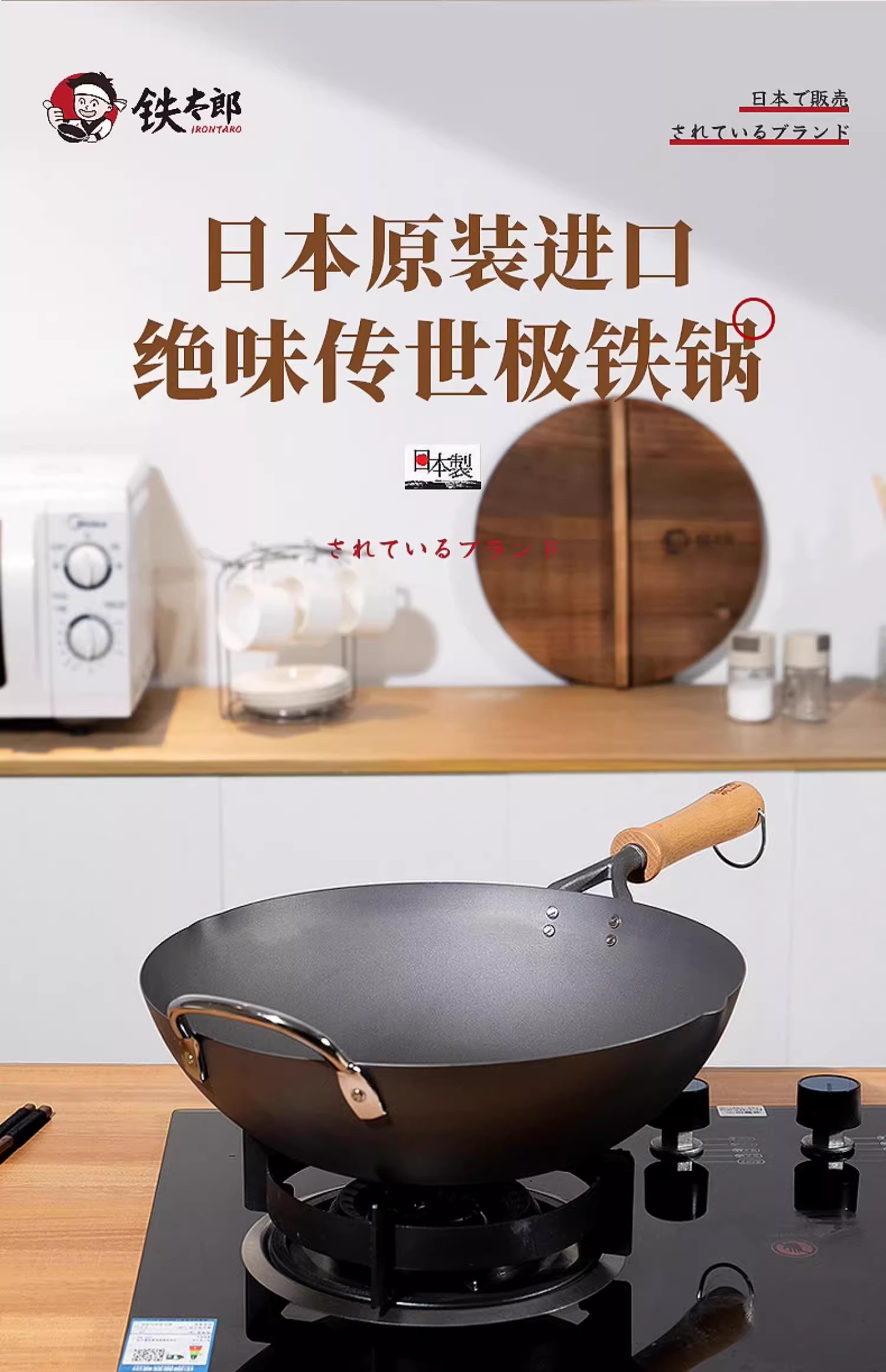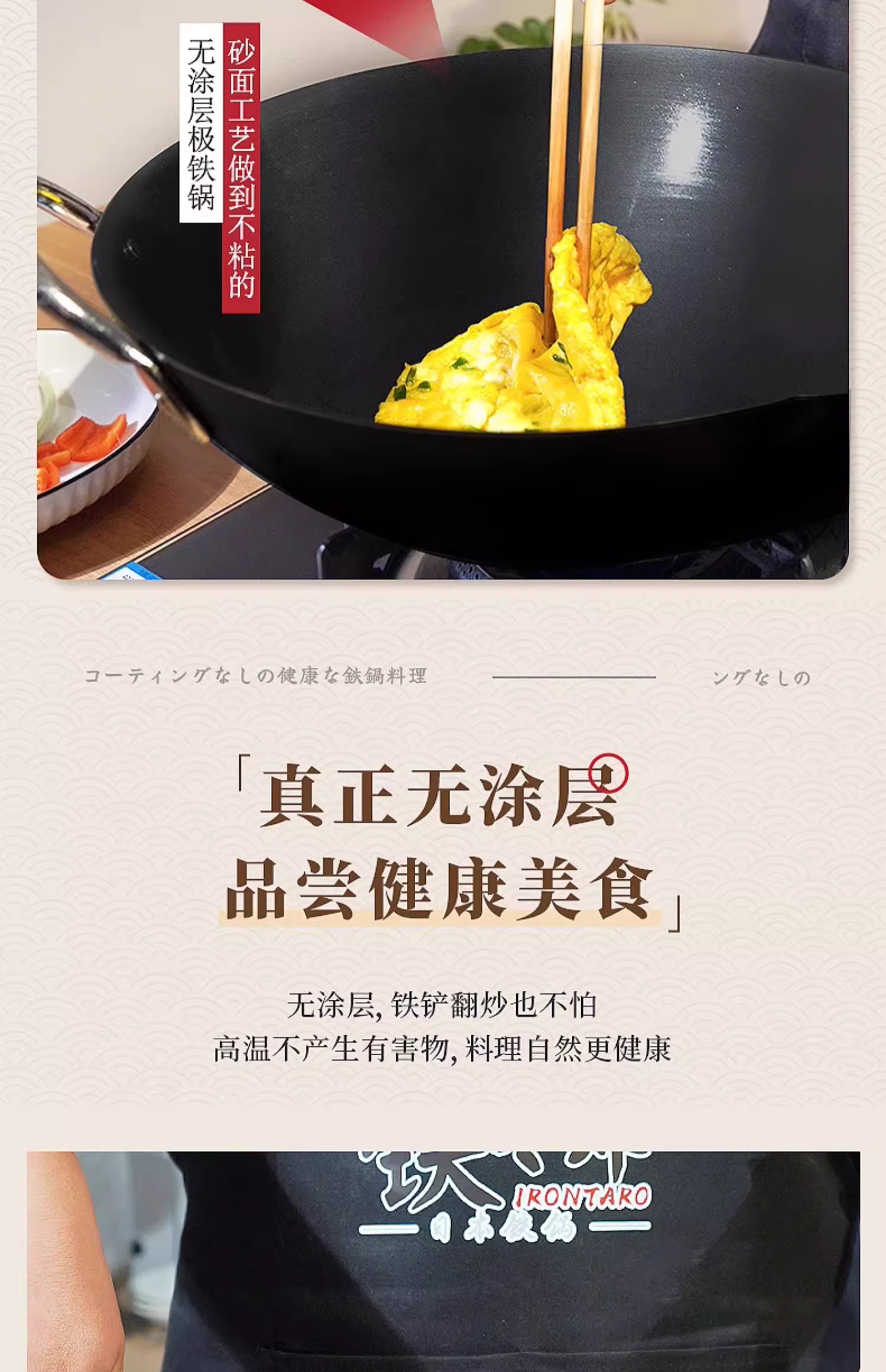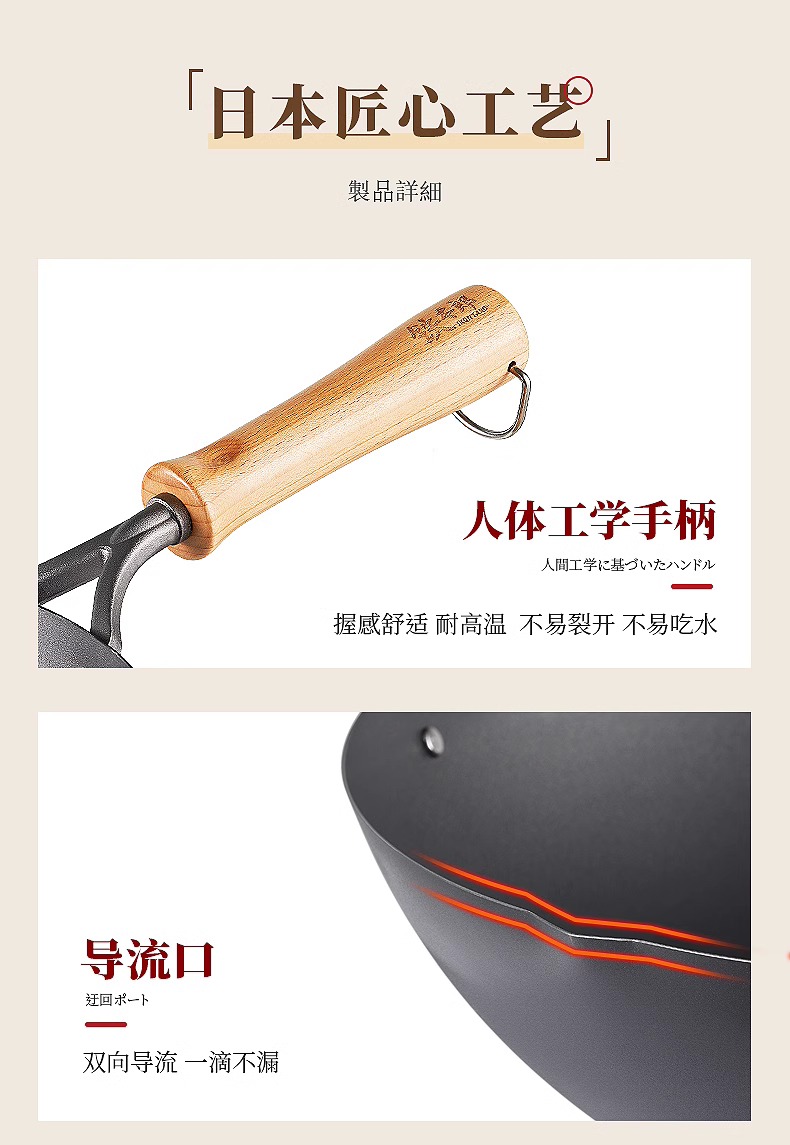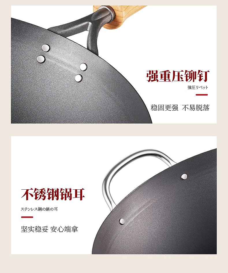 【清仓特惠4.5折,最后2个无货退款】铁太郎日本原装进口极铁锅老式无涂层炒菜锅家用高纯铁炒锅36CM