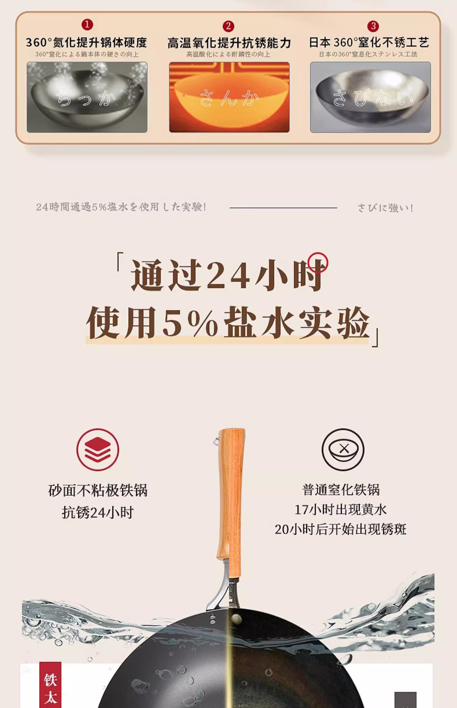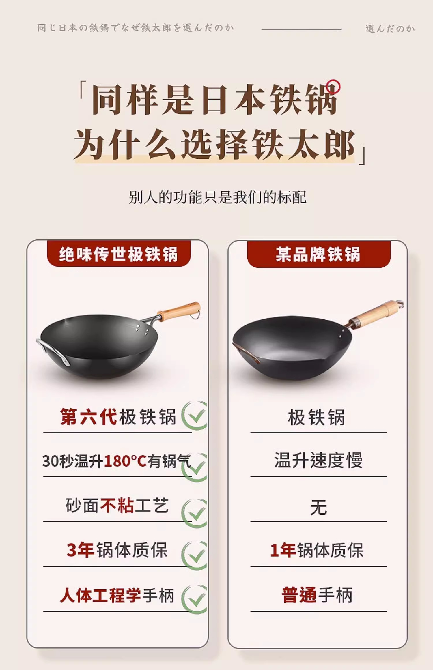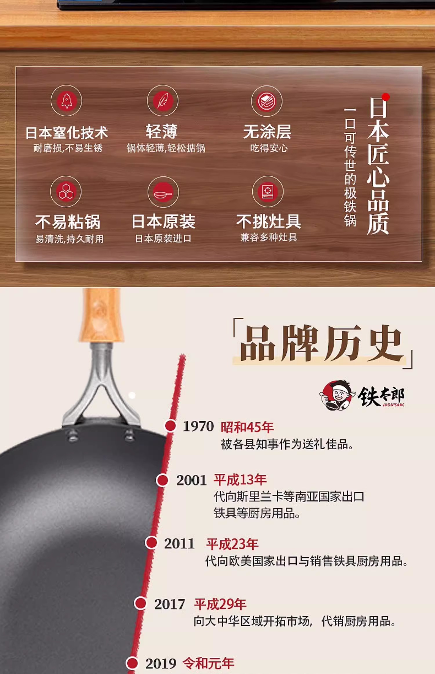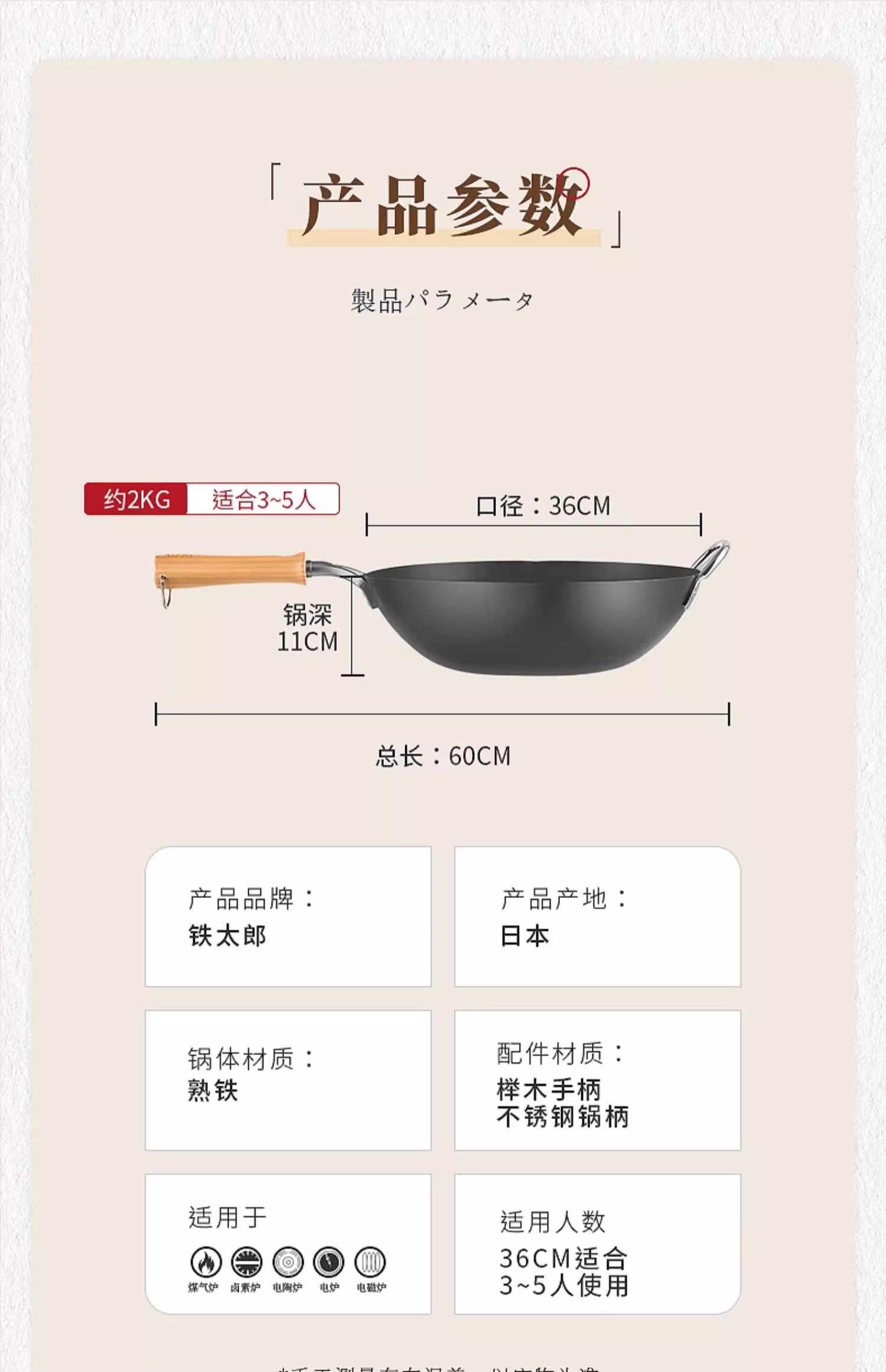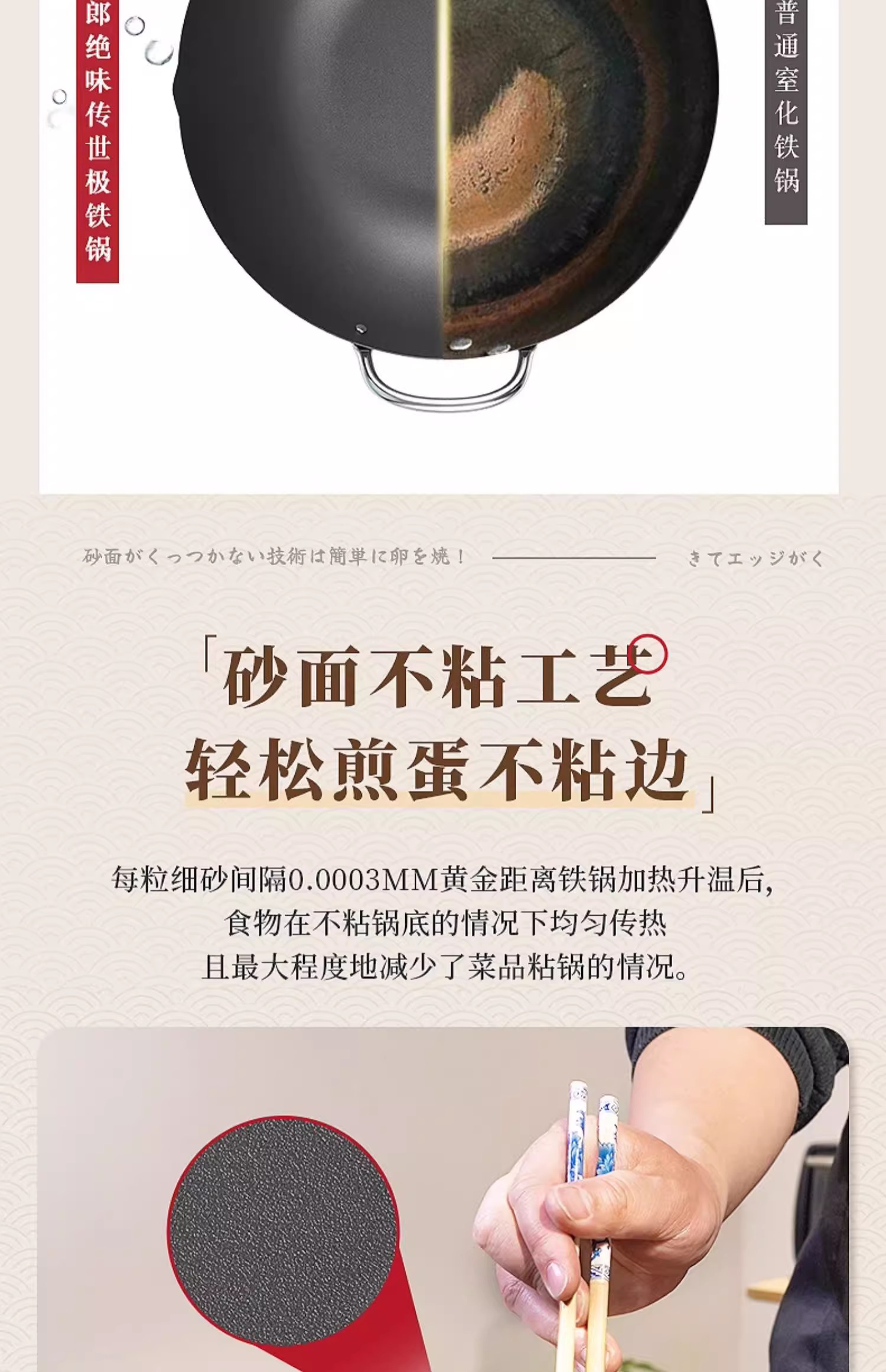 【清仓特惠4.5折,最后2个无货退款】铁太郎日本原装进口极铁锅老式无涂层炒菜锅家用高纯铁炒锅36CM