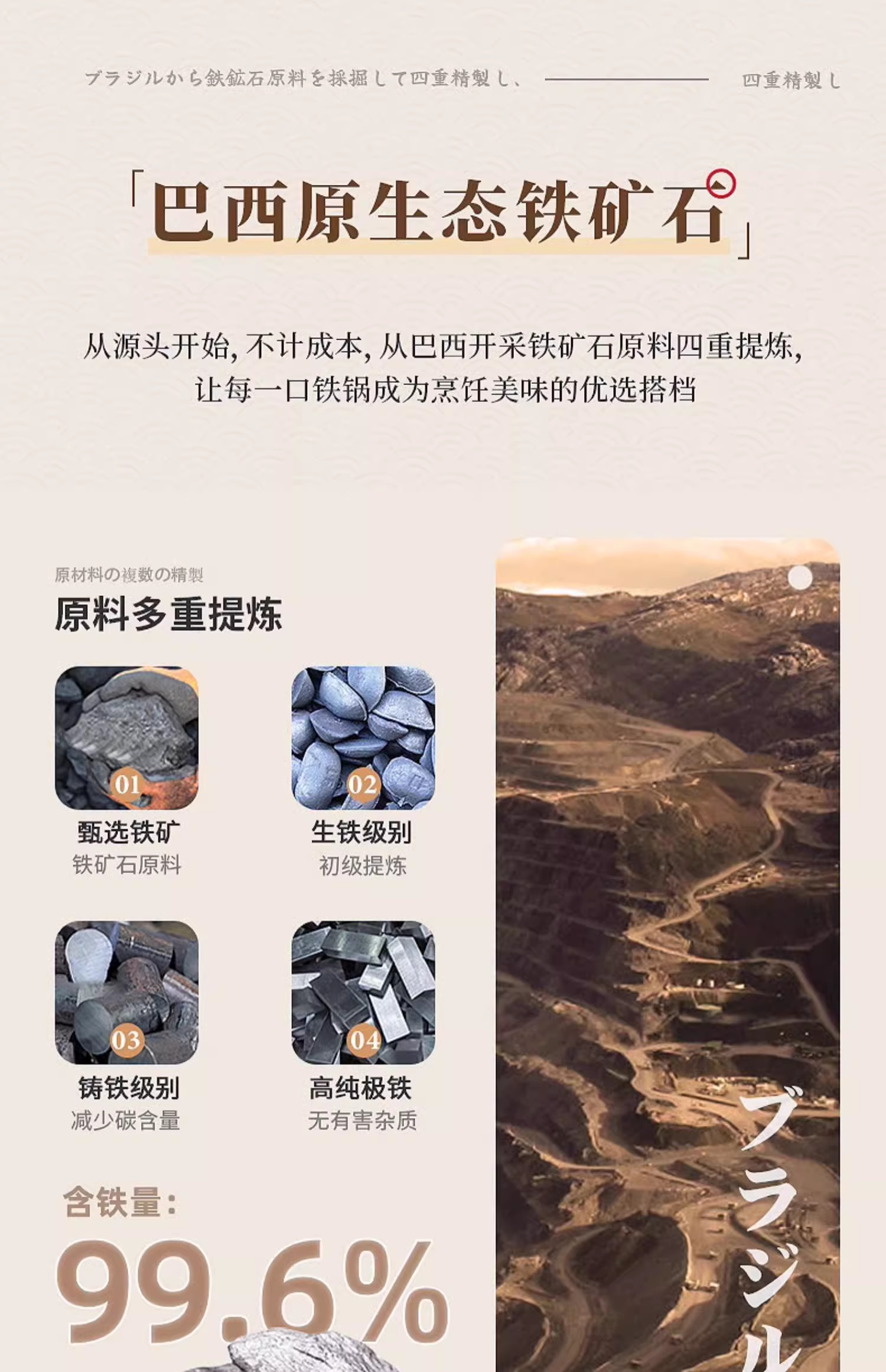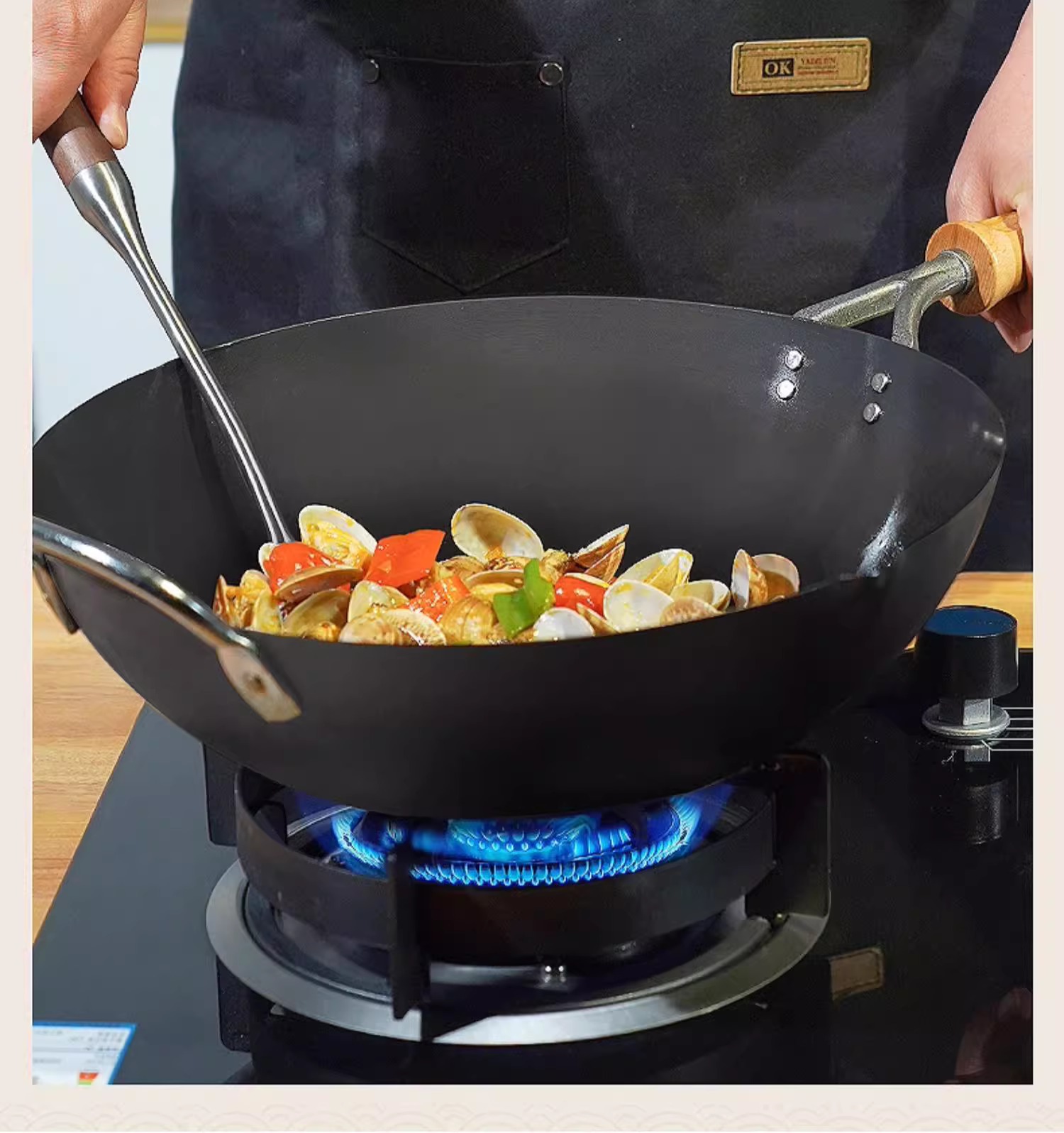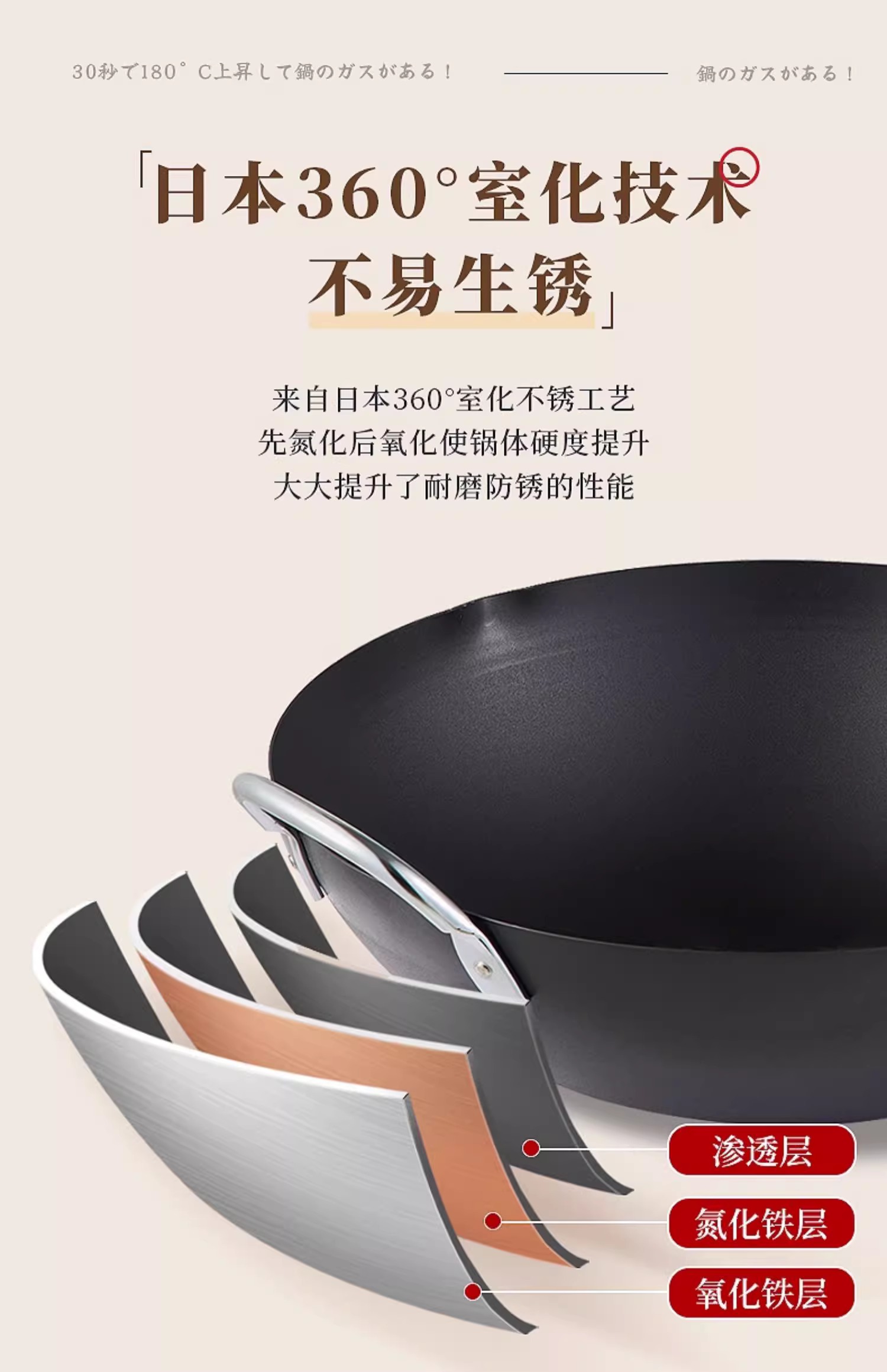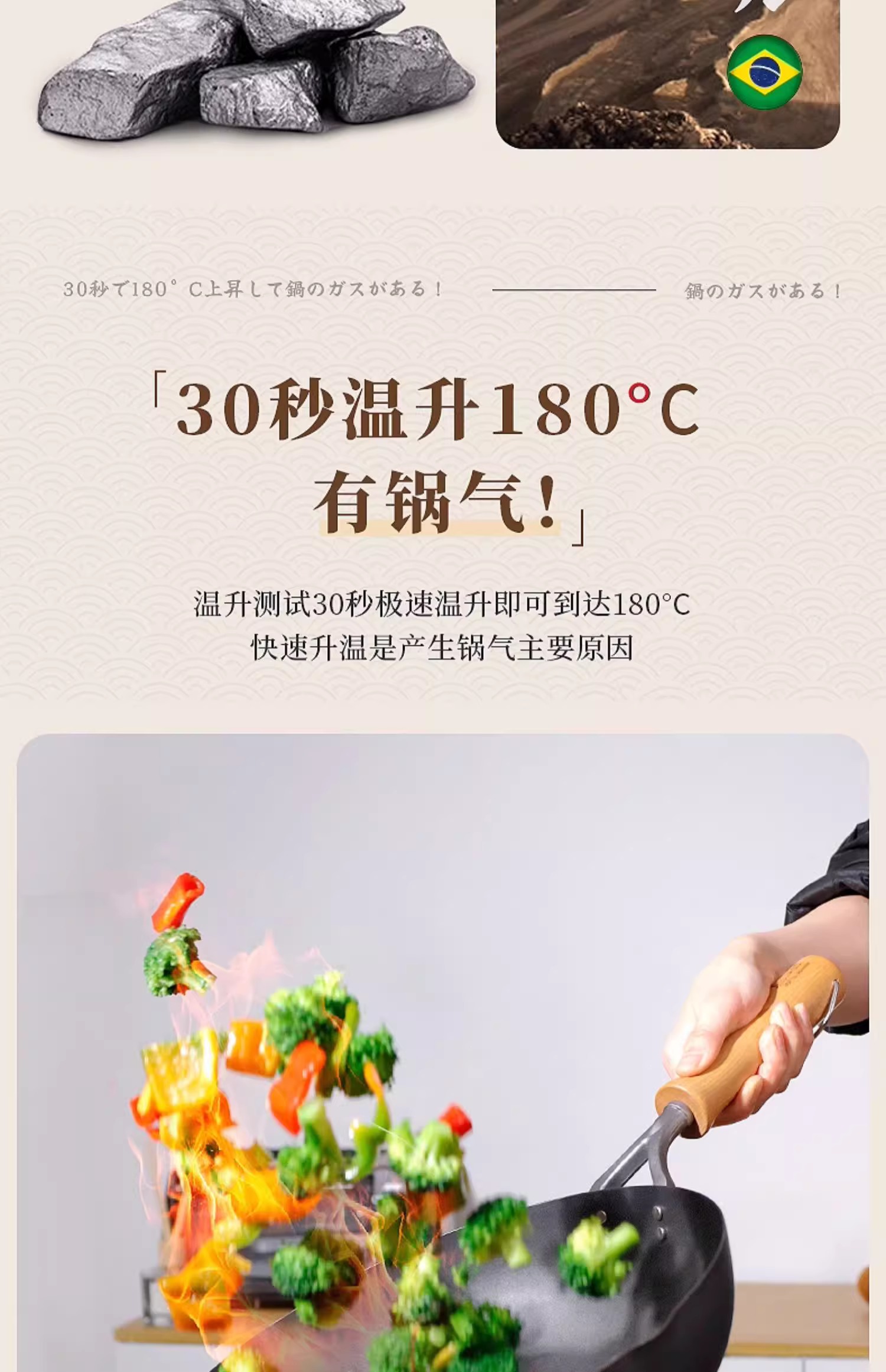 【清仓特惠4.5折,最后2个无货退款】铁太郎日本原装进口极铁锅老式无涂层炒菜锅家用高纯铁炒锅36CM