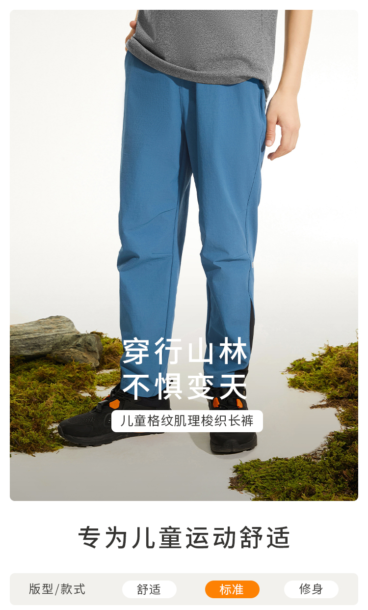 【24年秋新】moodytiger儿童裤子24秋新款男女童透气舒适防风拒水梭织长裤43511302