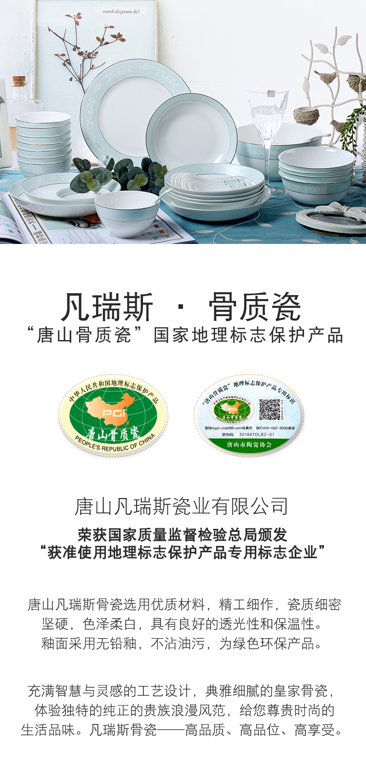 凡瑞斯唐山骨瓷 简约欧式 家用盘碗碟子餐具套装雅典娜8人用32头【不支持补差,非质量问题不退不换】S