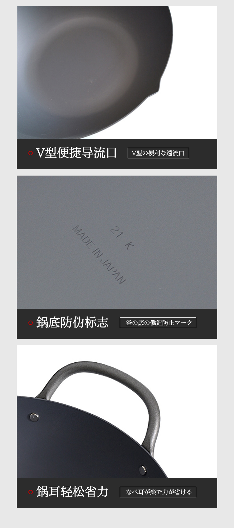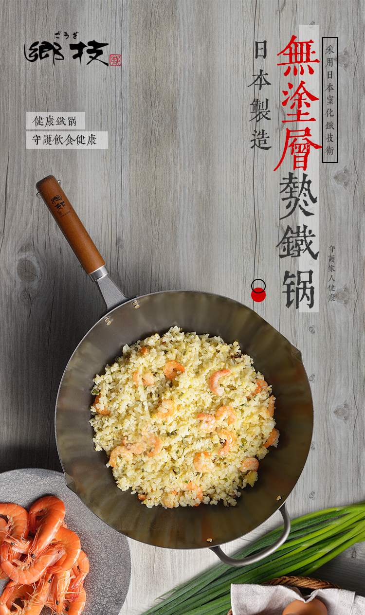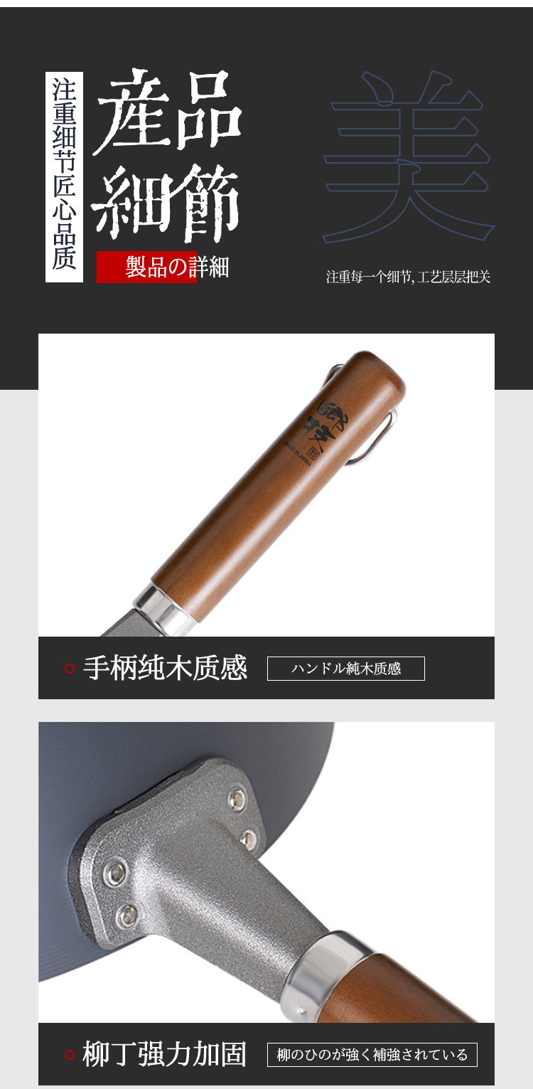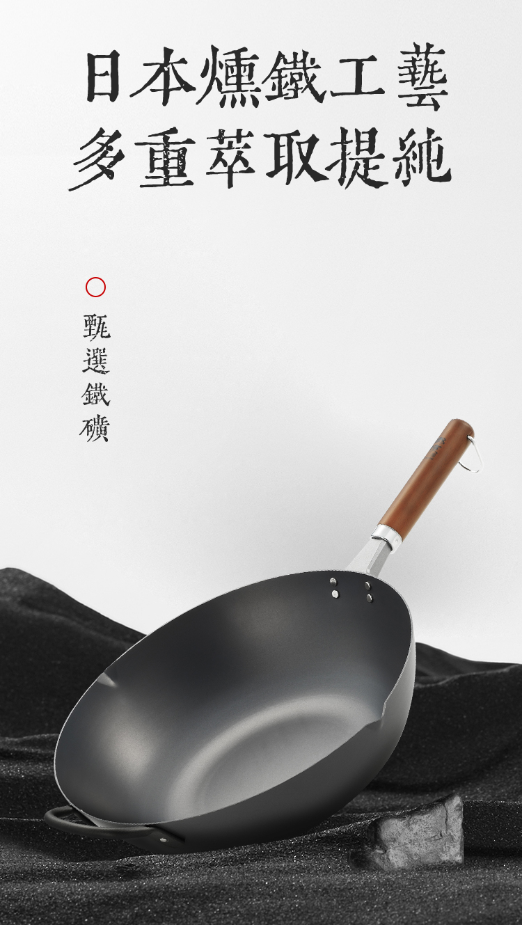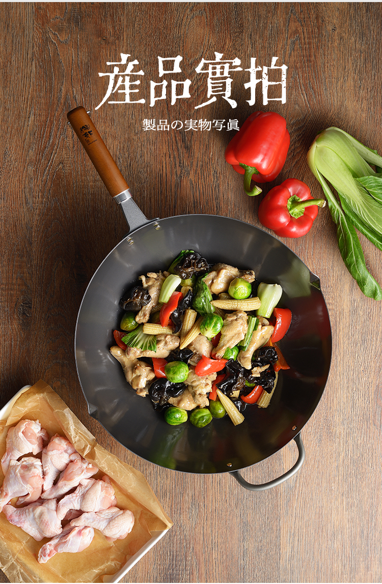 日本原装进口乡技氮化炒锅熟铁无涂层铁锅