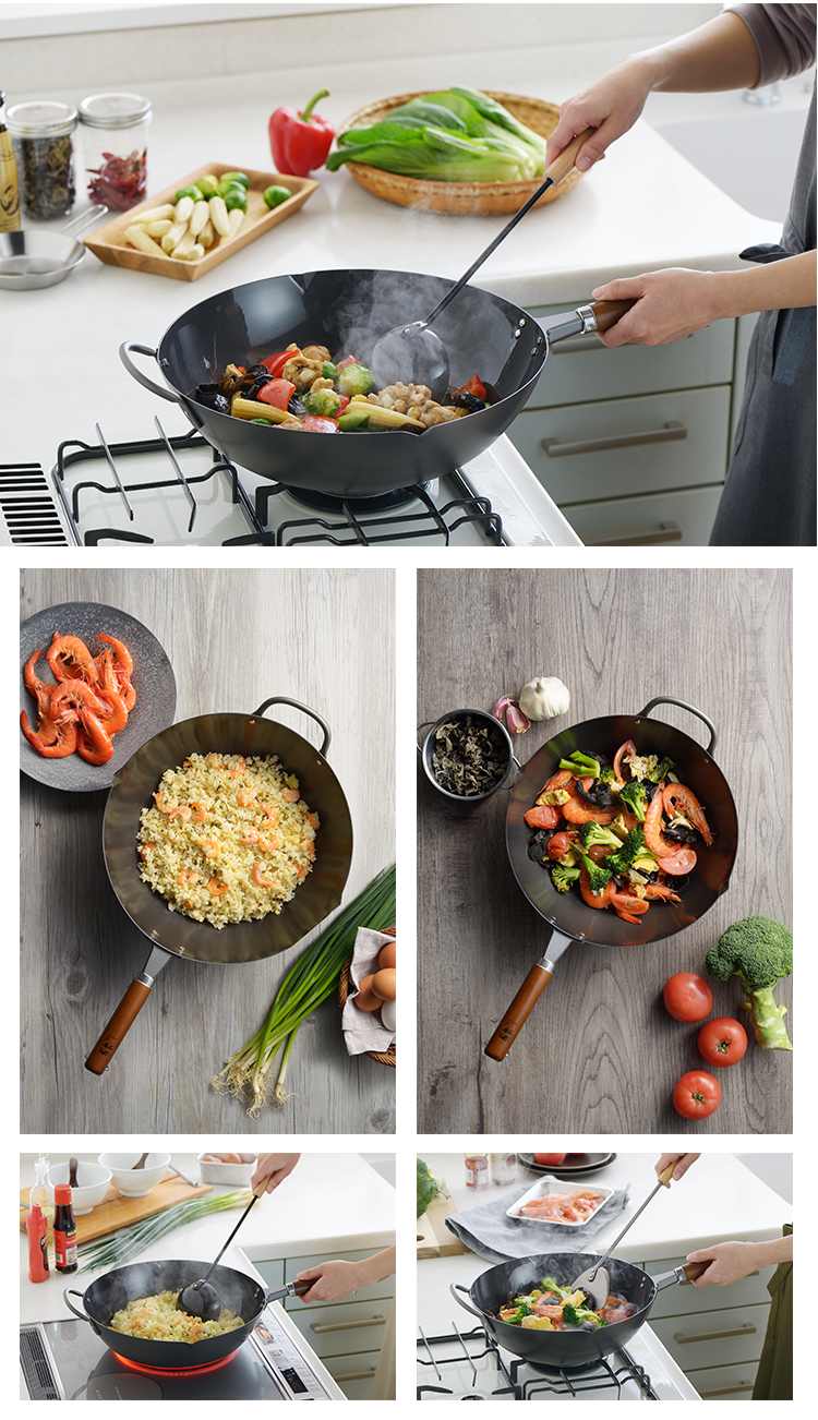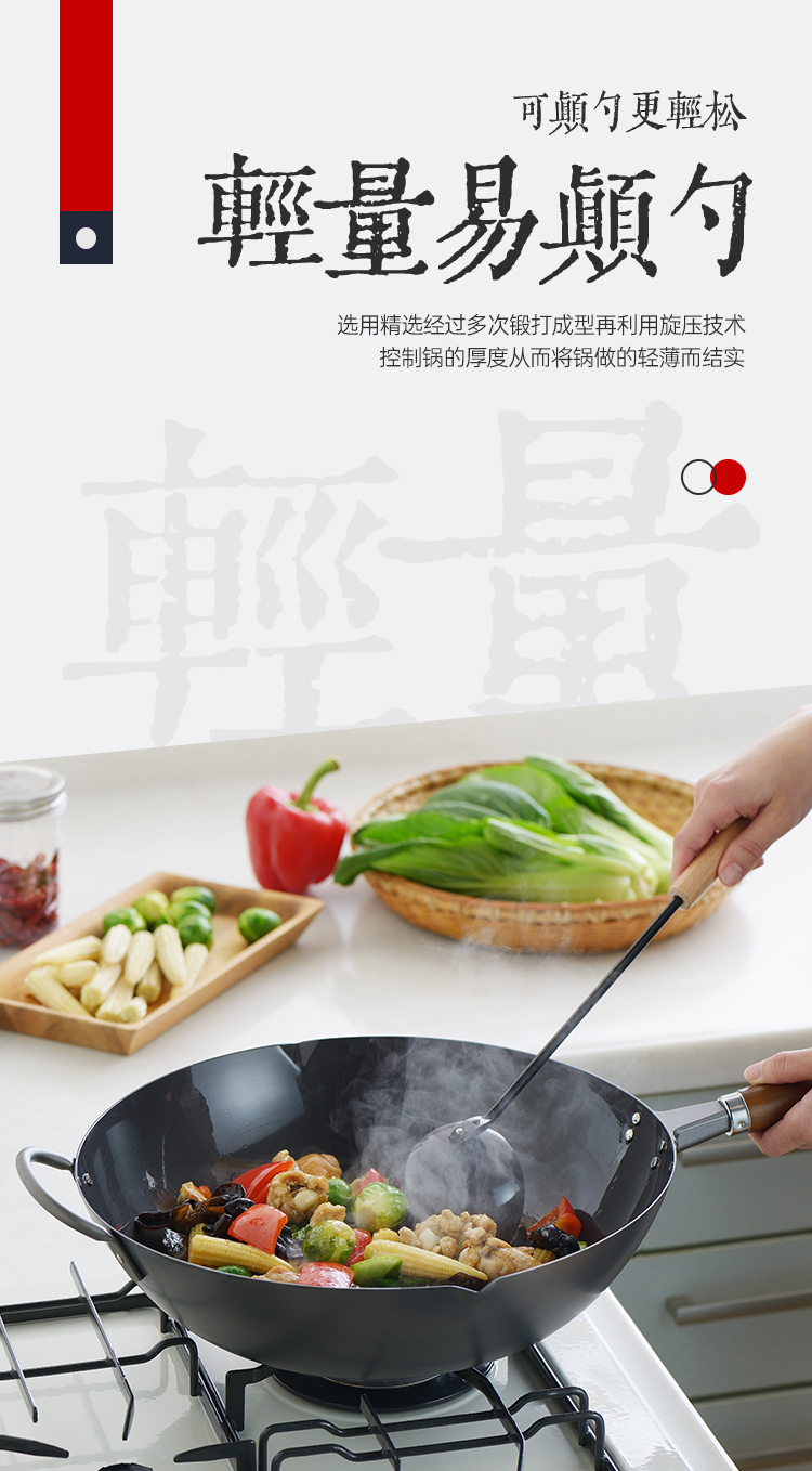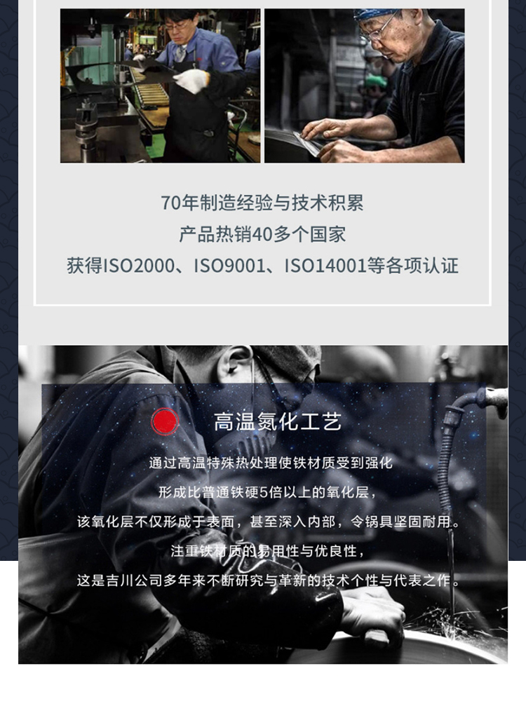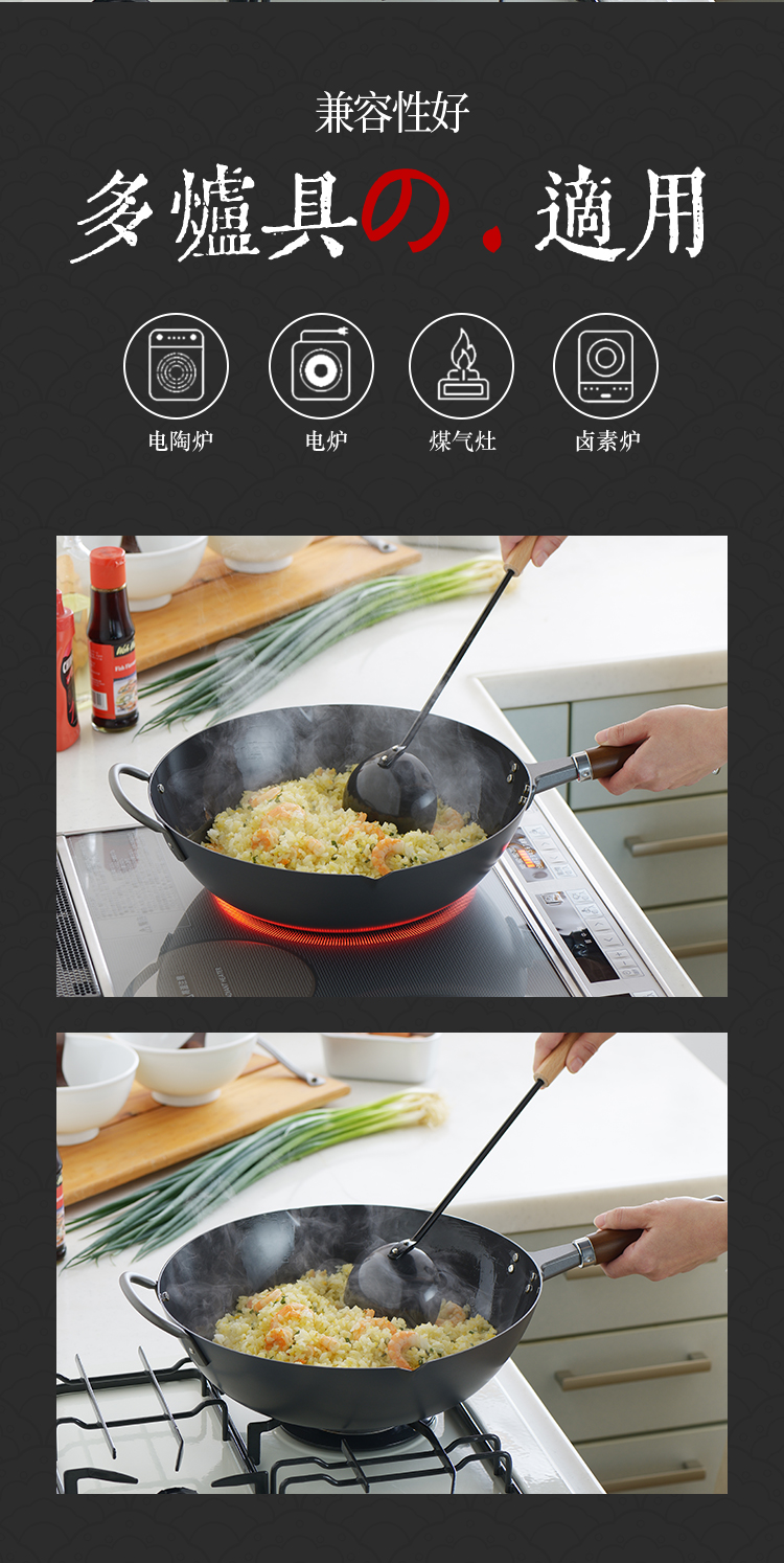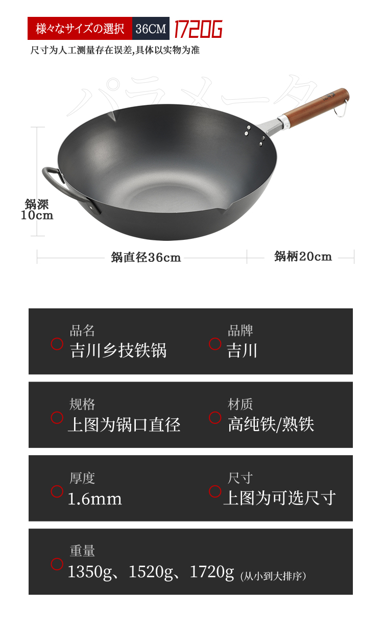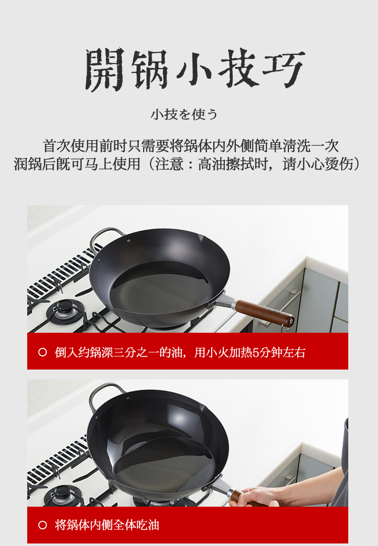 日本原装进口乡技氮化炒锅熟铁无涂层铁锅