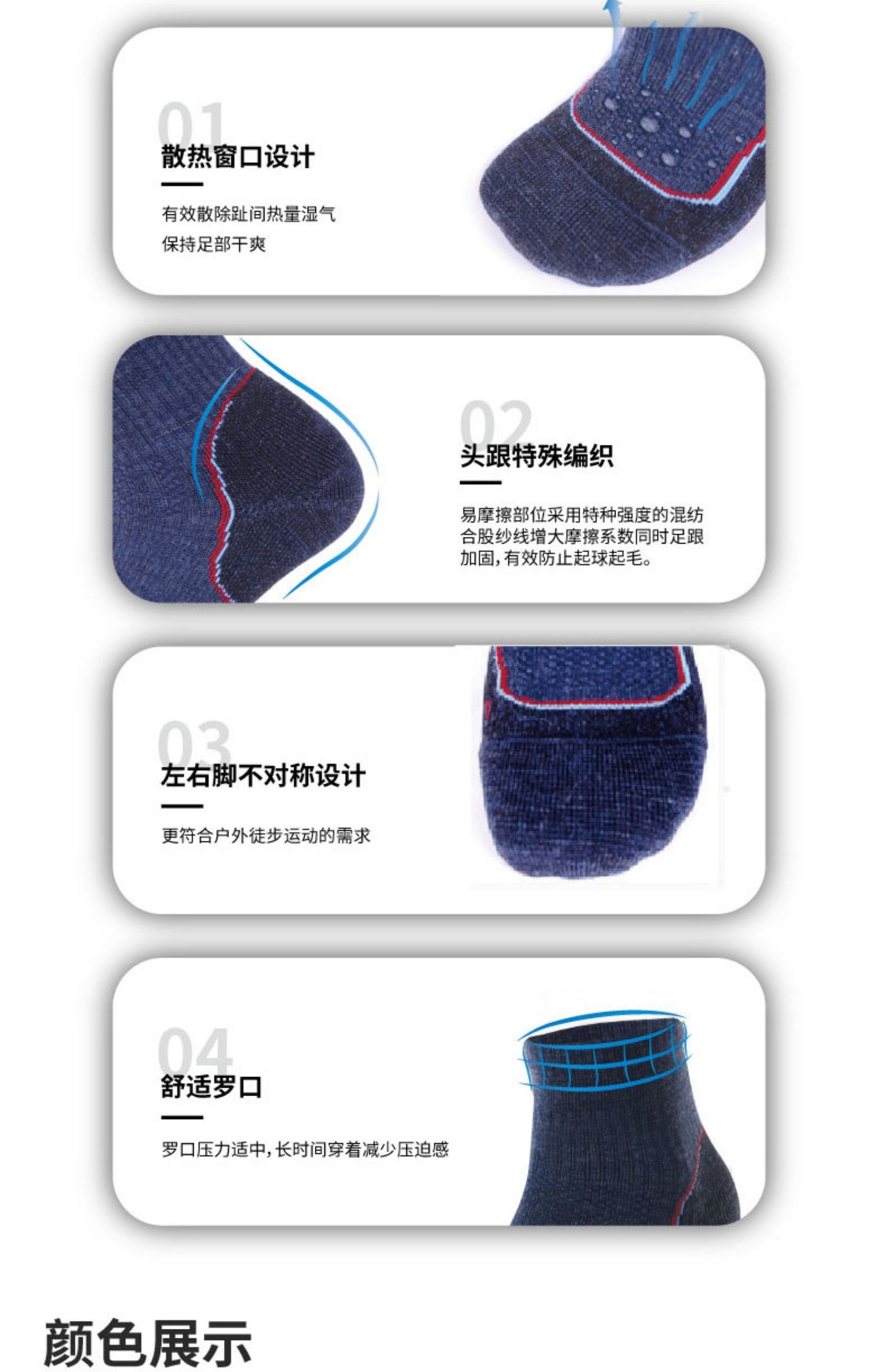 悍将探索系列户外袜徒步登山袜子男女美利奴羊毛四季运动速干耐磨