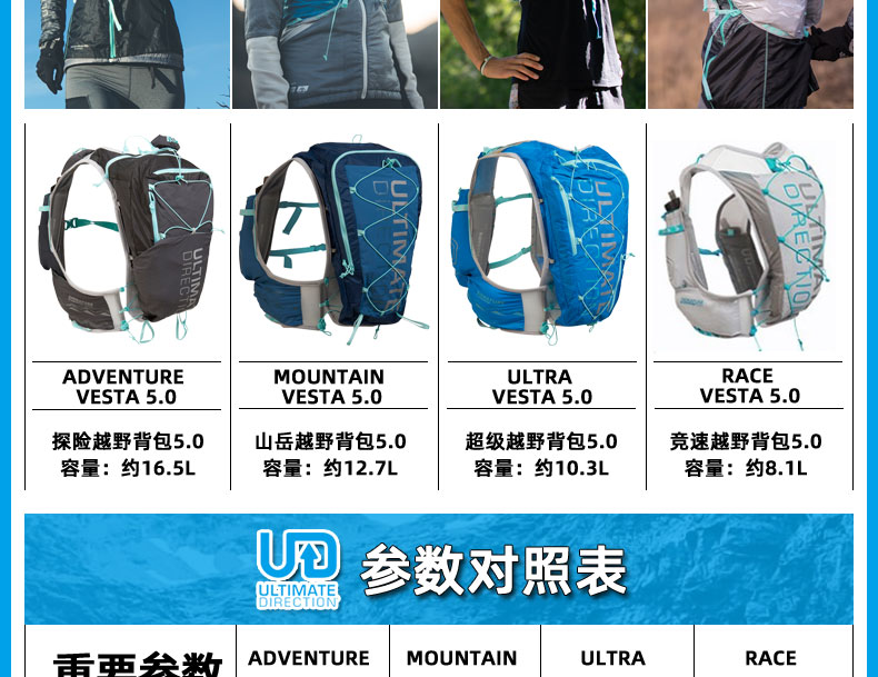 UD Mountain AK5.0 山岳 越野跑步背包 13.4L/12.7L