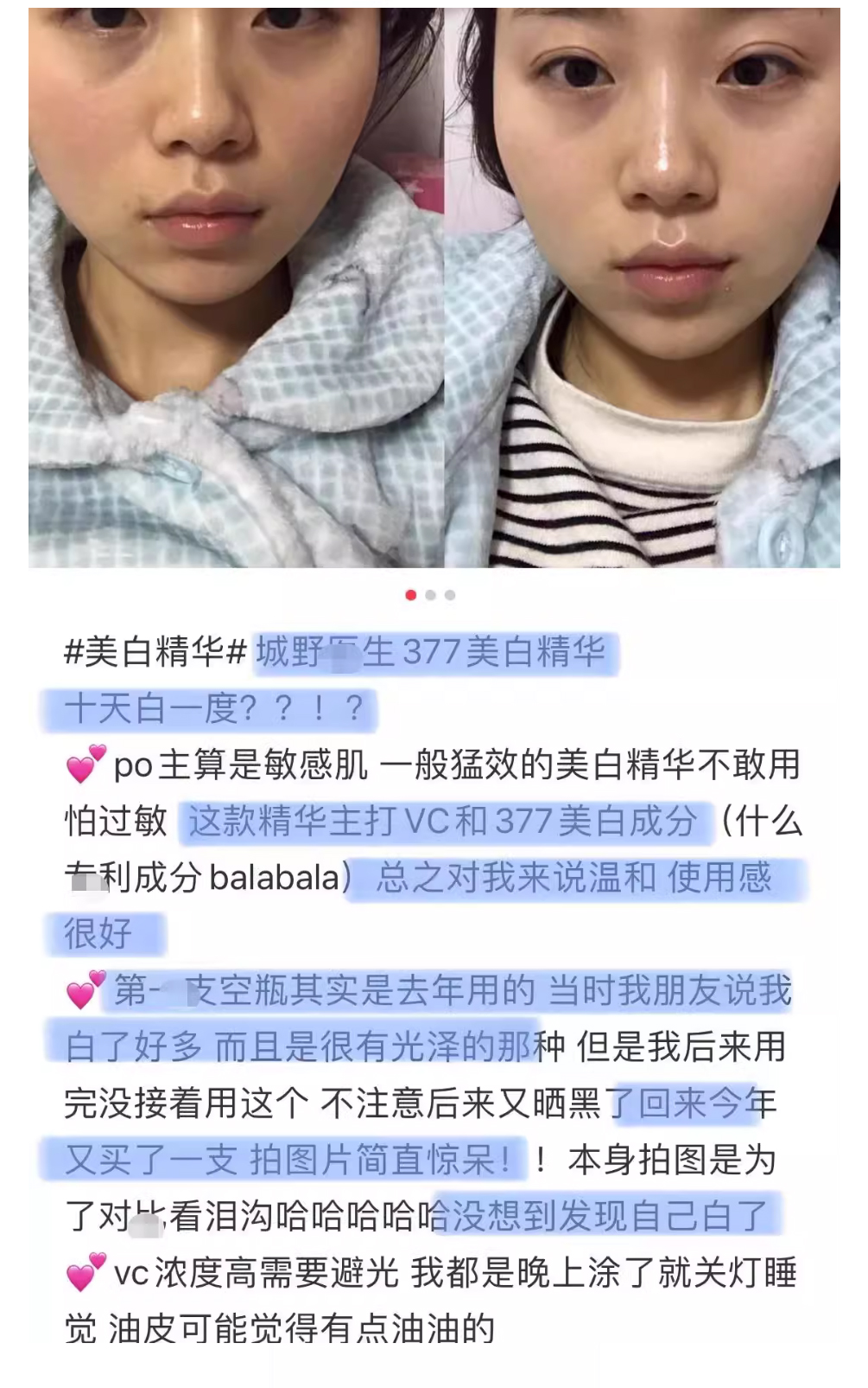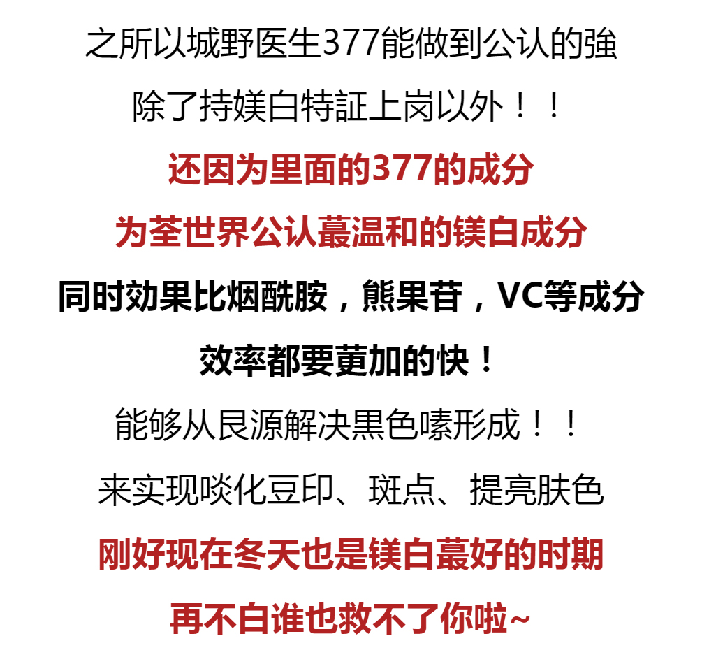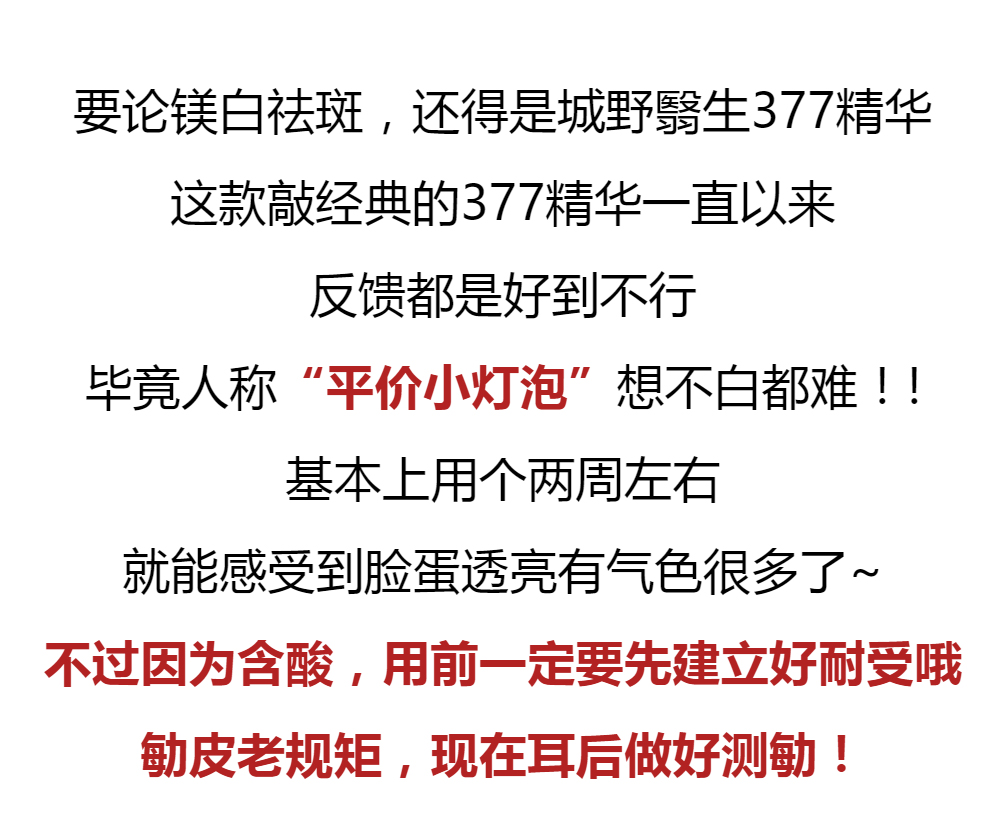 【品名】城野医生377精华提亮肤色淡化痘印斑点18g