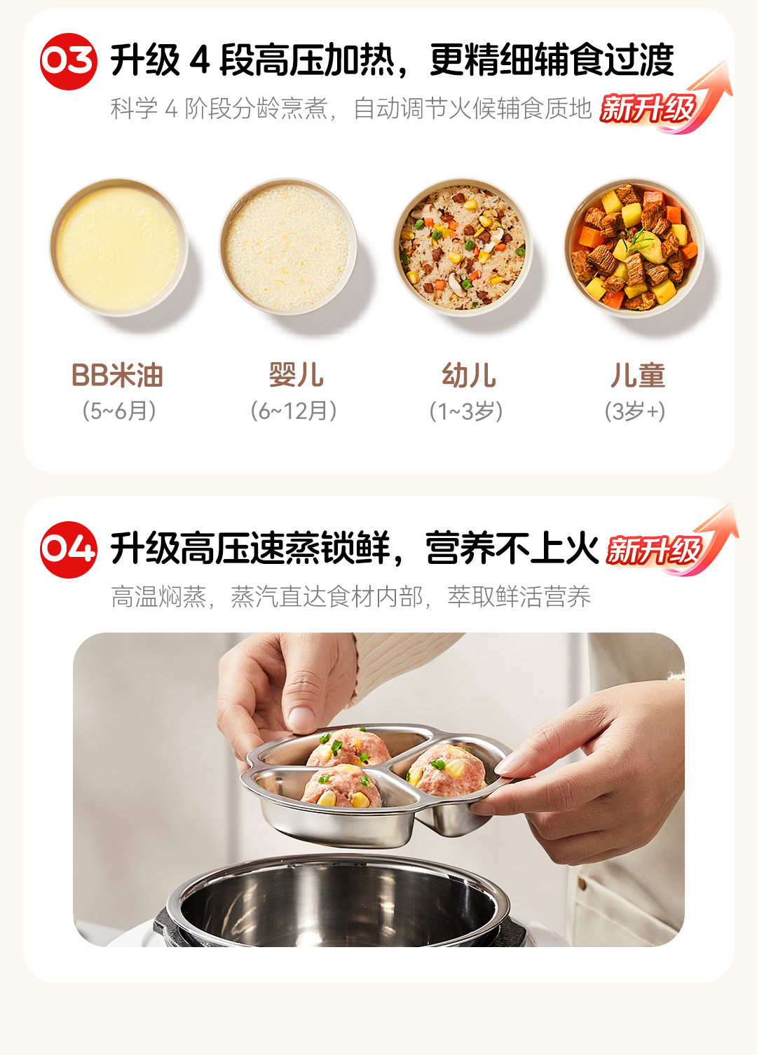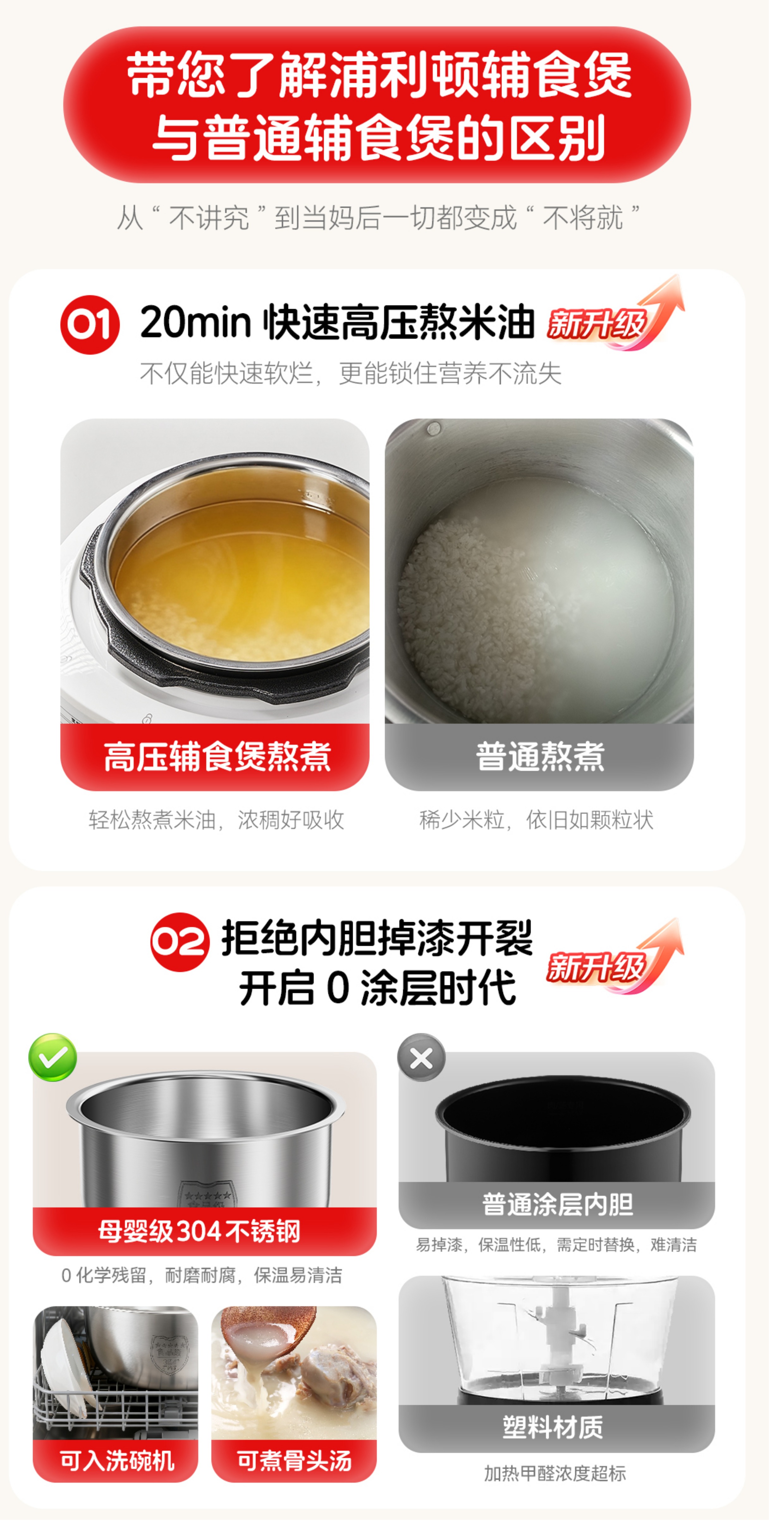 浦利顿宝宝米油辅食电压力锅高压锅不锈钢BB婴儿PLD-WYB-B258