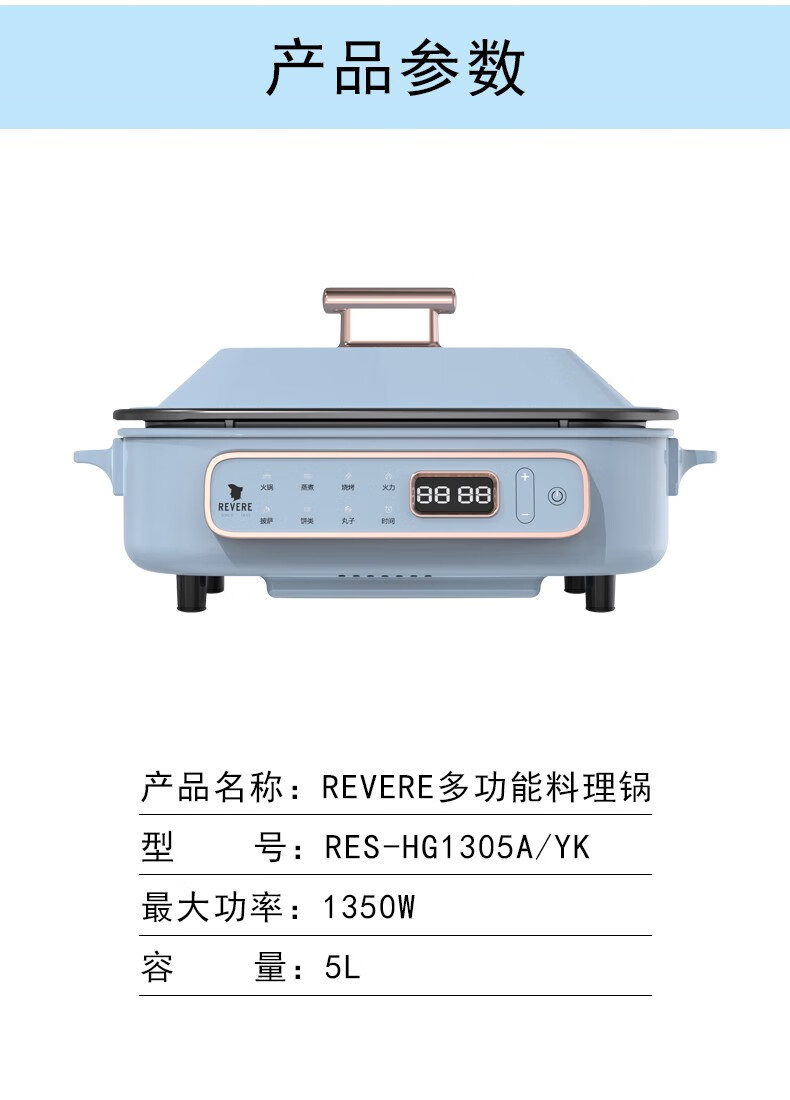 【小家电】REVERE家用5L多功能料理锅RES-HG1305A/YK HF