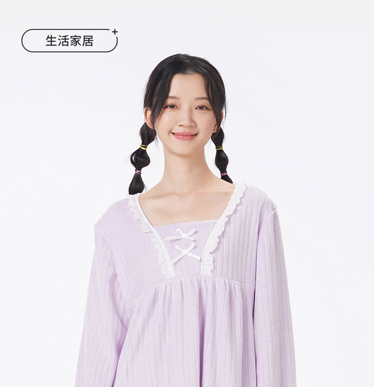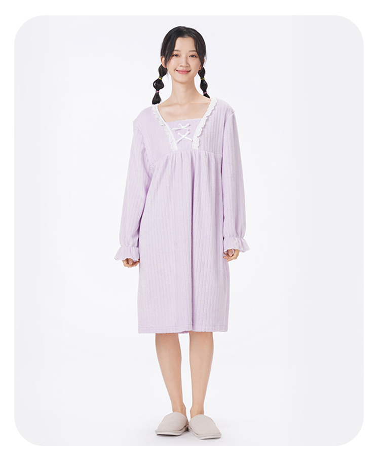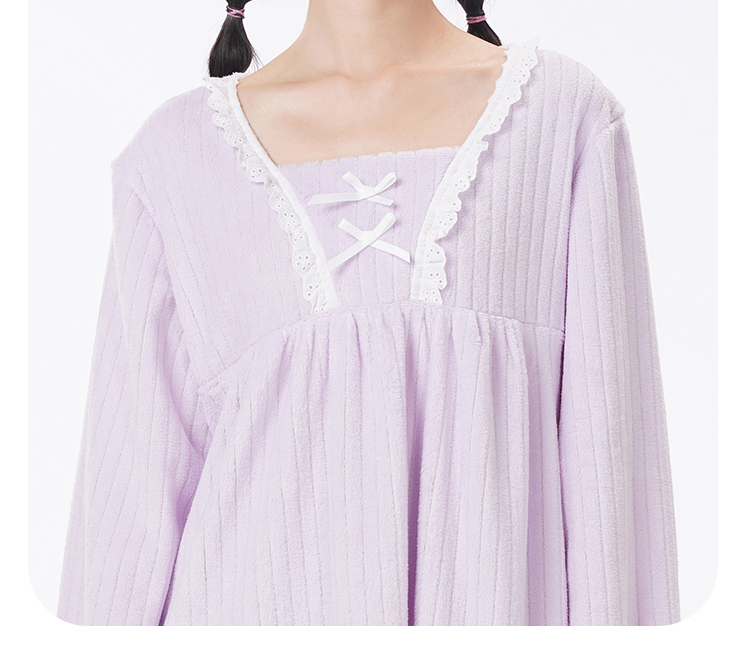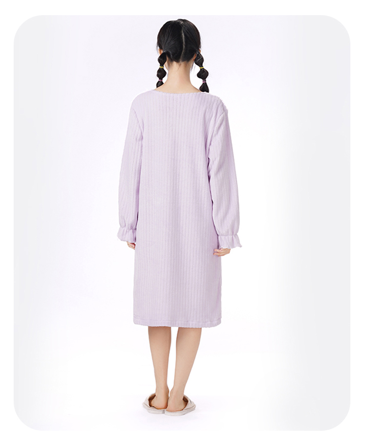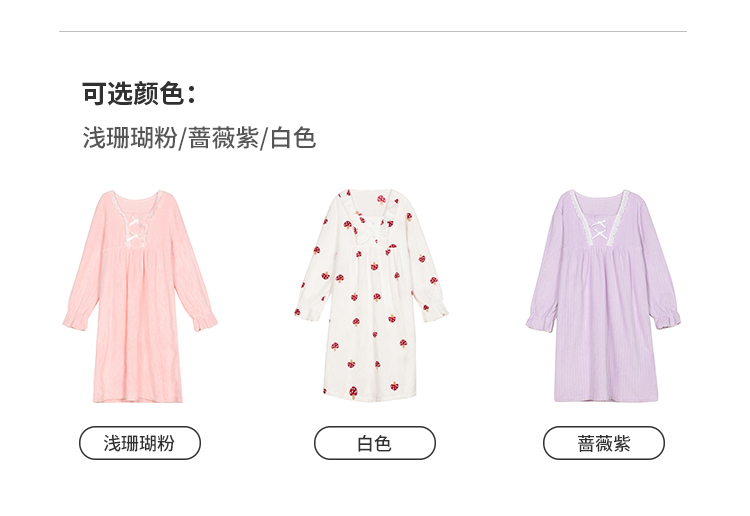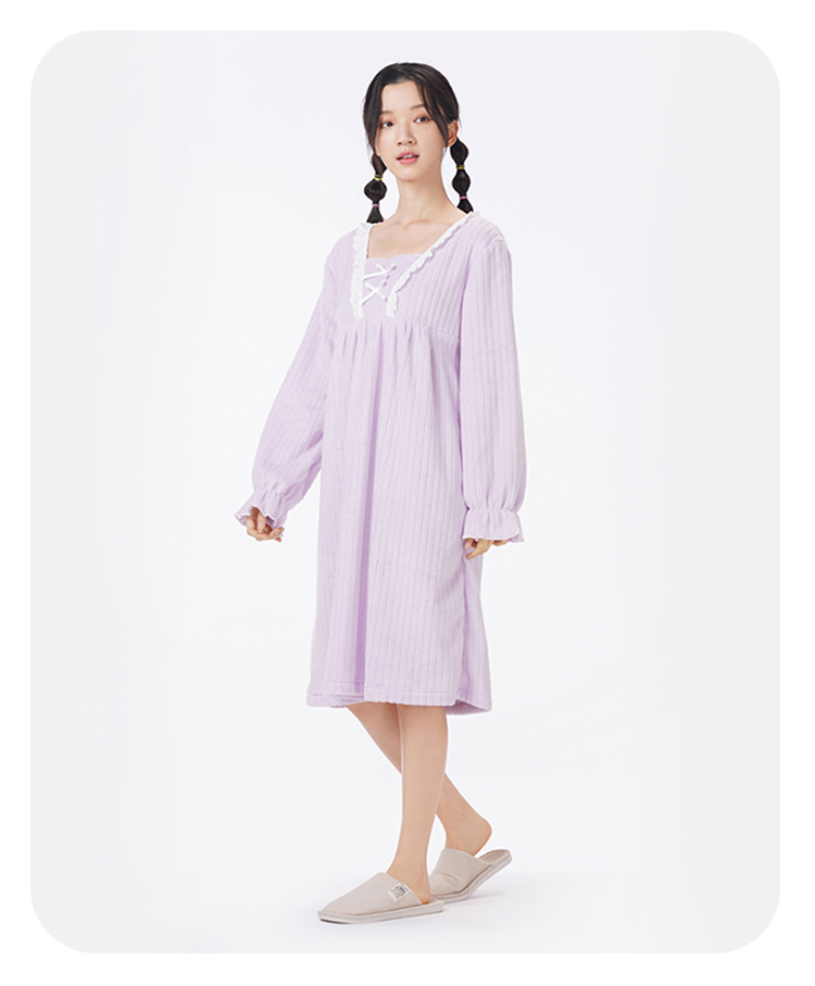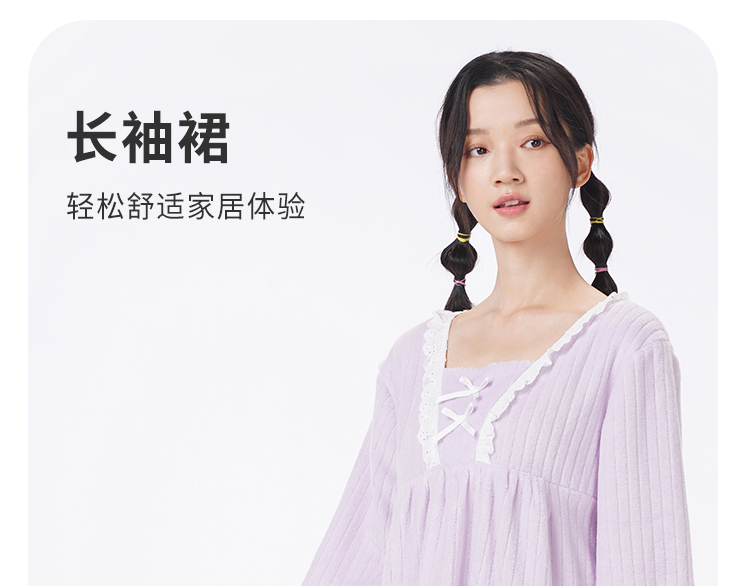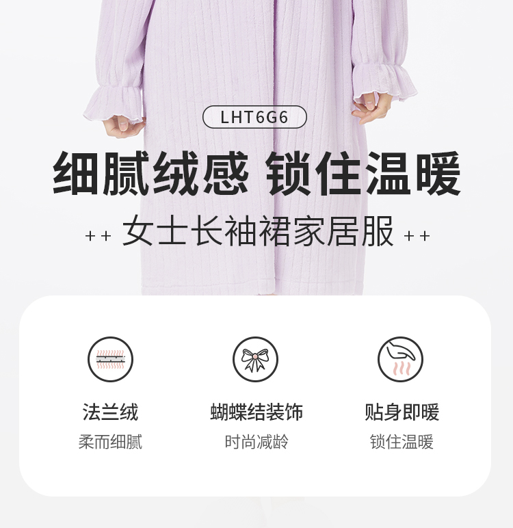 都市丽人睡衣超值精选长袖裙家居服法兰绒抽条厚女士法兰绒睡裙LHT6G6